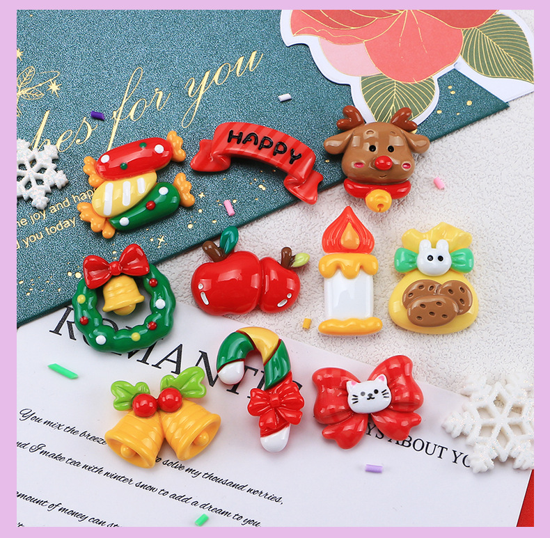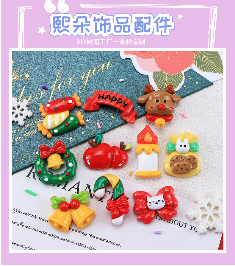 卡通叮当圣诞 新款可爱diy奶油胶手机壳头饰发夹头绳树脂配件批发