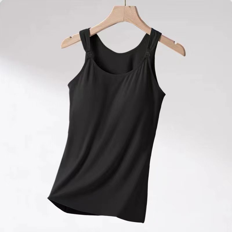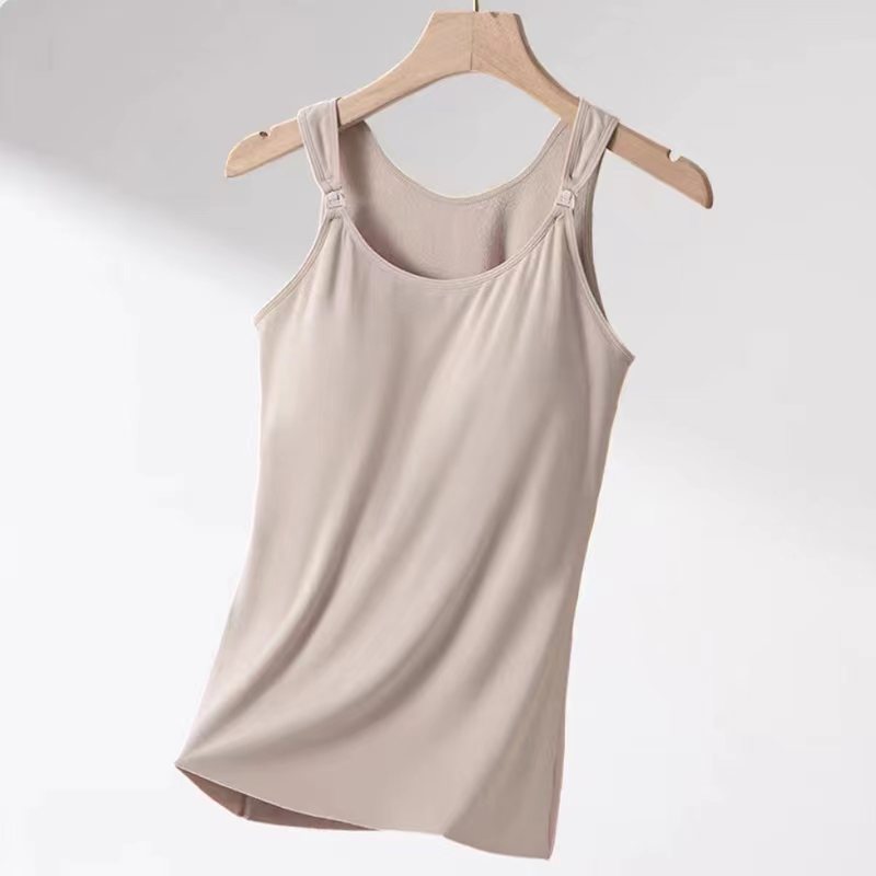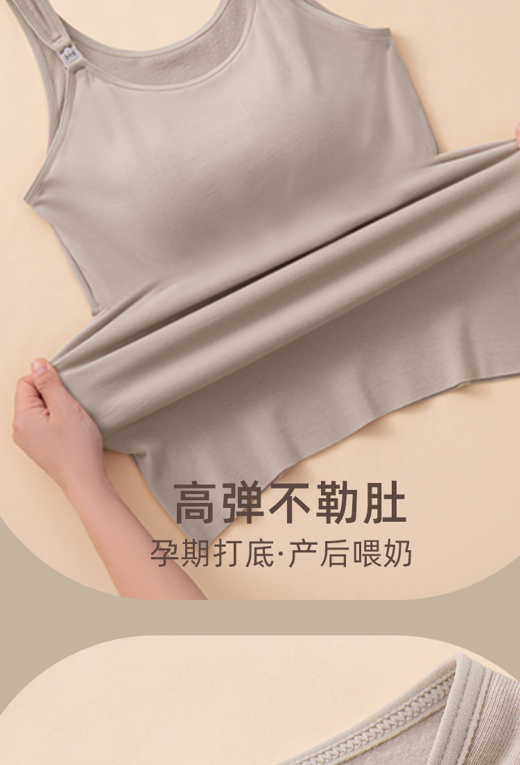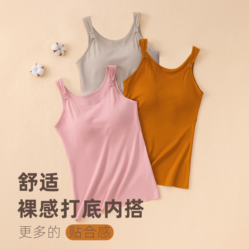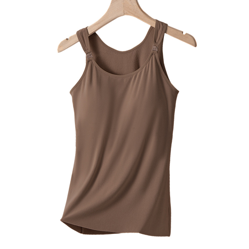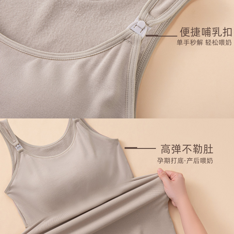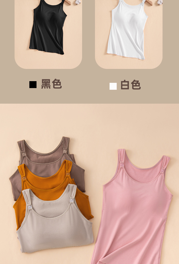 秋冬哺乳保暖背心一体式固定杯免穿文胸孕妇产后喂奶加绒吊带上衣