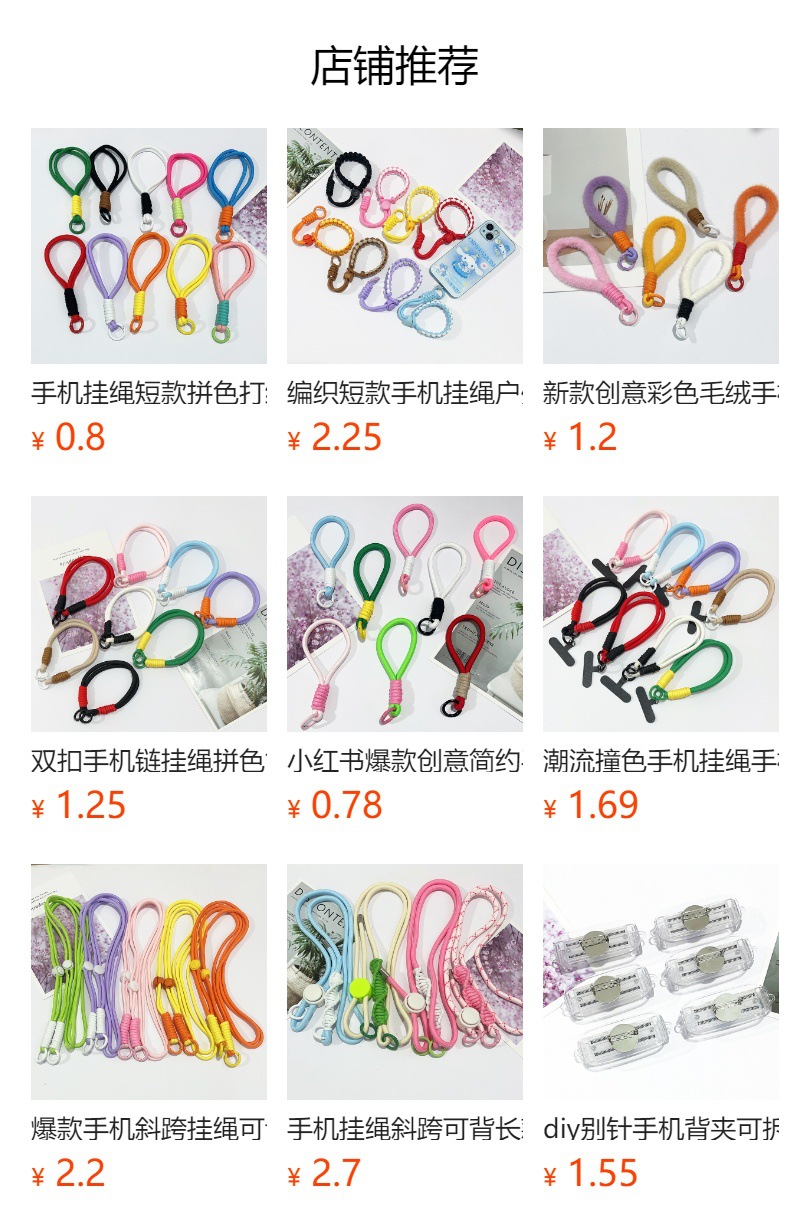 手机挂绳短款拼色打结编织挂绳毛绒钥匙扣编织挂绳防丢吊绳15CM