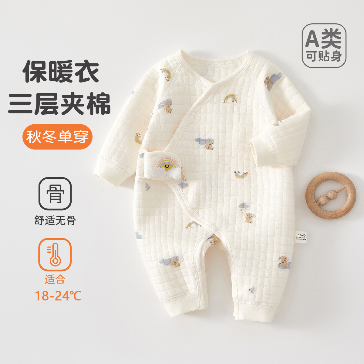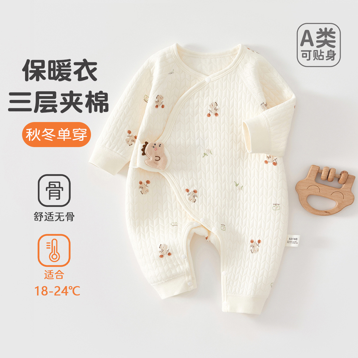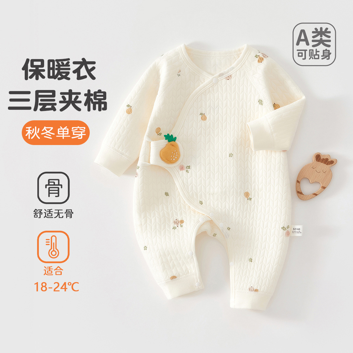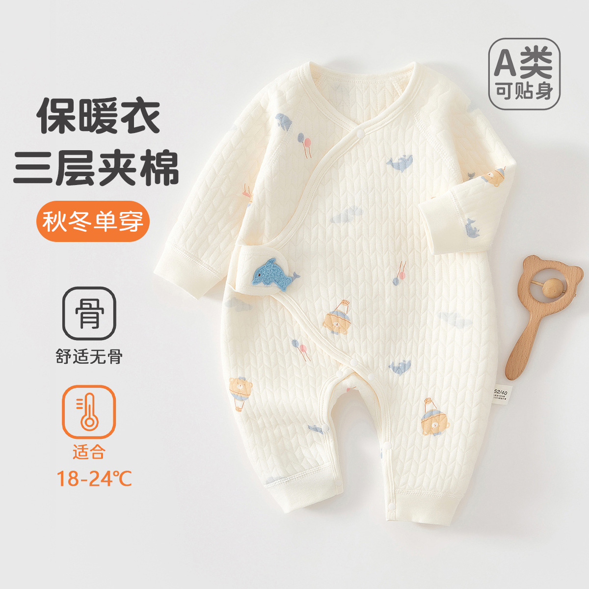 新生婴儿儿衣服秋冬季夹棉连体衣初生宝宝保暖秋装打底衣a类0-6月