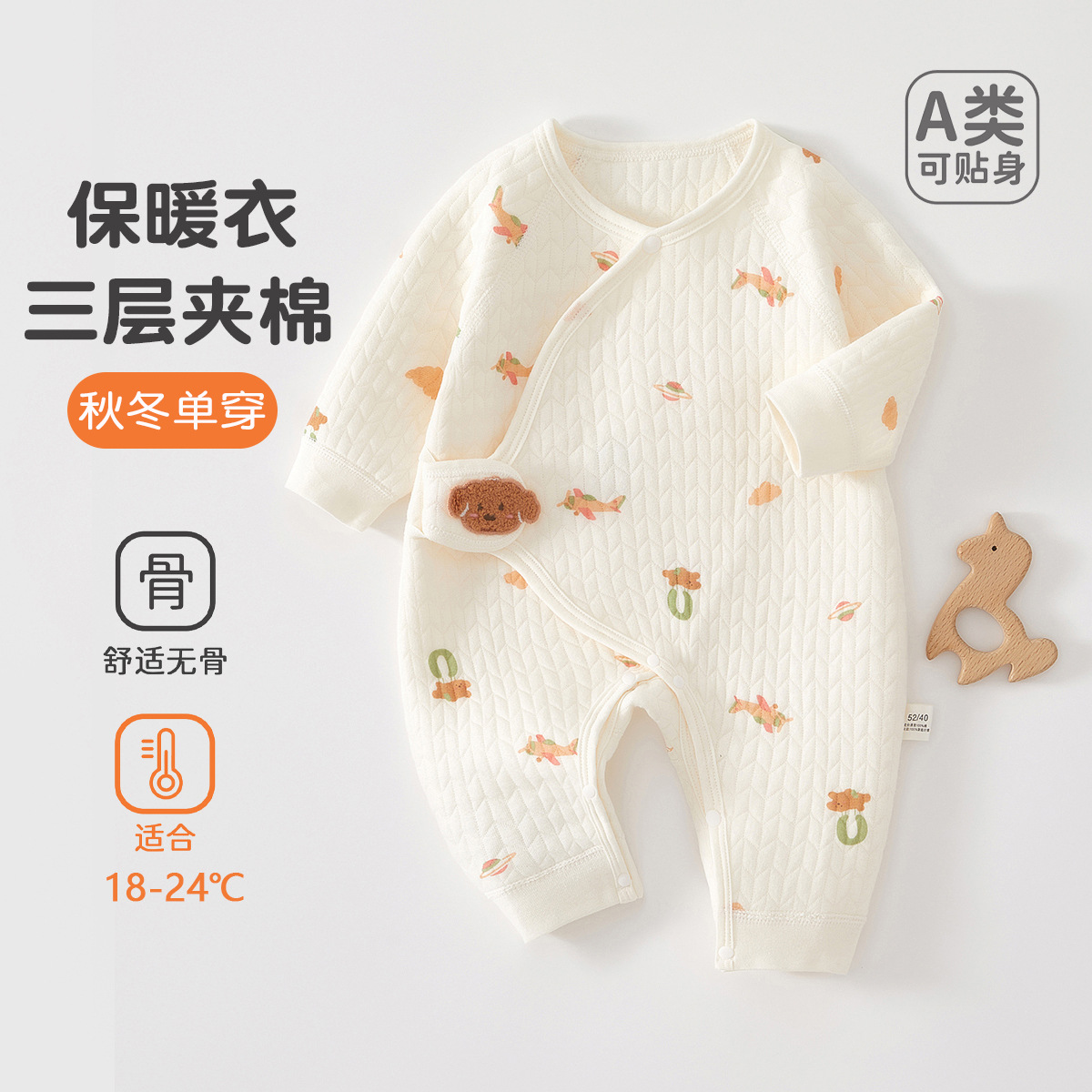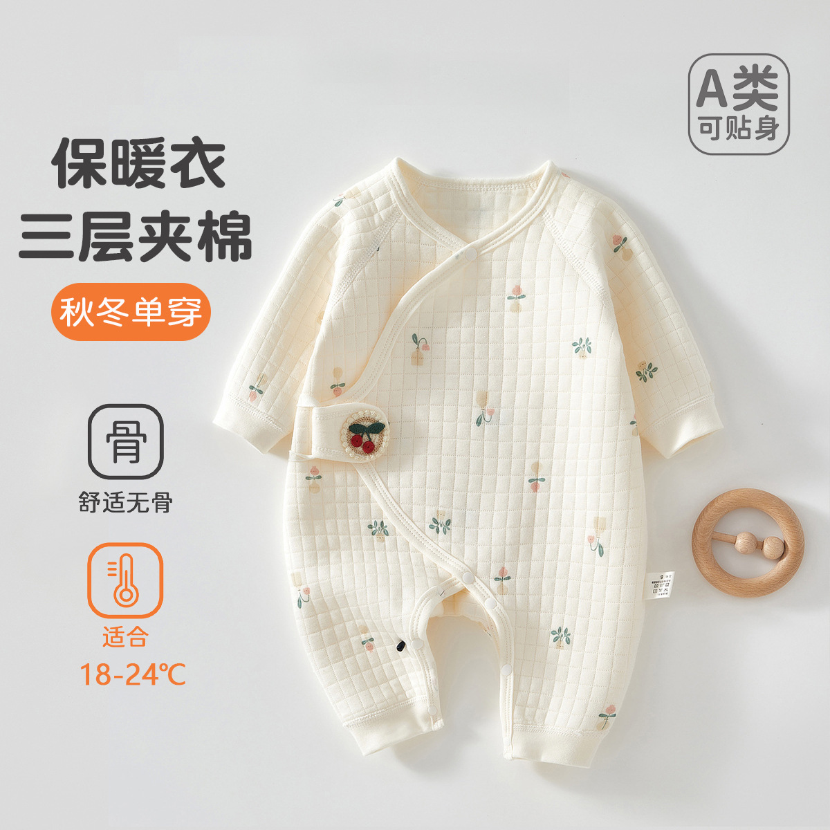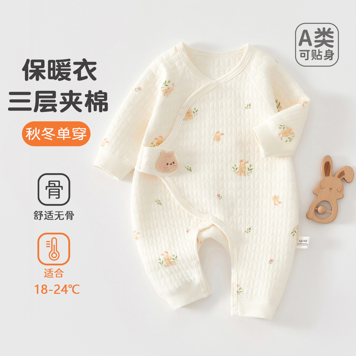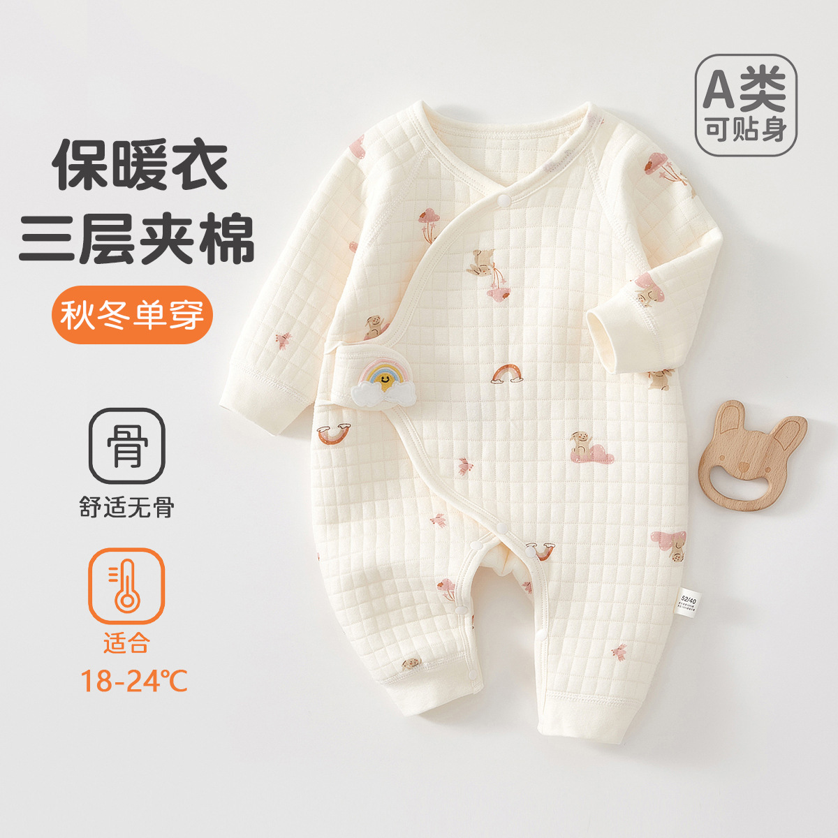 新生婴儿儿衣服秋冬季夹棉连体衣初生宝宝保暖秋装打底衣a类0-6月