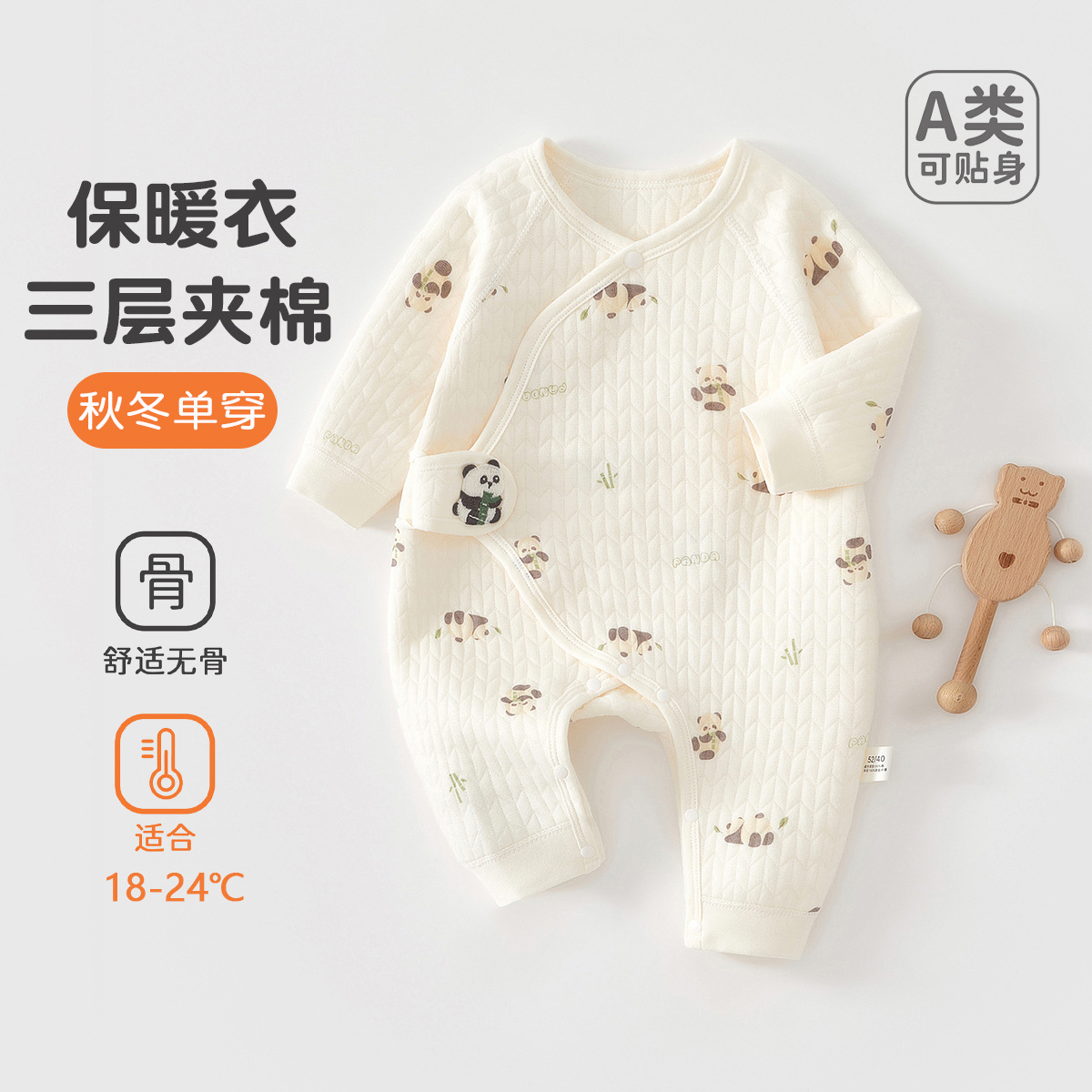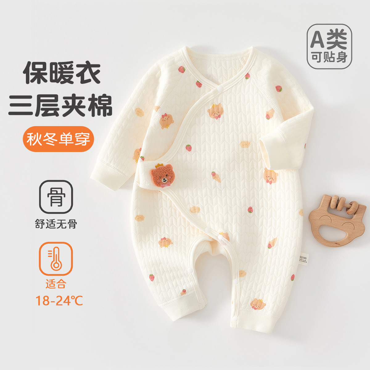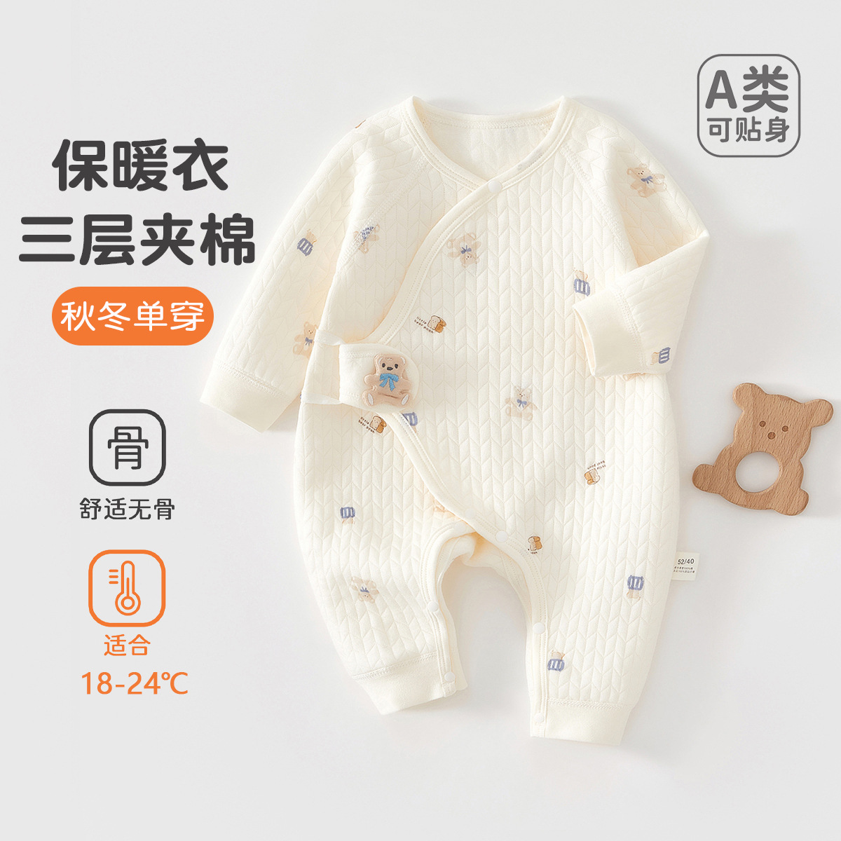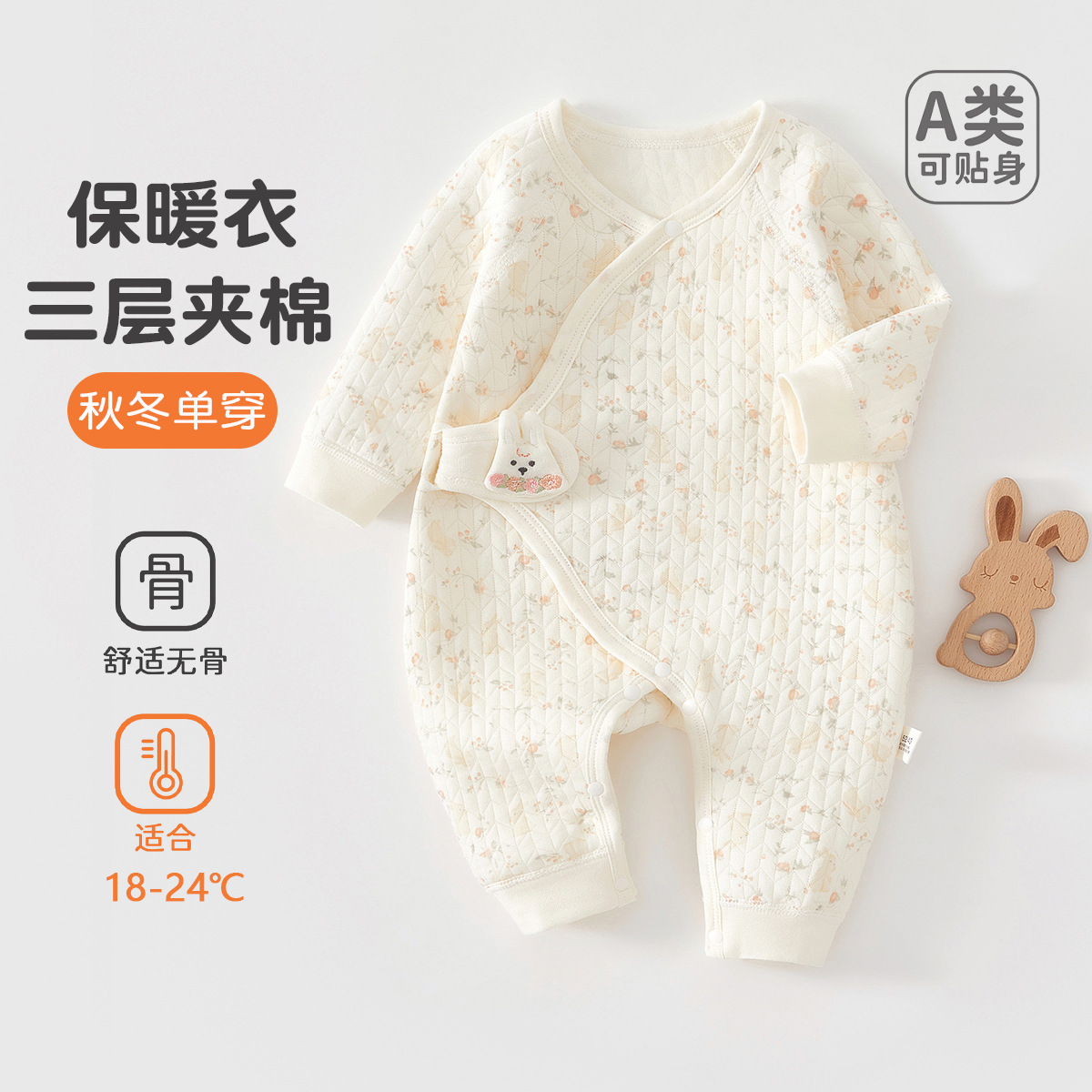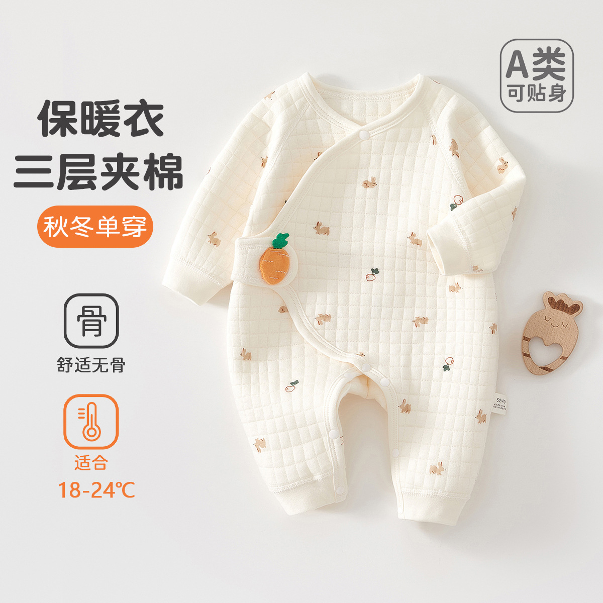 新生婴儿儿衣服秋冬季夹棉连体衣初生宝宝保暖秋装打底衣a类0-6月