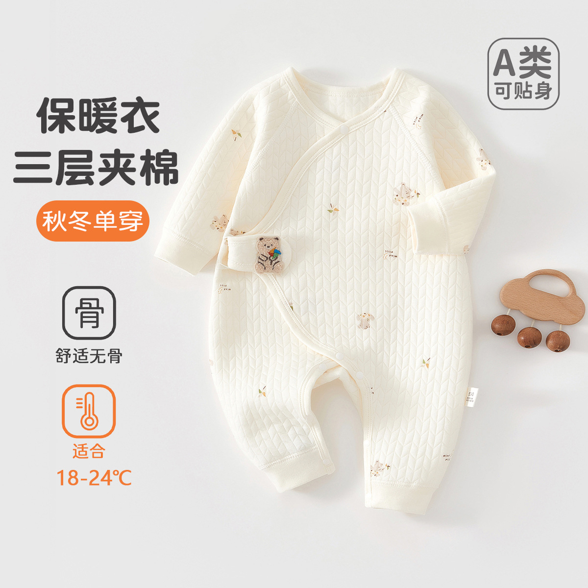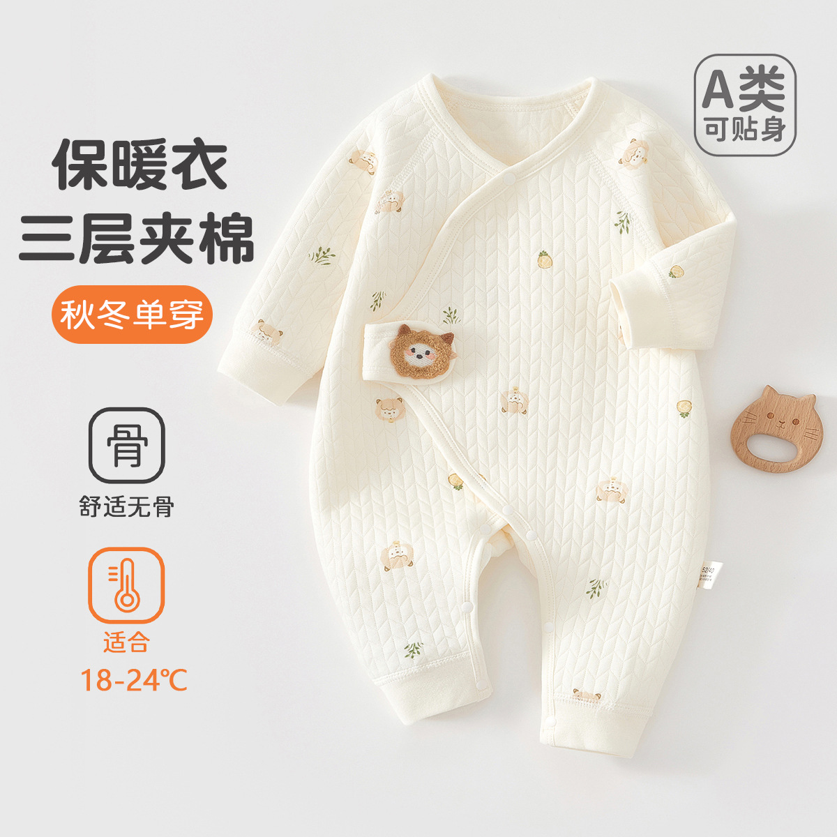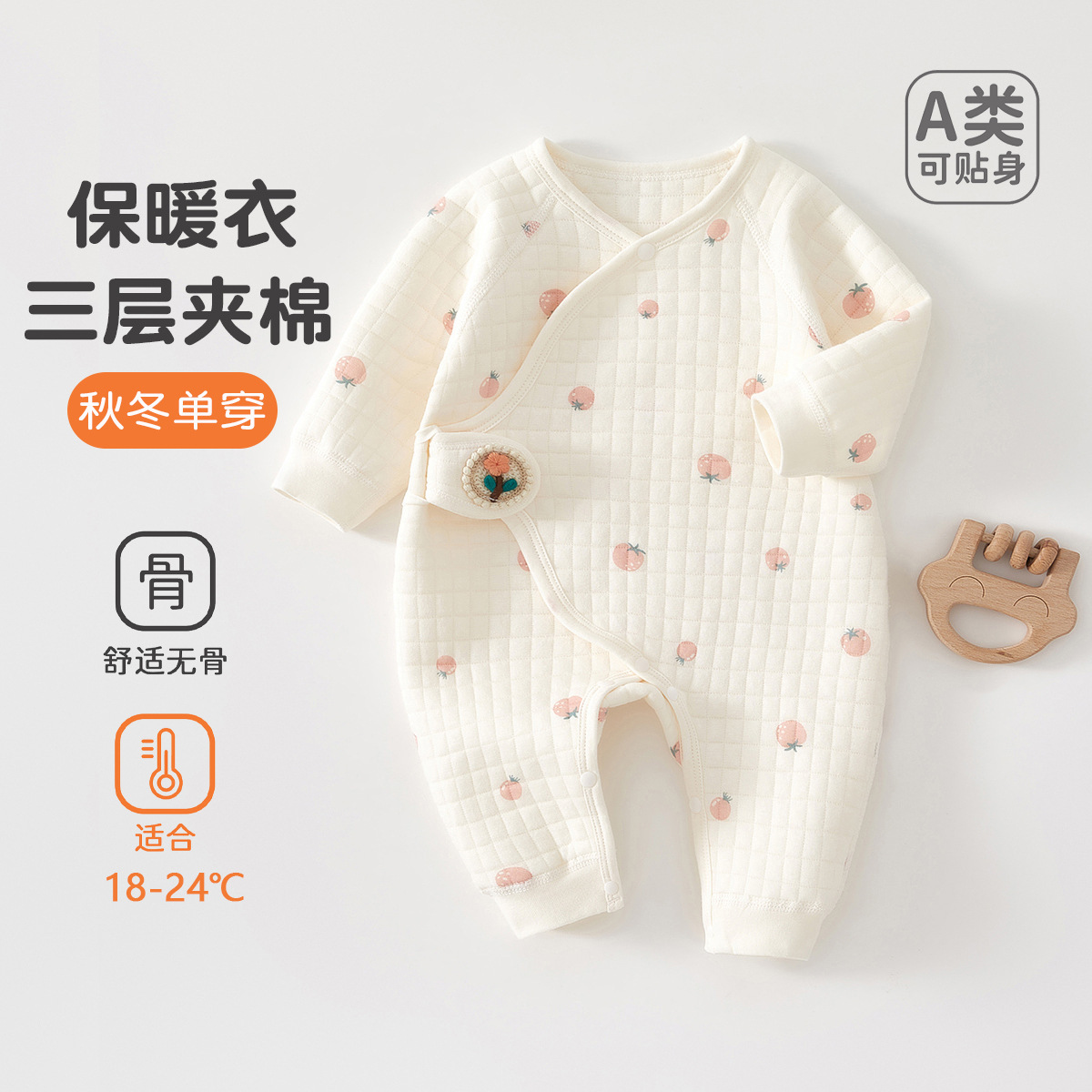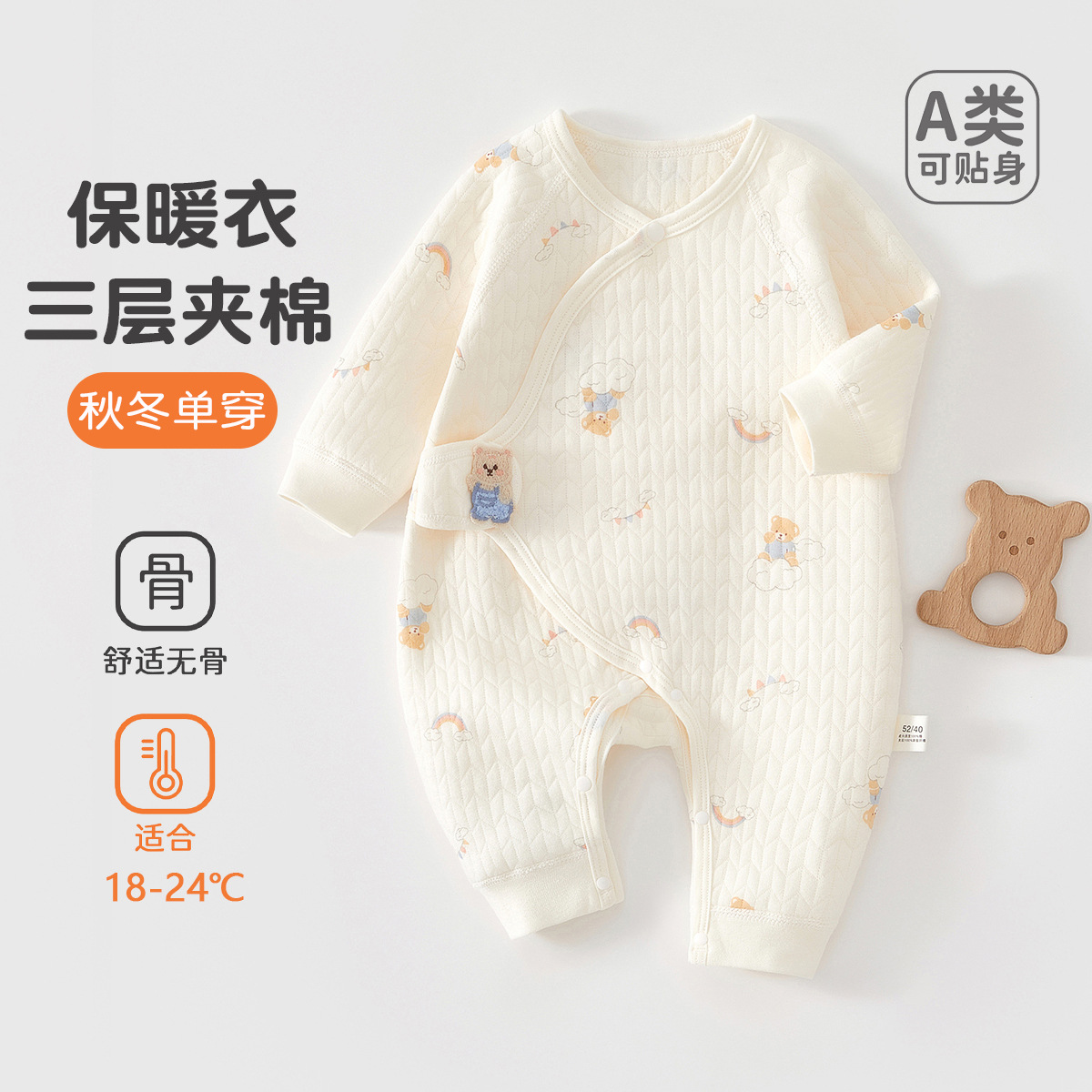新生婴儿儿衣服秋冬季夹棉连体衣初生宝宝保暖秋装打底衣a类0-6月