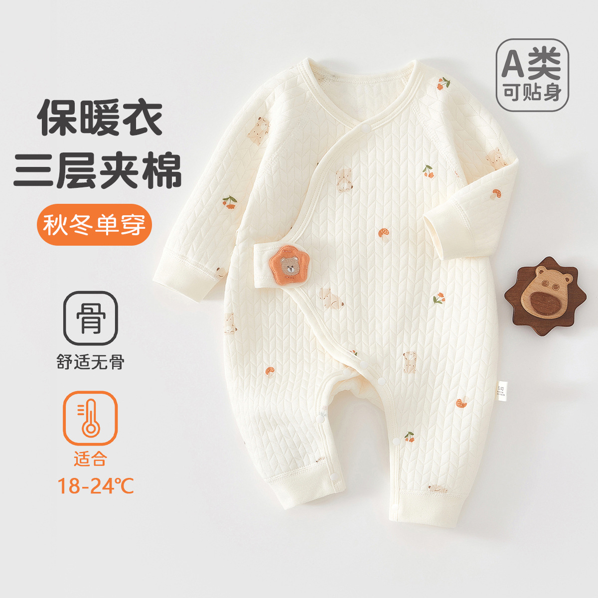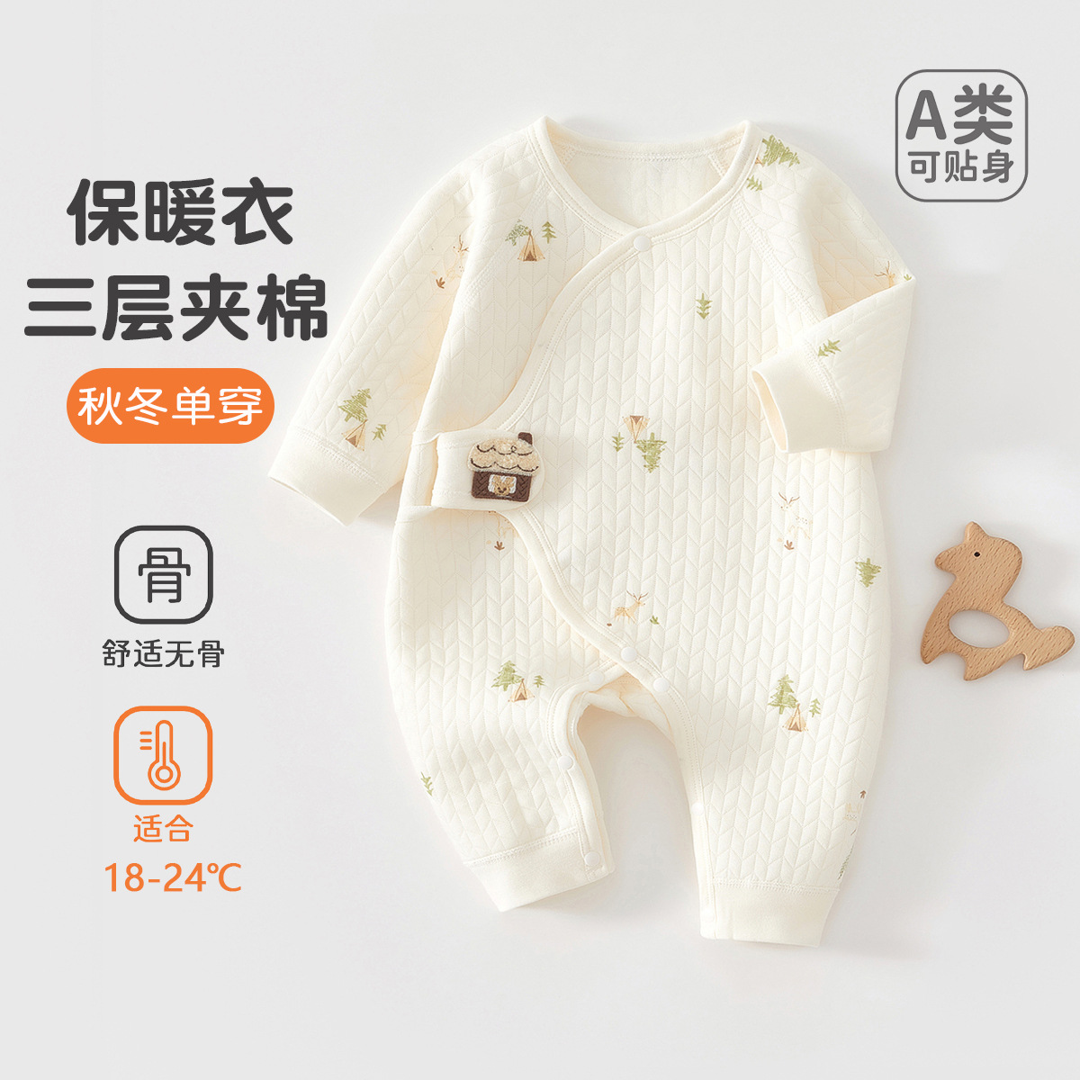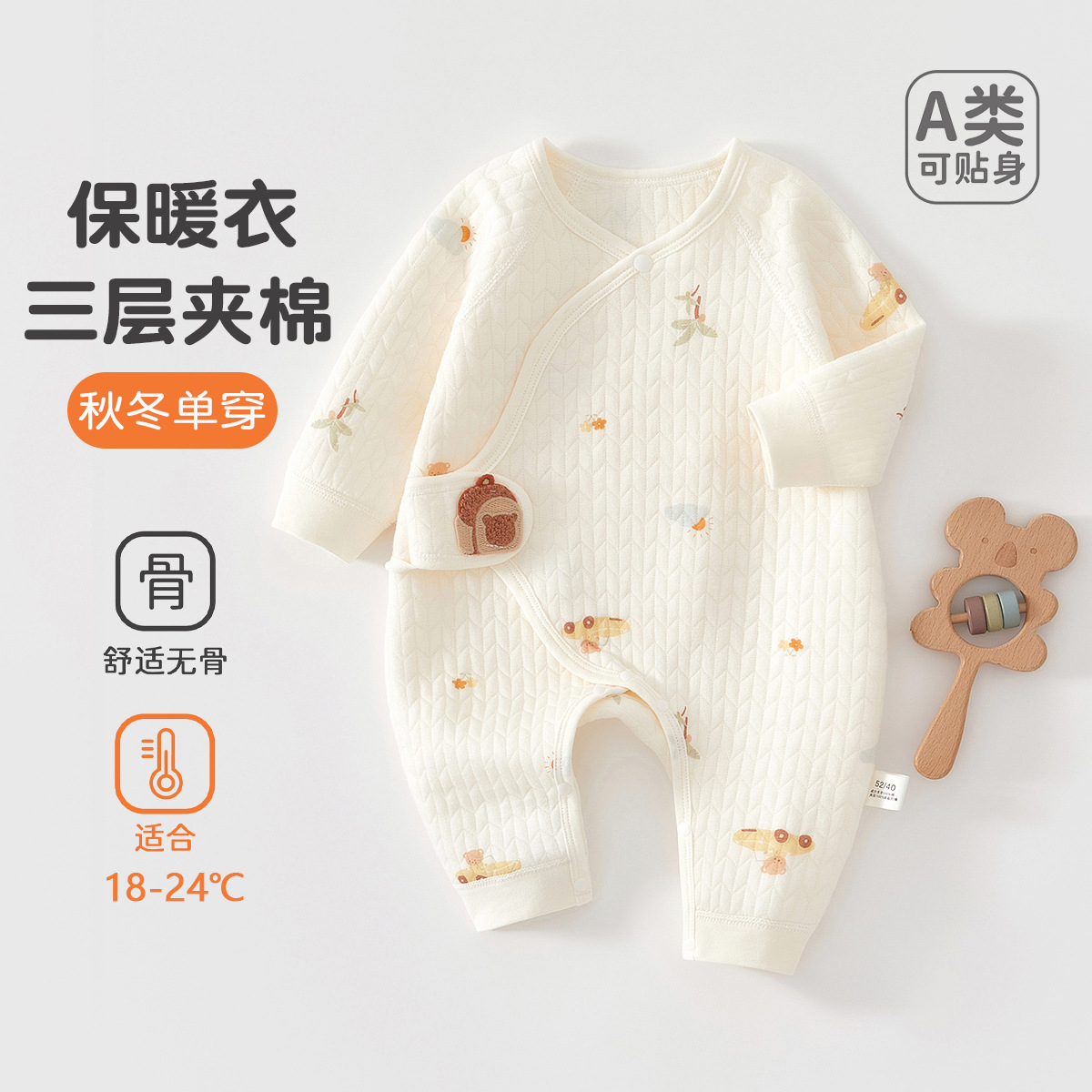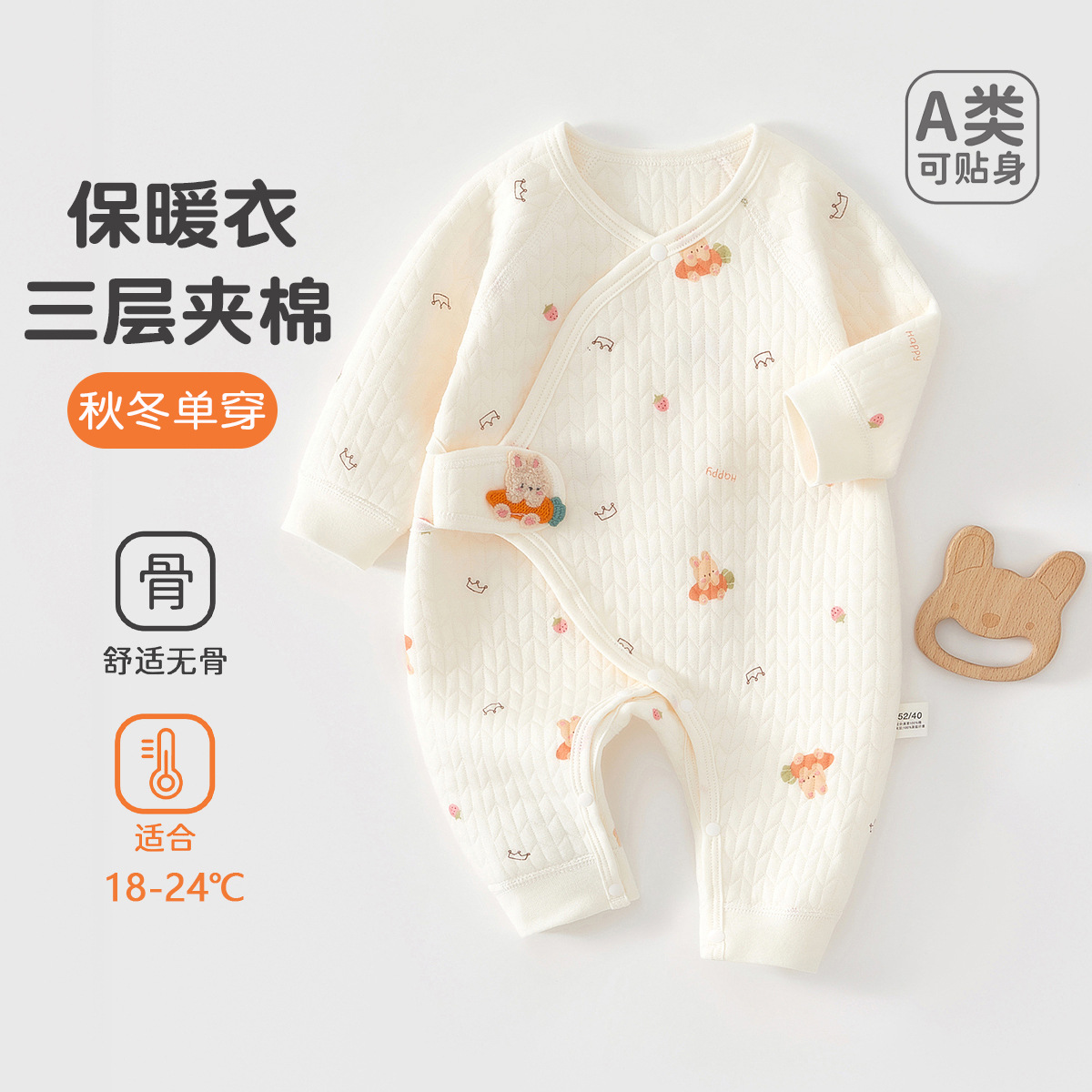 新生婴儿儿衣服秋冬季夹棉连体衣初生宝宝保暖秋装打底衣a类0-6月