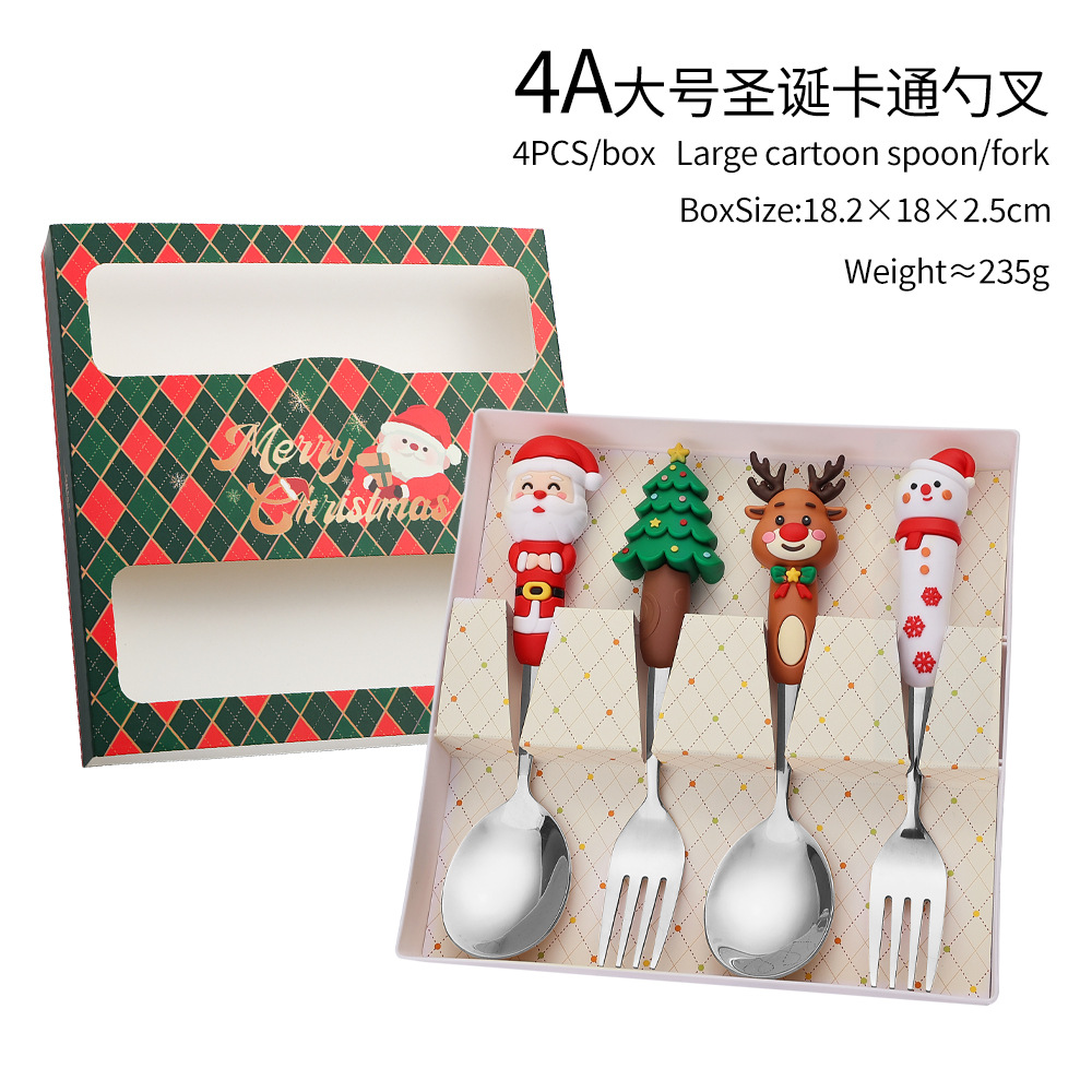 Q大号圣诞公仔勺叉 可爱趣味圣诞老人圣诞树勺子金色圣诞餐具套装