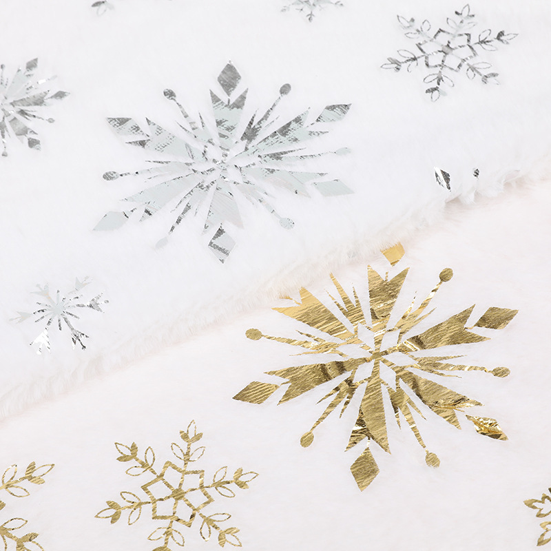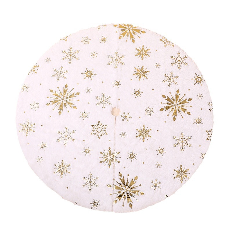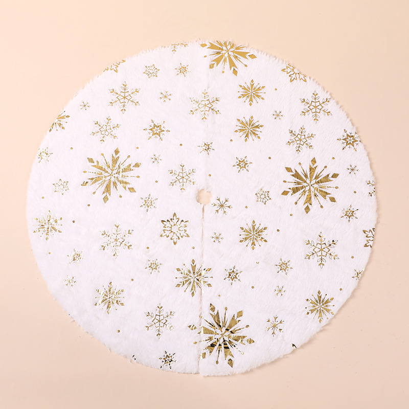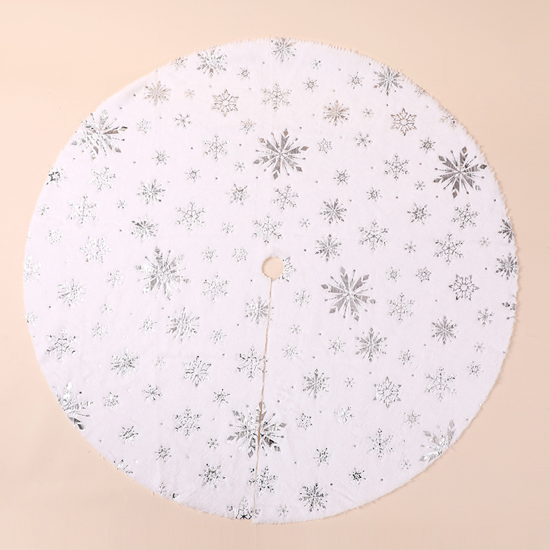 现货白色烫金雪花印花树裙圣诞节装饰品银色金色印花毛绒圣诞树裙