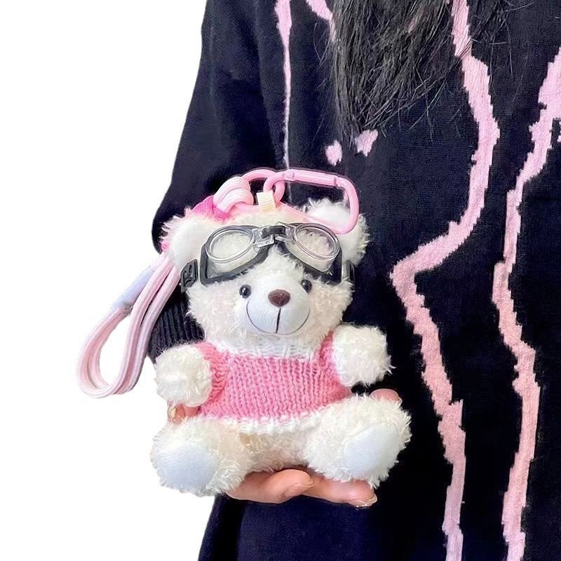 ins网红飞行员小熊毛绒玩偶可爱小熊背包钥匙扣挂件情侣礼物批发