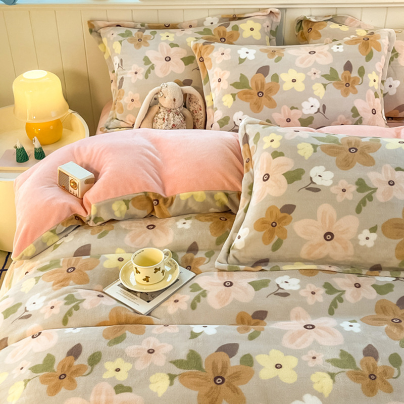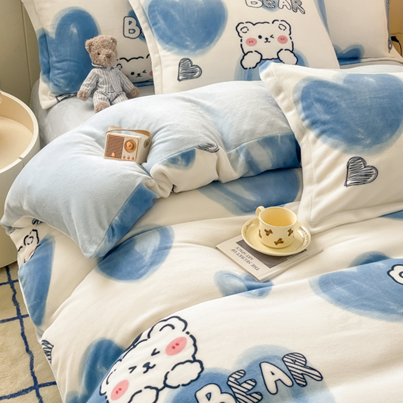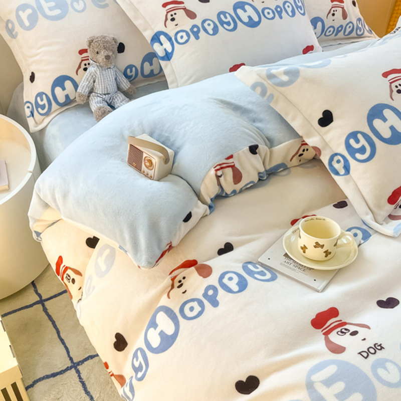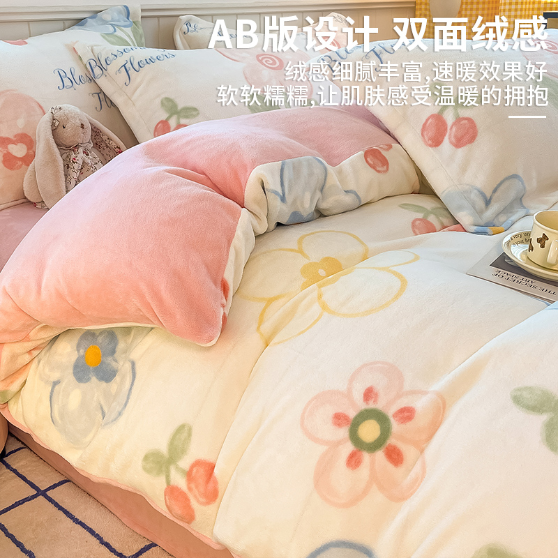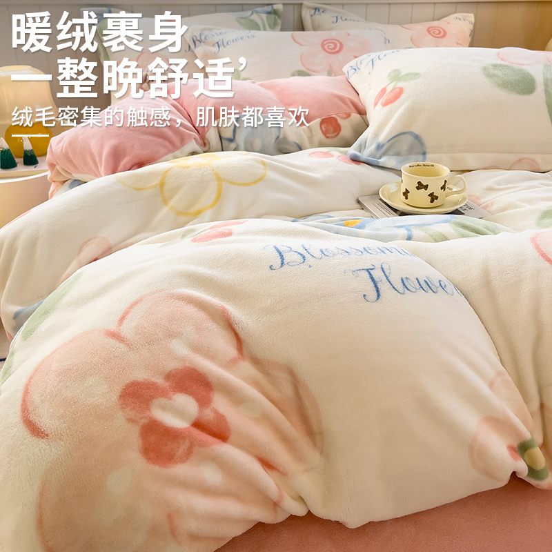 冬季牛奶绒四件套珊瑚绒宿舍三件套双面绒防静电床单被套床笠加绒
