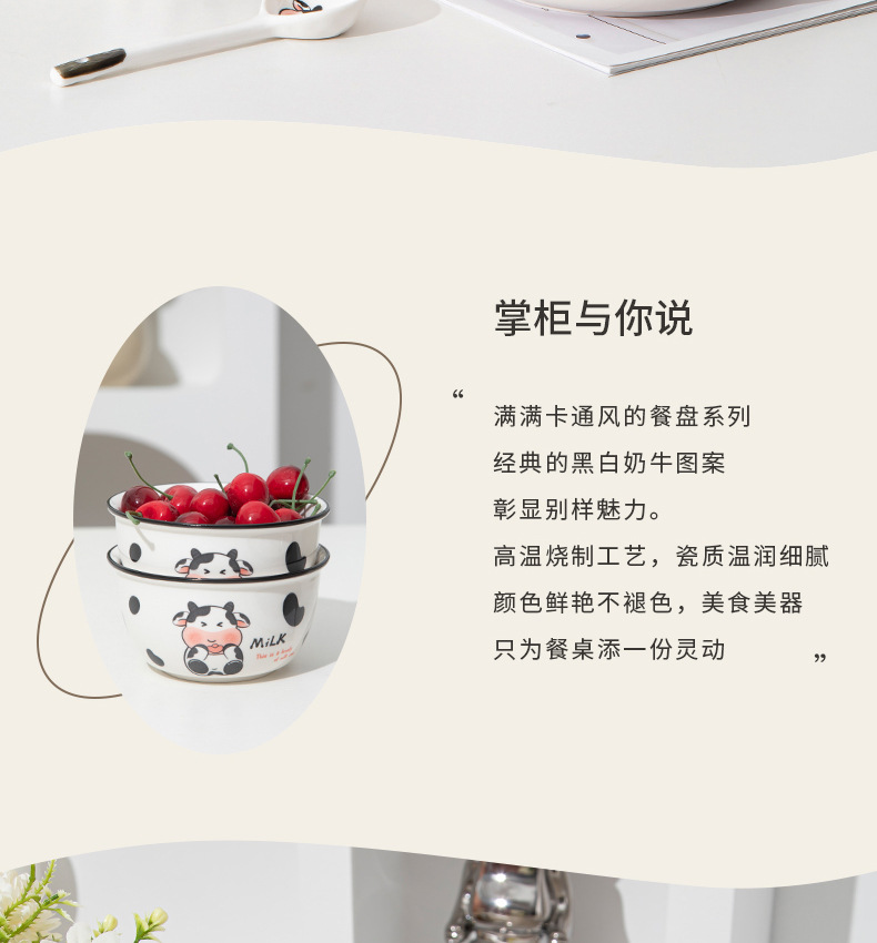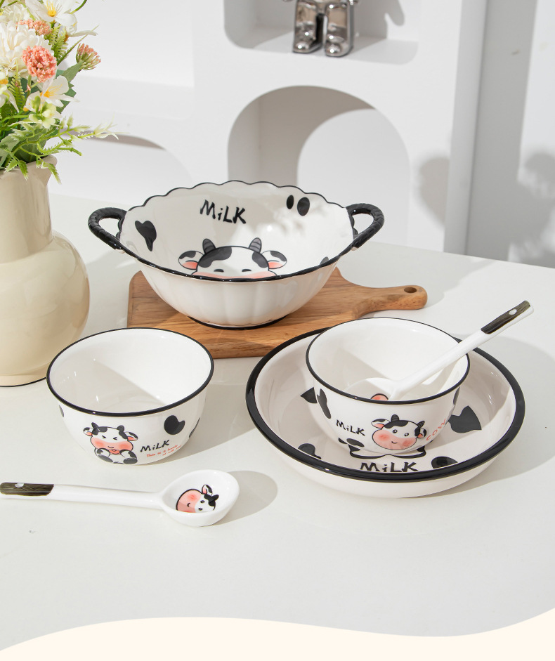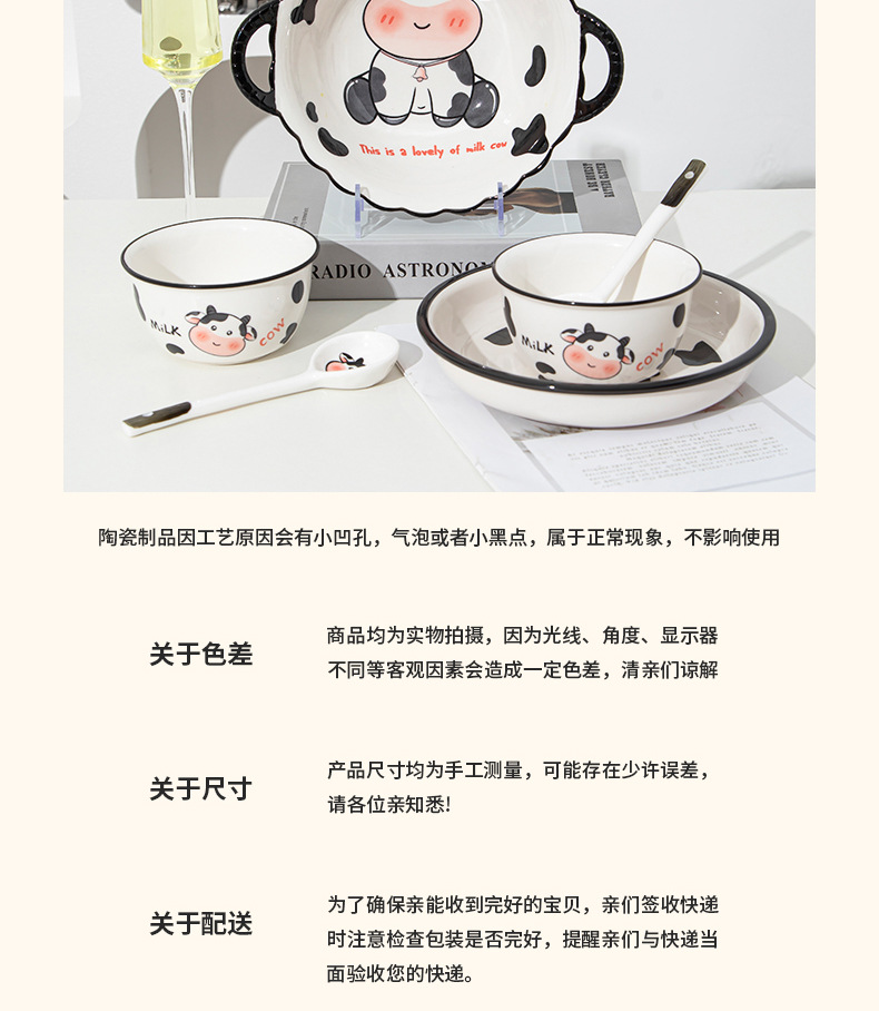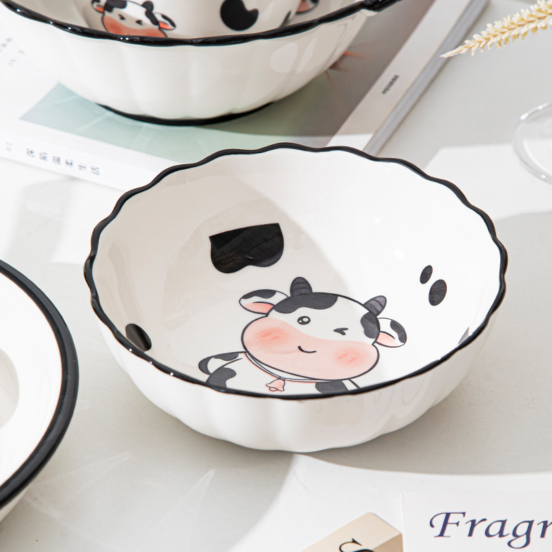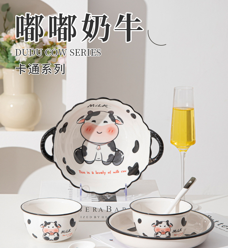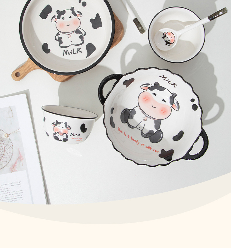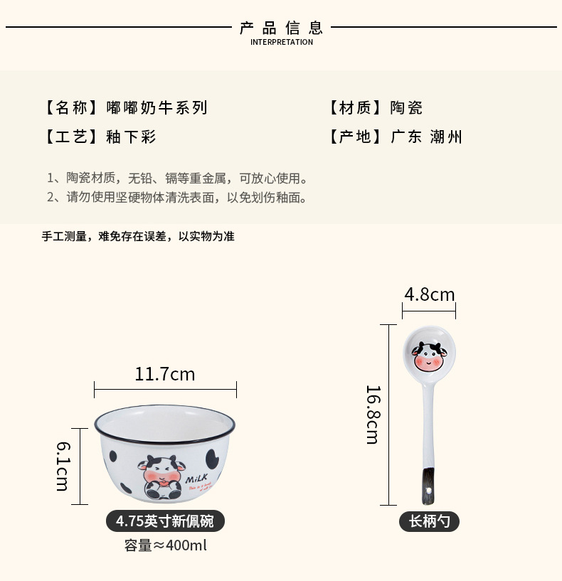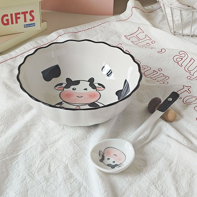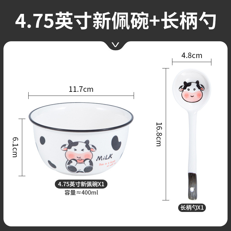 ins高颜值陶瓷米饭碗可爱卡通釉下彩家用沙拉碗饭碗勺子陶瓷餐具
