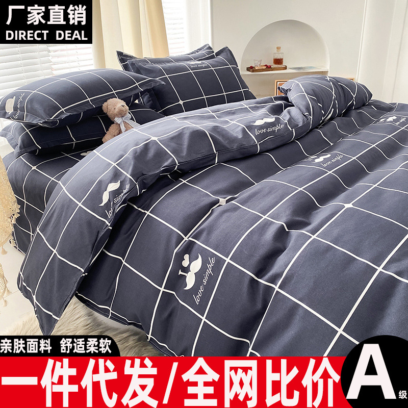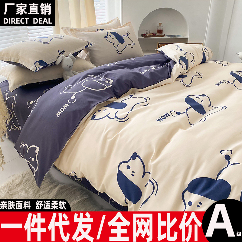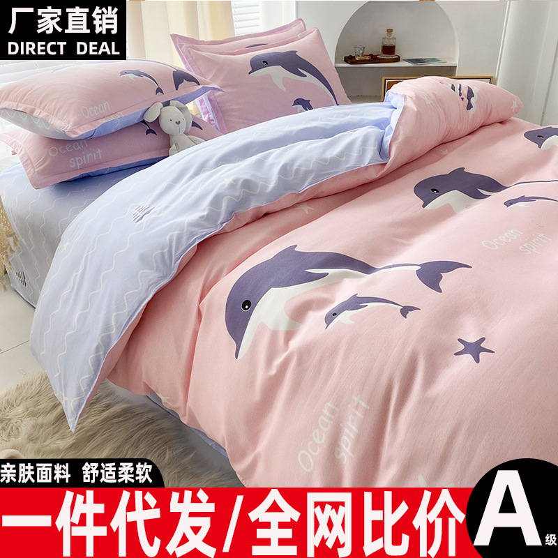 床上四件套亲肤被单被罩学生宿舍单人儿童床单被套三件套四季秋