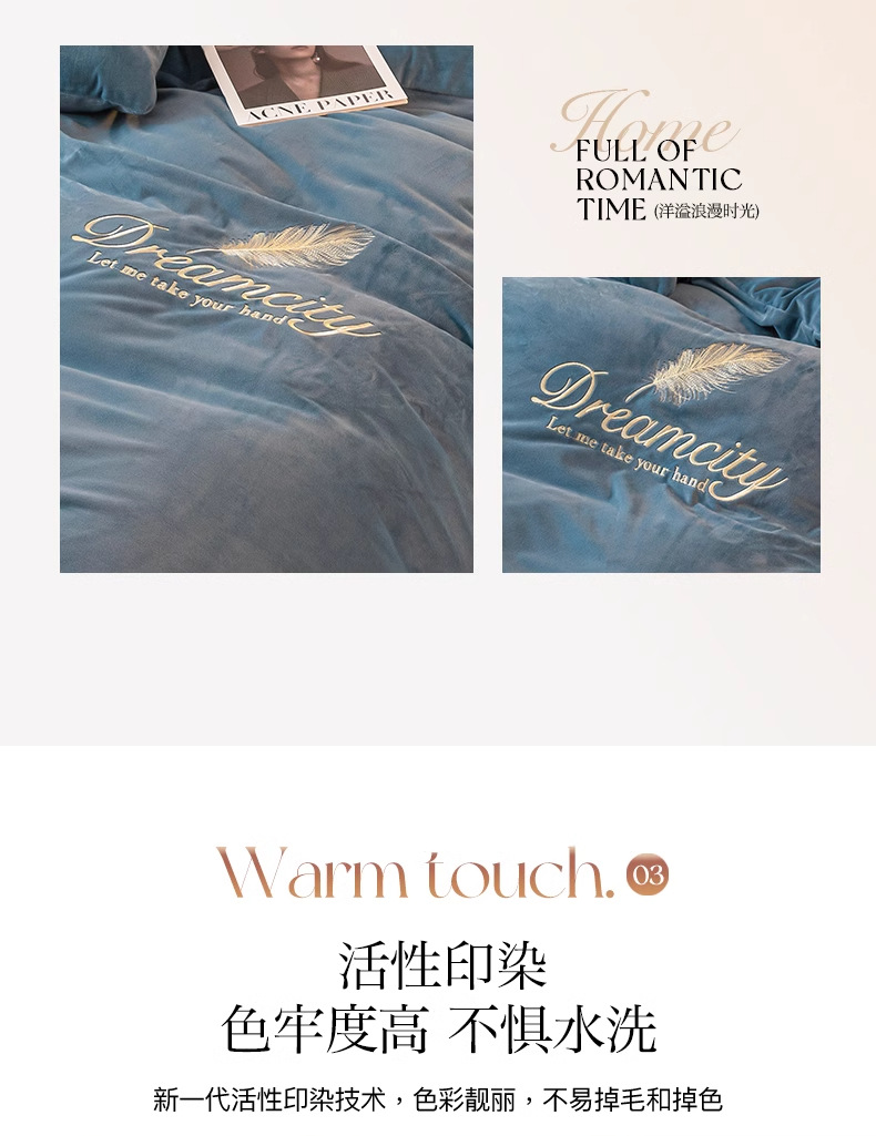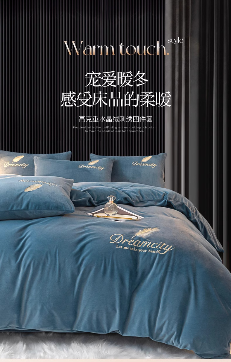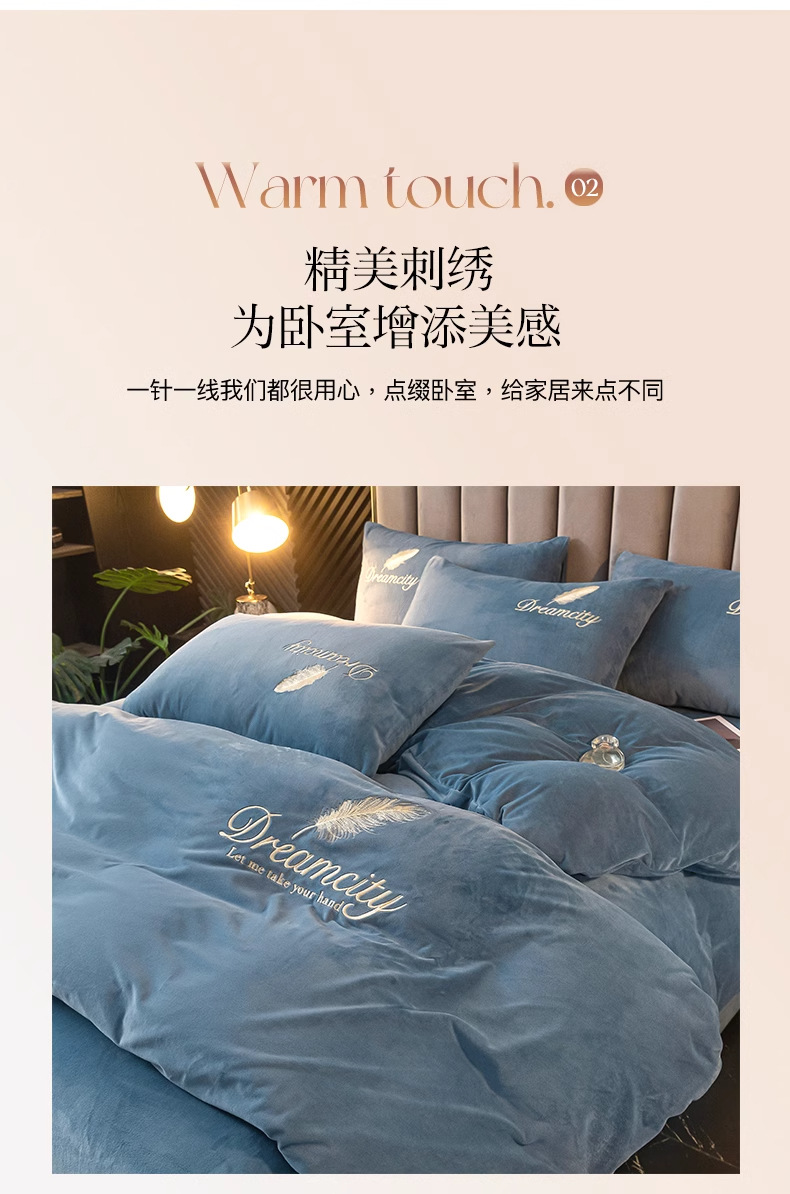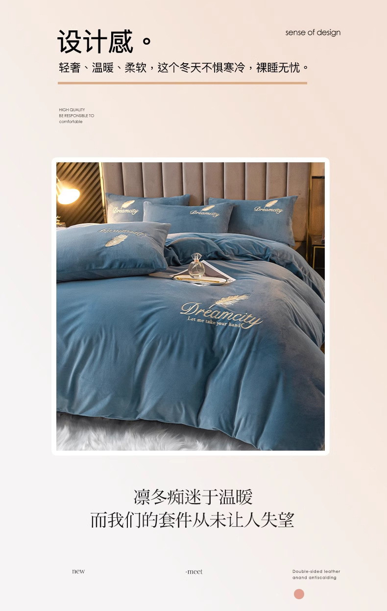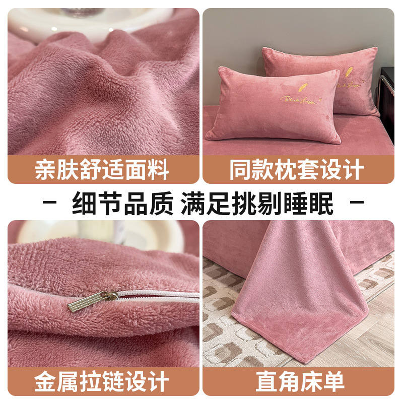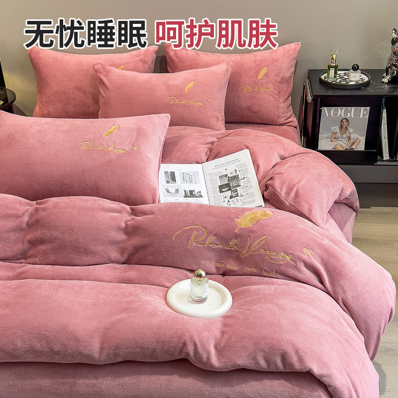 珊瑚绒牛奶绒四件套单件冬季被单加厚宿舍单人被罩水晶绒刺绣被套