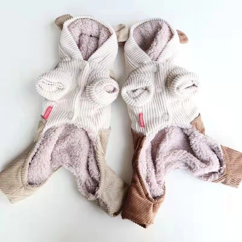 宠物比熊小型犬泰迪狗狗衣服秋冬装冬季棉衣灯芯绒小熊背带四脚衣