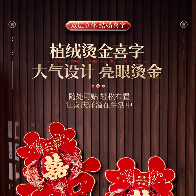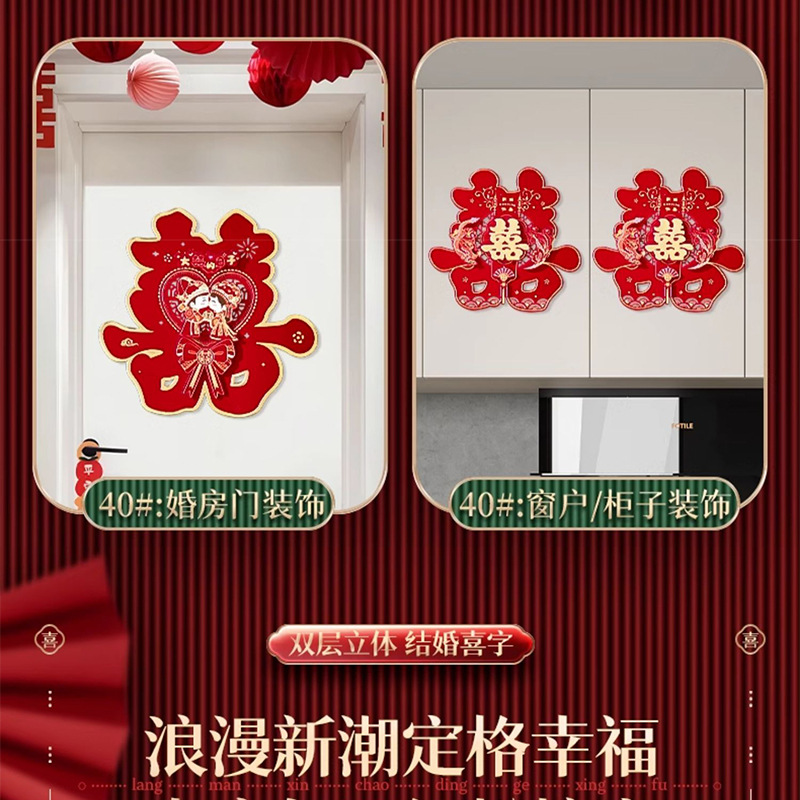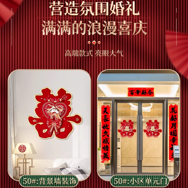 喜字贴结婚礼大门窗户贴纸婚房布置专用卧室房门装饰婚庆用品大全