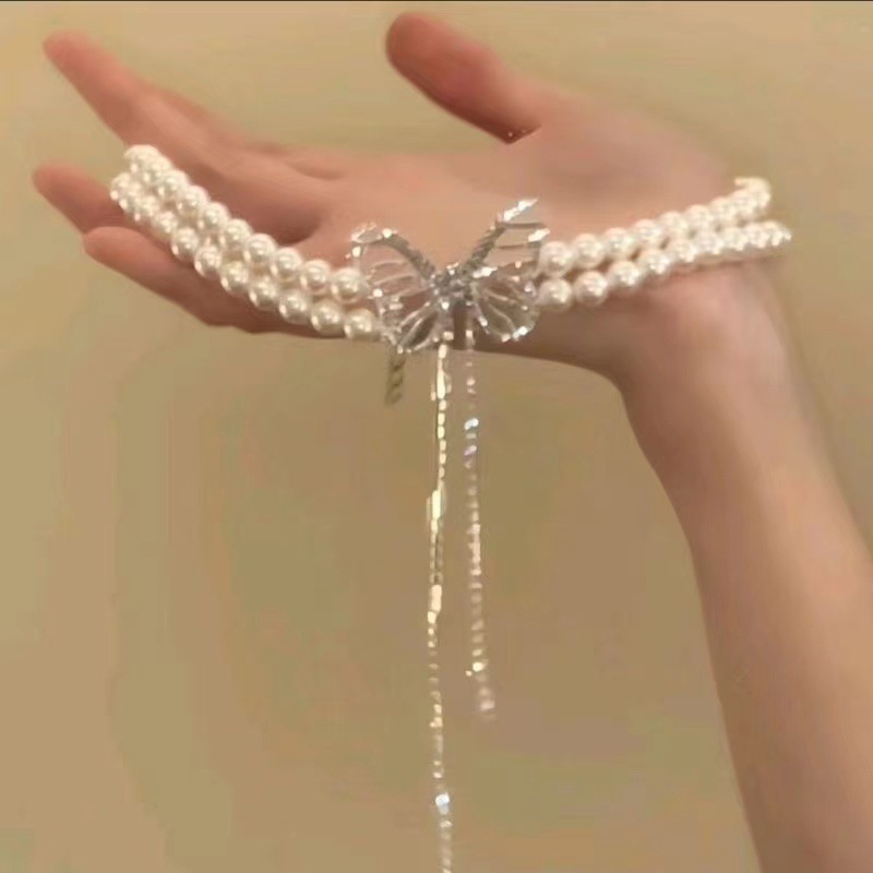 在逃公主 超闪锆石蝴蝶双层珍珠项链秋冬轻奢小众2024温柔
