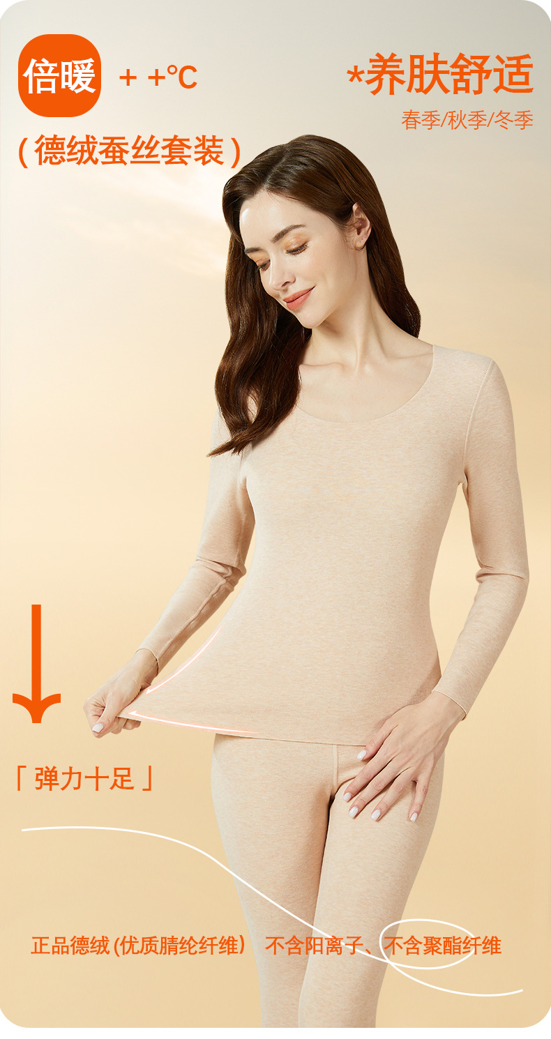 2024秋冬新款蚕丝德绒保暖内衣女无痕发热打底衫长袖内搭T恤上衣