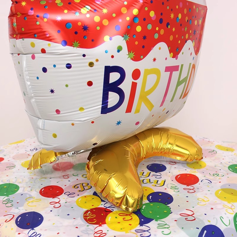 站立底座小熊蜡烛蛋糕铝膜气球生日派对布置场景装饰多巴胺氛围品