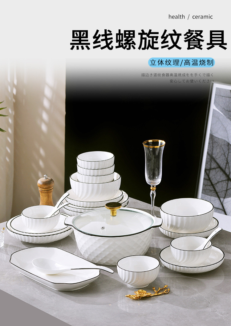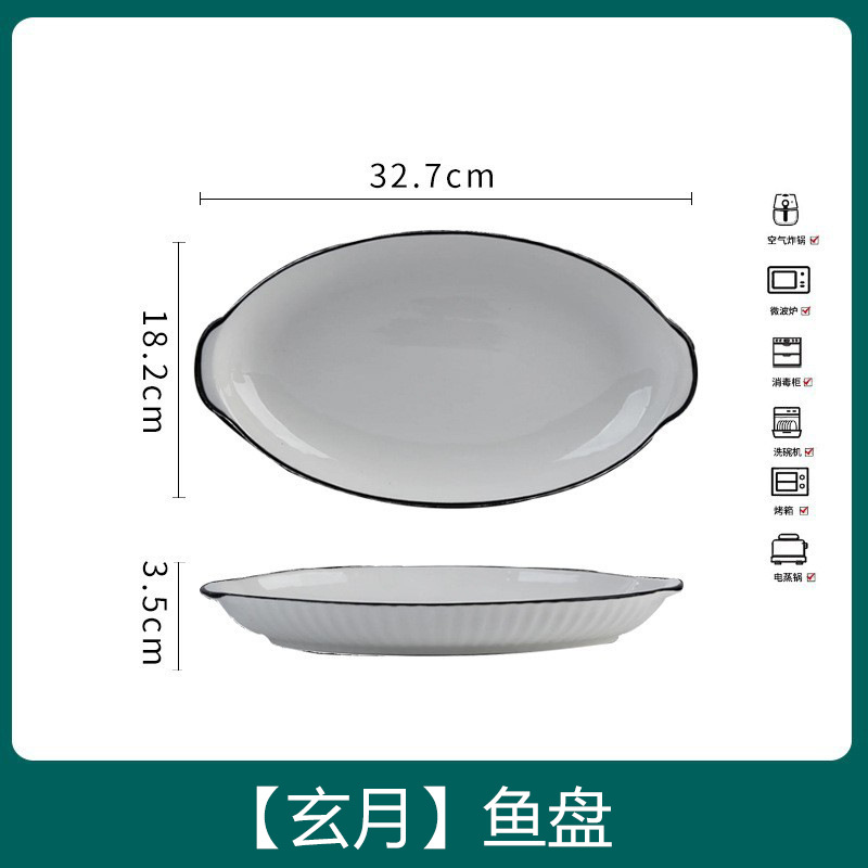 釉下彩北欧玄月防滑家用陶瓷餐具套装碗盘面汤碗鱼盘自由组合礼品