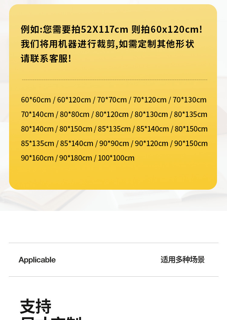 | 50 * 120cm [default 1.5cm rounded corner]](50*120cm【默认1.5cm圆角】) | USD $4.34 | 4998 piece available |