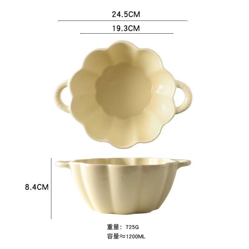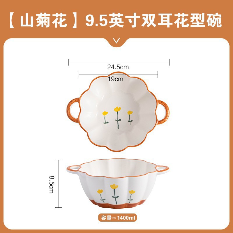 可爱陶瓷泡面碗双耳碗家用个人专用防烫草莓花瓣碗水果沙拉汤面碗