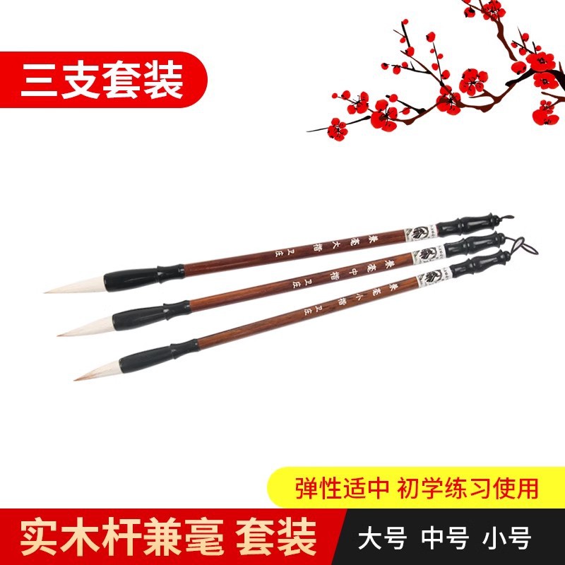 实木杆狼毫羊毫兼毫书画练习大中小楷初学书法培训学生毛笔批发