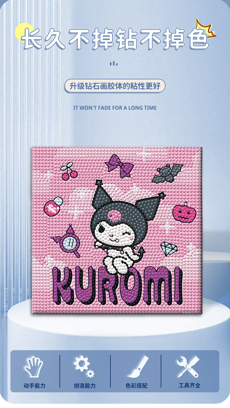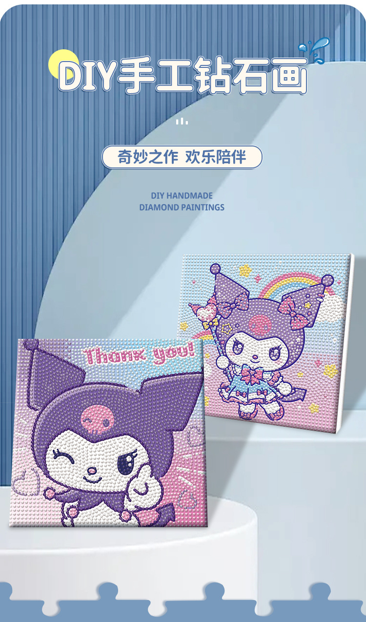 新款三丽鸥钻石画diy手工库洛米钻石粘贴画儿童益智立体点钻画