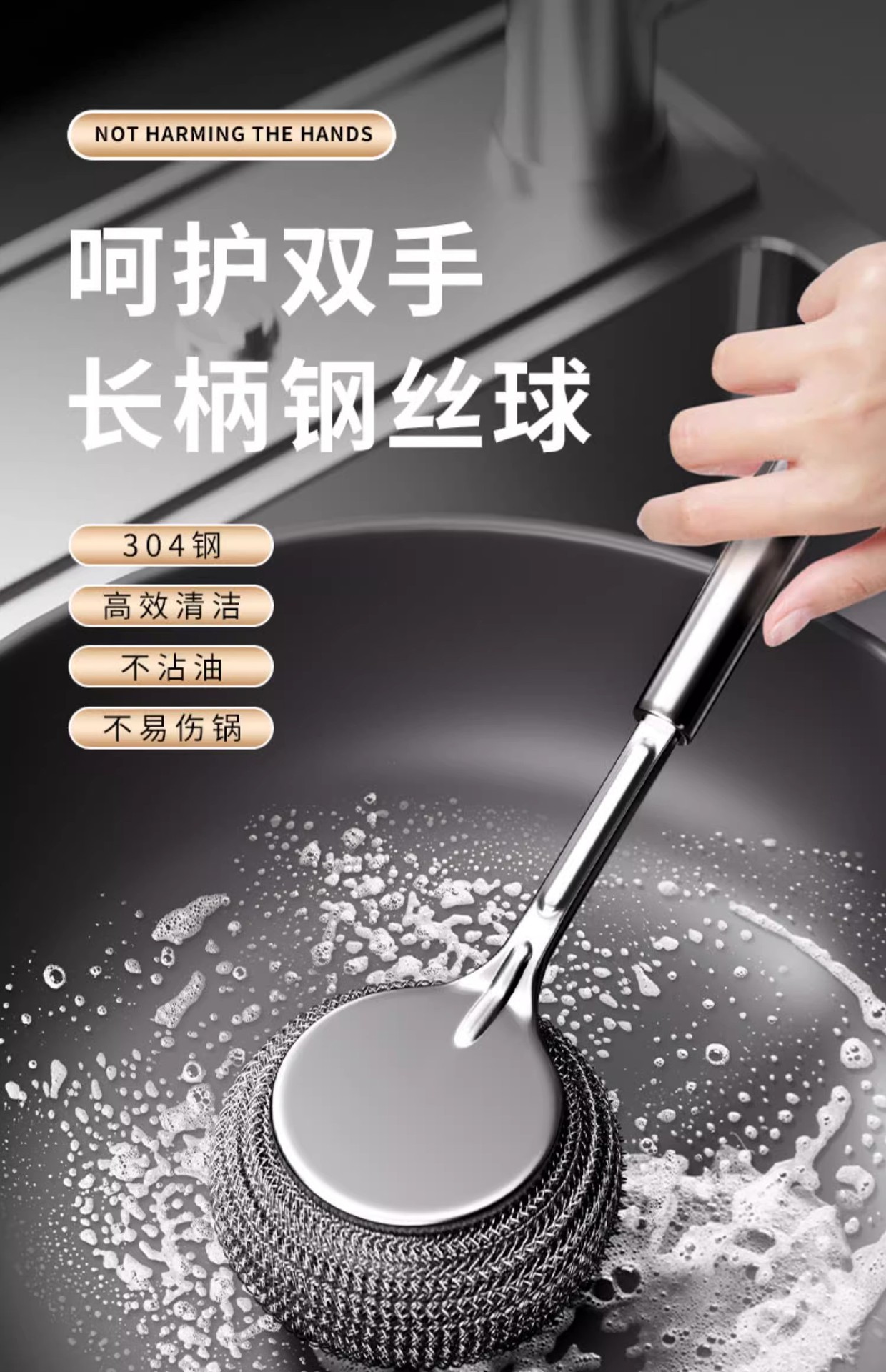 批发不锈钢锅带柄长刷厨房专用洗锅钢丝球洗碗清洁刷锅的刷子神器