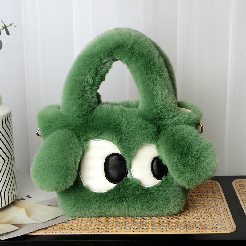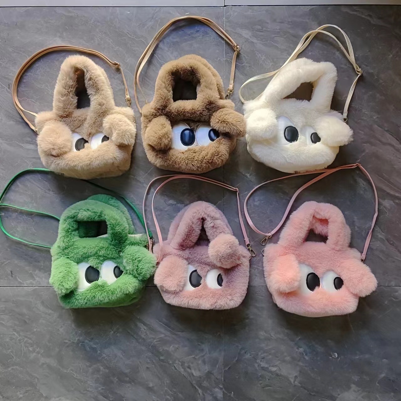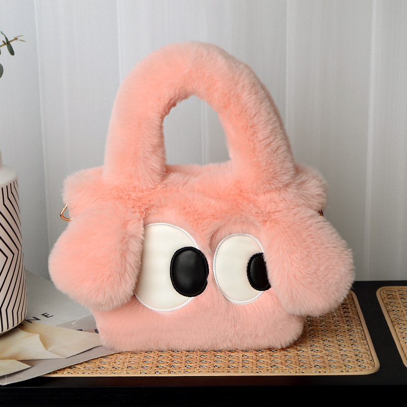 秋冬百搭毛绒包包新款可爱大眼睛斜挎毛绒链条小方包手提单肩包