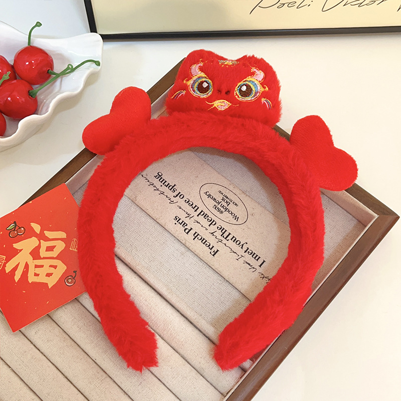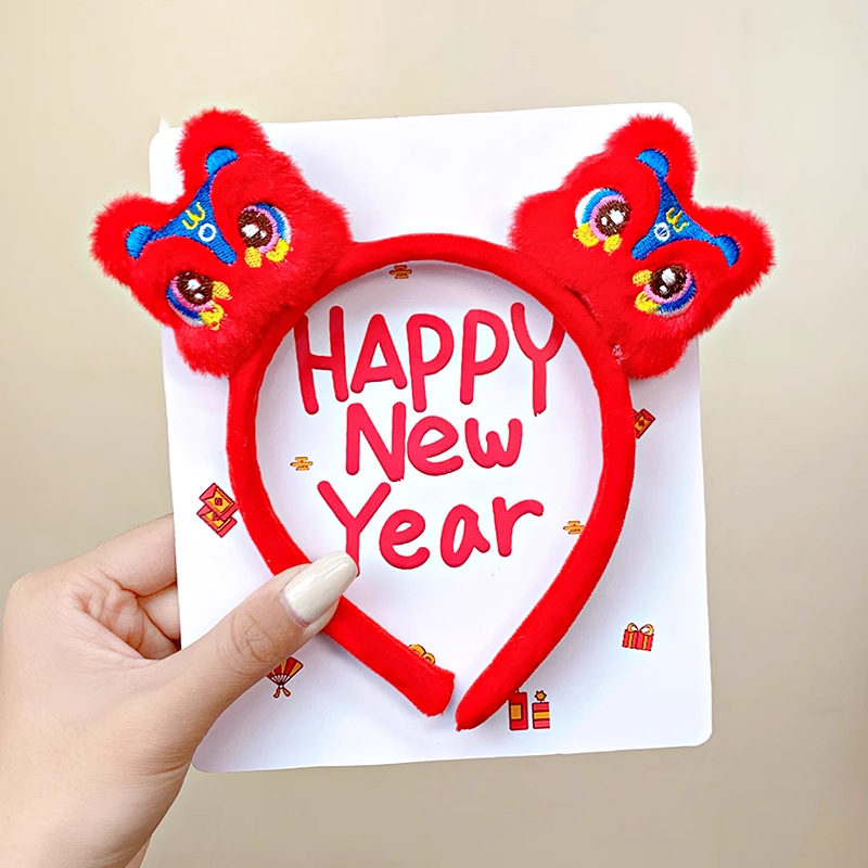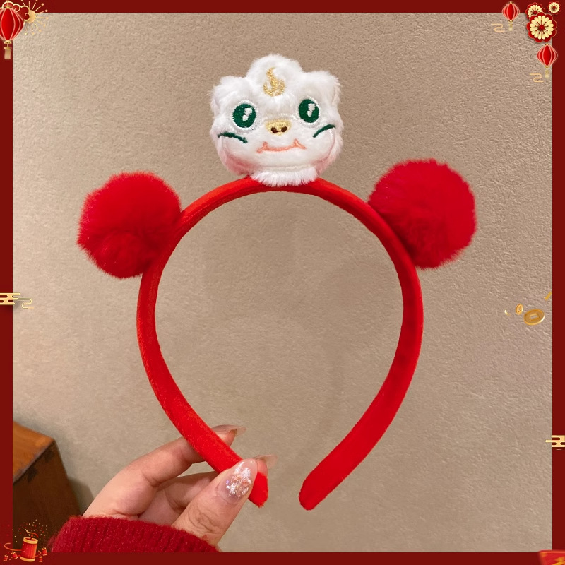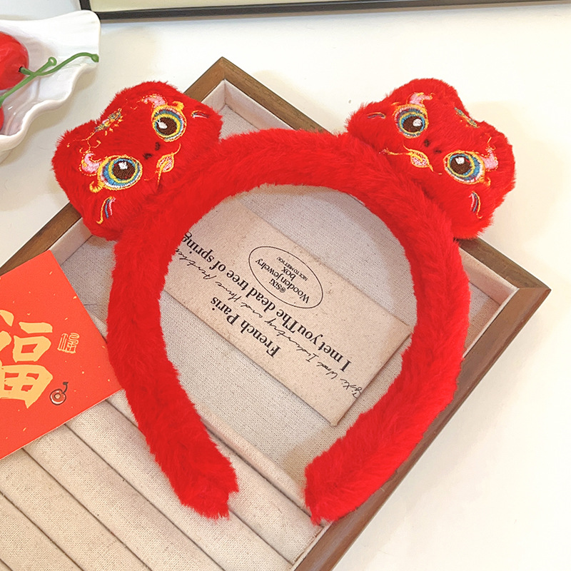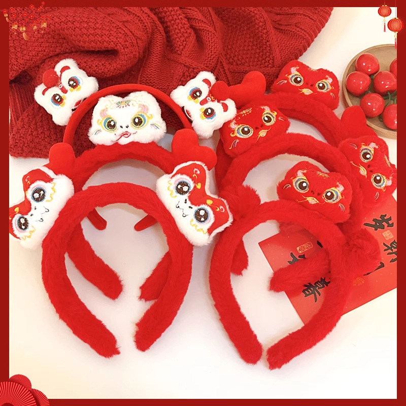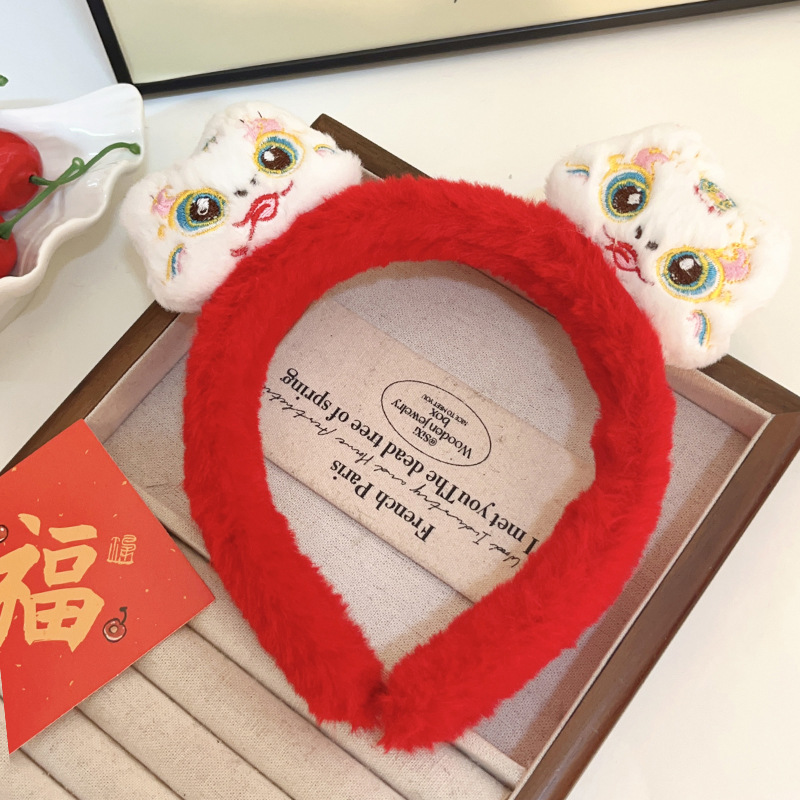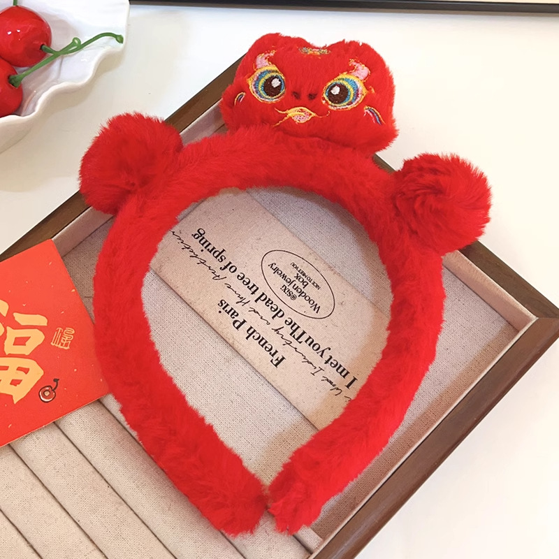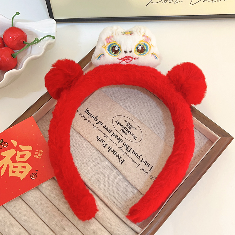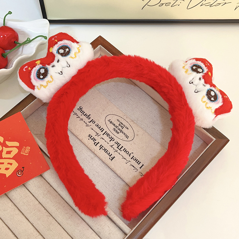 新年红色毛绒醒狮发箍喜庆跨年装扮头箍洗脸压发头饰可爱过年发卡