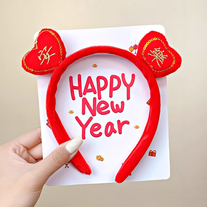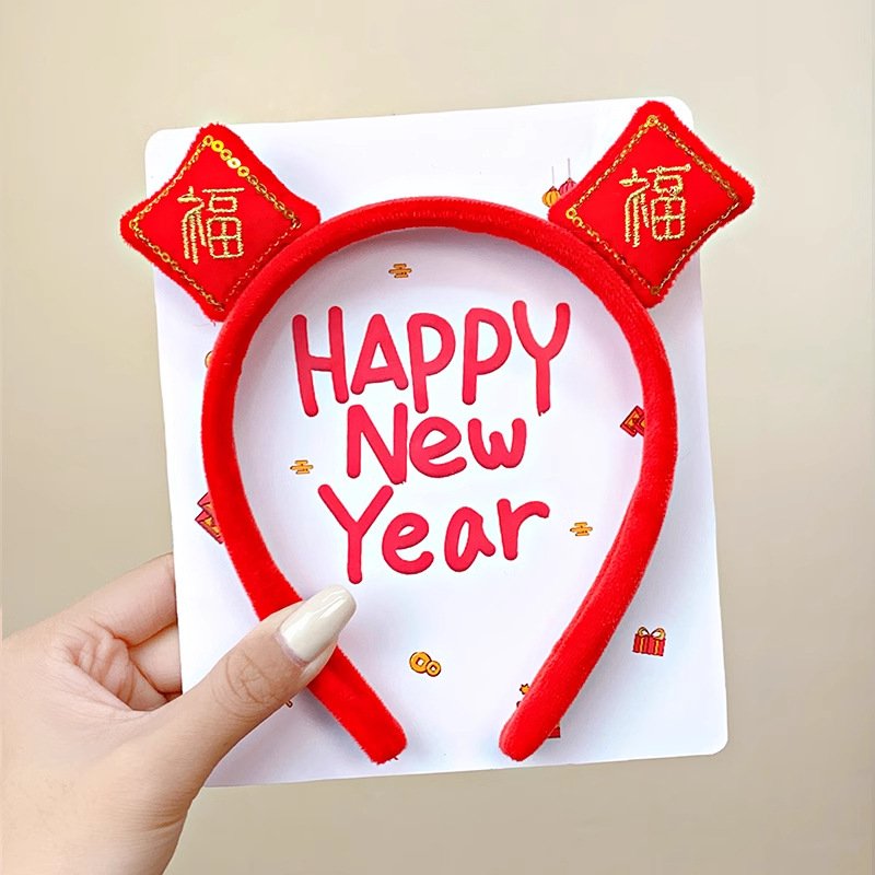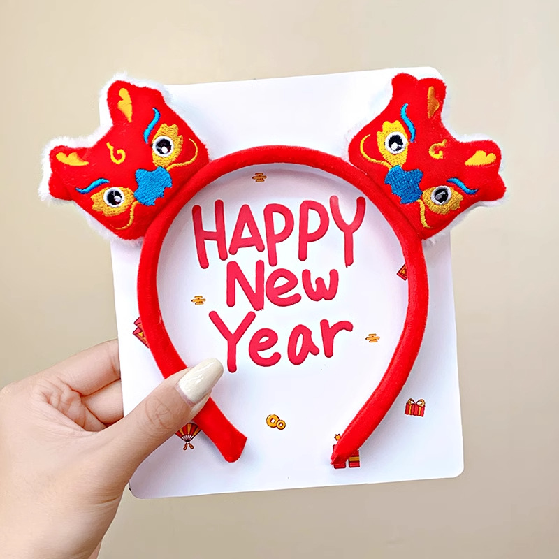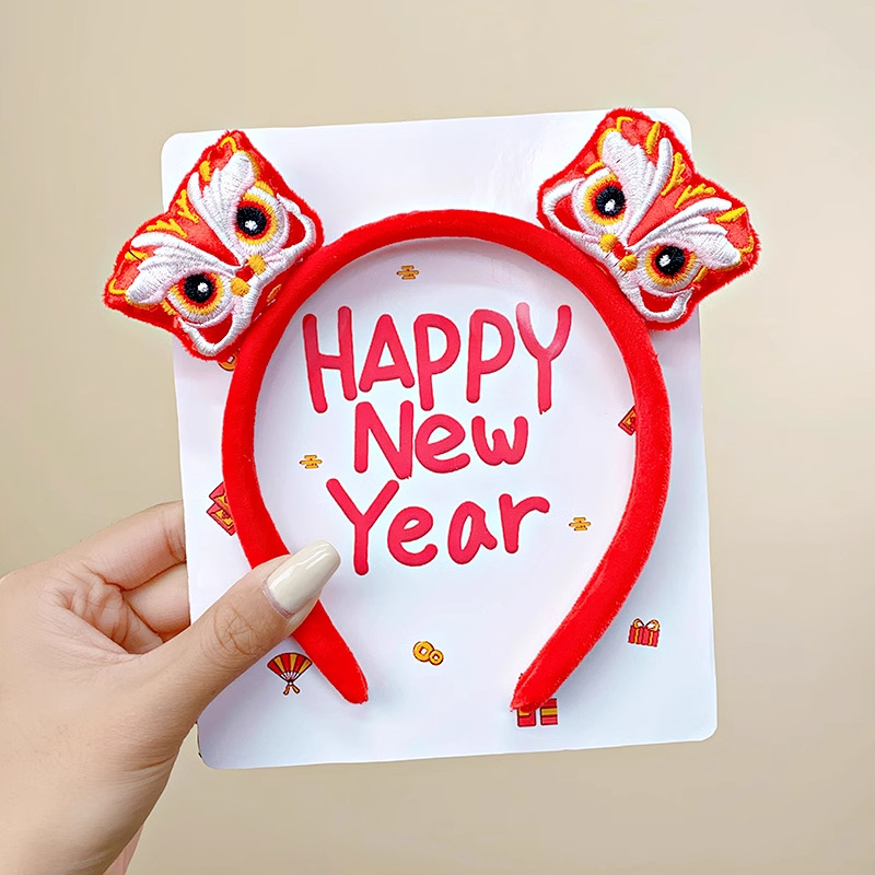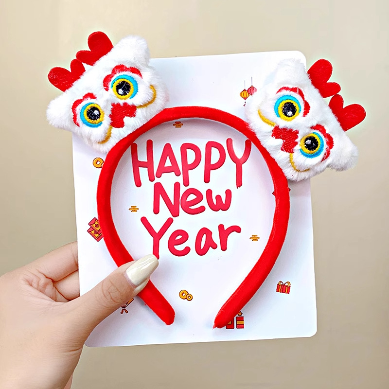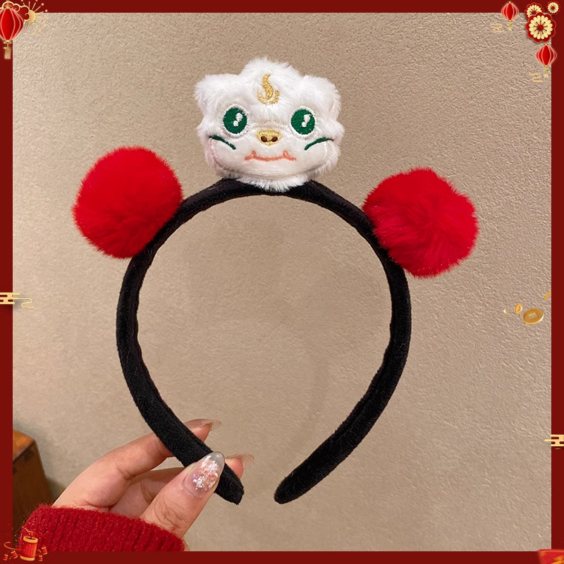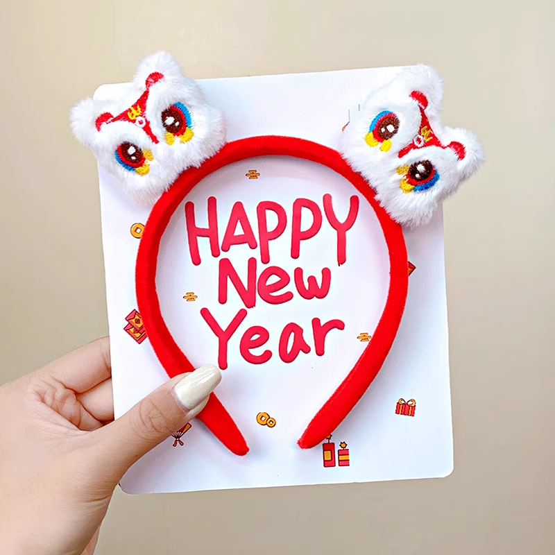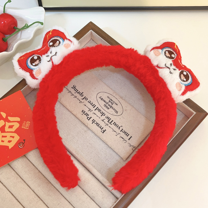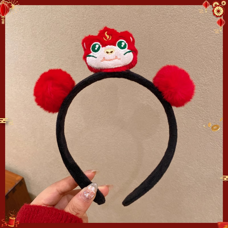 新年红色毛绒醒狮发箍喜庆跨年装扮头箍洗脸压发头饰可爱过年发卡