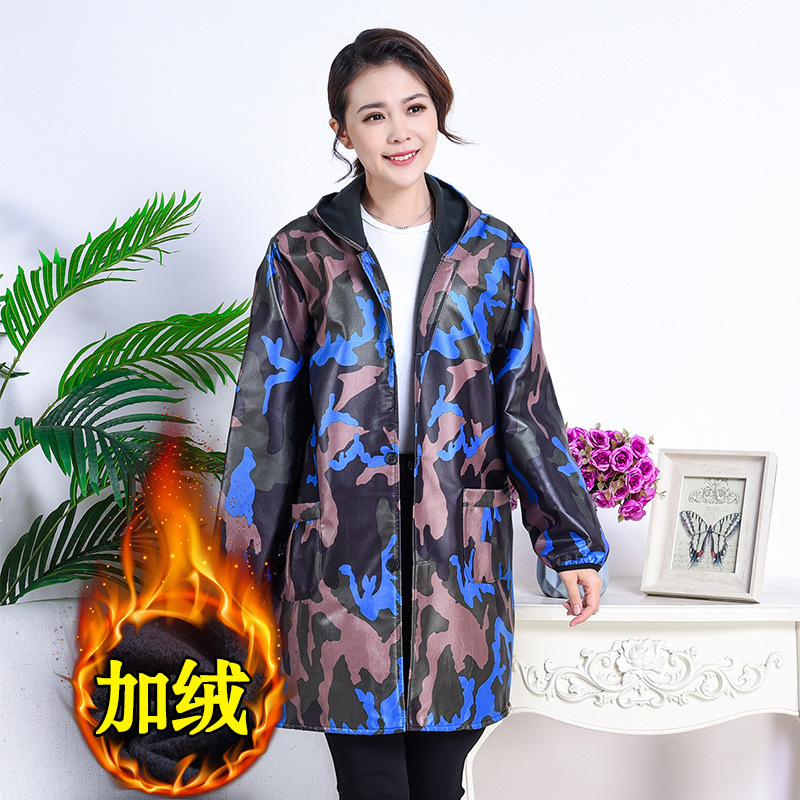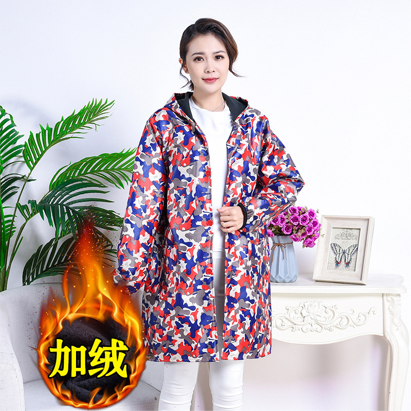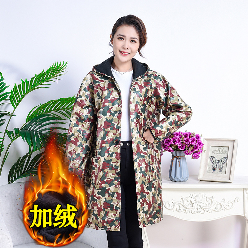 防水防脏成人男女罩衣围裙迷彩加绒加厚长款秋冬季厨房工作服大褂