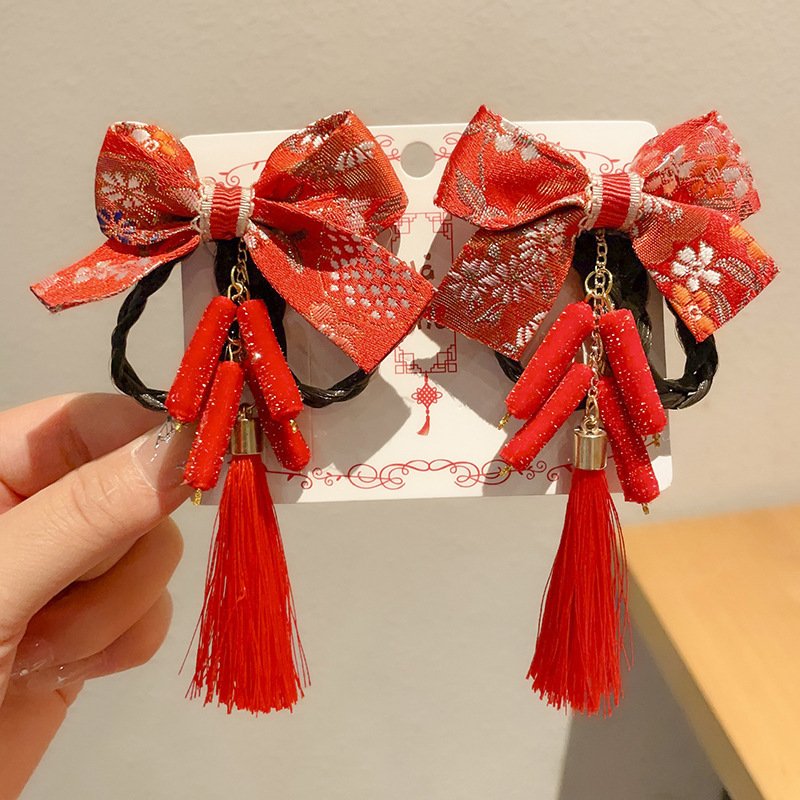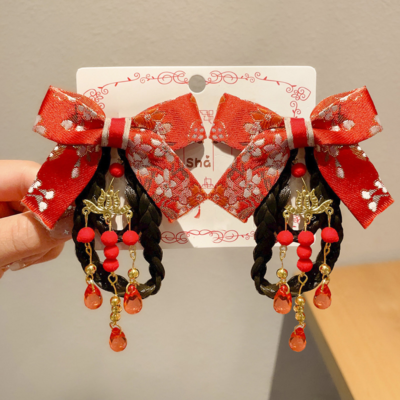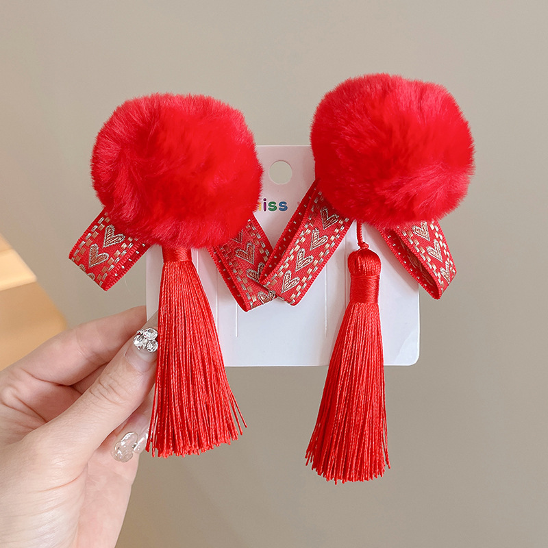新年发饰儿童过年发夹2025新款女童古风流苏对夹红色汉服发卡头饰