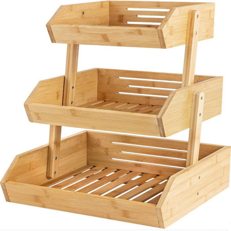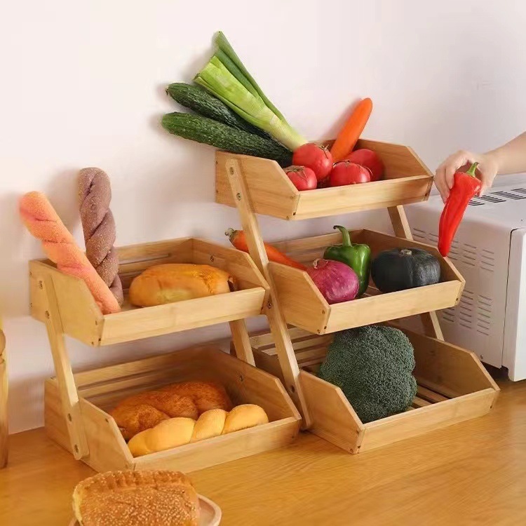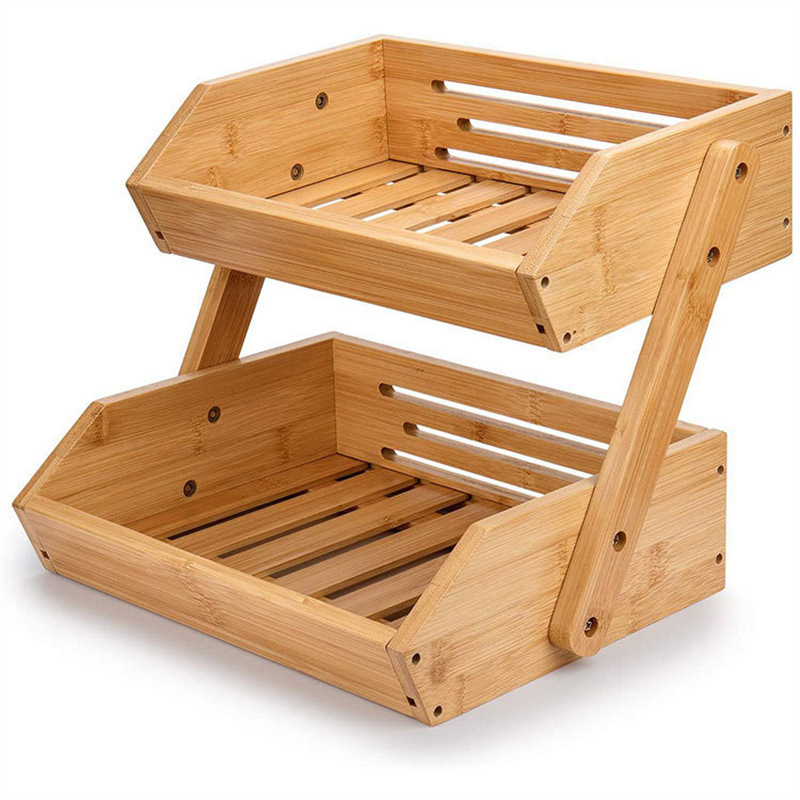 竹制水果篮 双层水果篮 厨房置物架储物篮客厅水果收纳筐