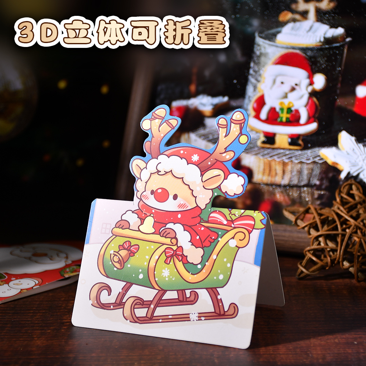 圣诞节立体贺卡平安夜手写祝福烫金卡片花店烘焙送礼物折叠小卡片