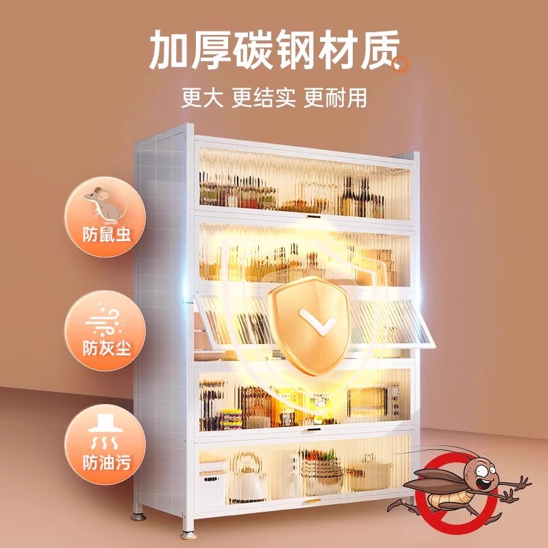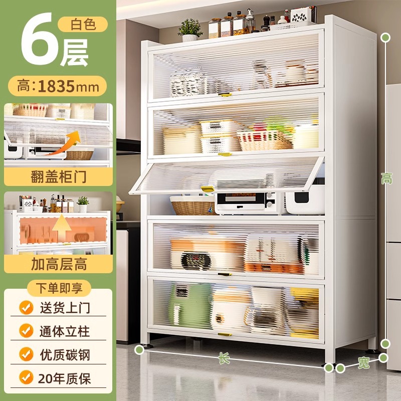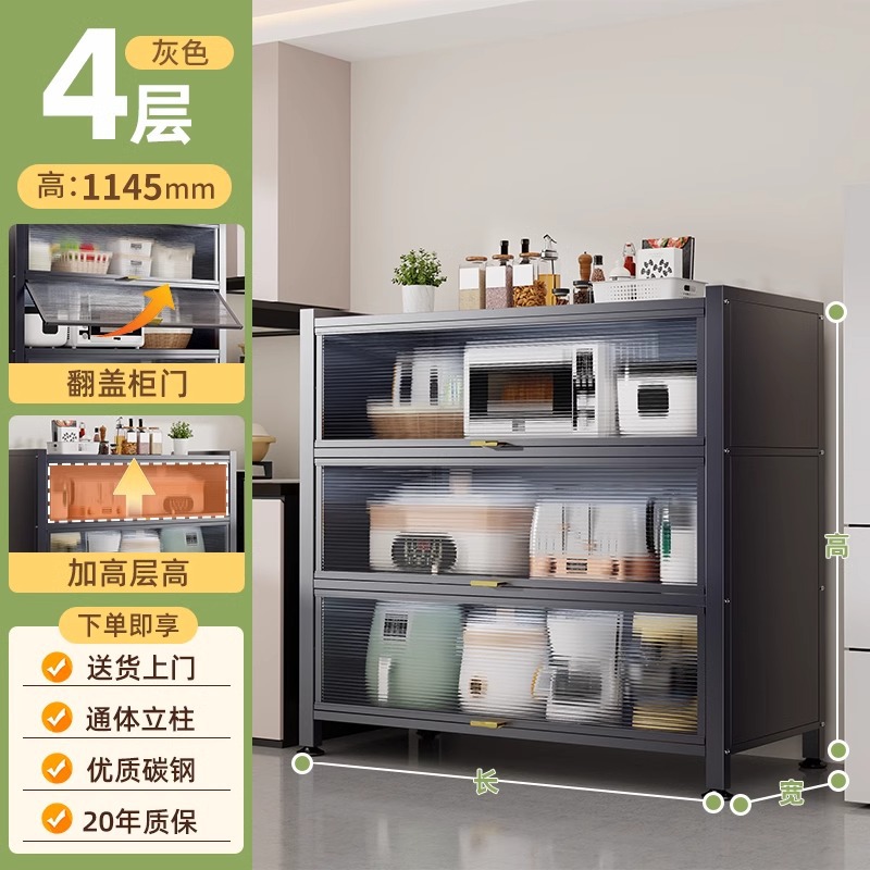 厨房置物架落地多层收纳柜子微波炉家用带门多功能橱柜防尘储物柜