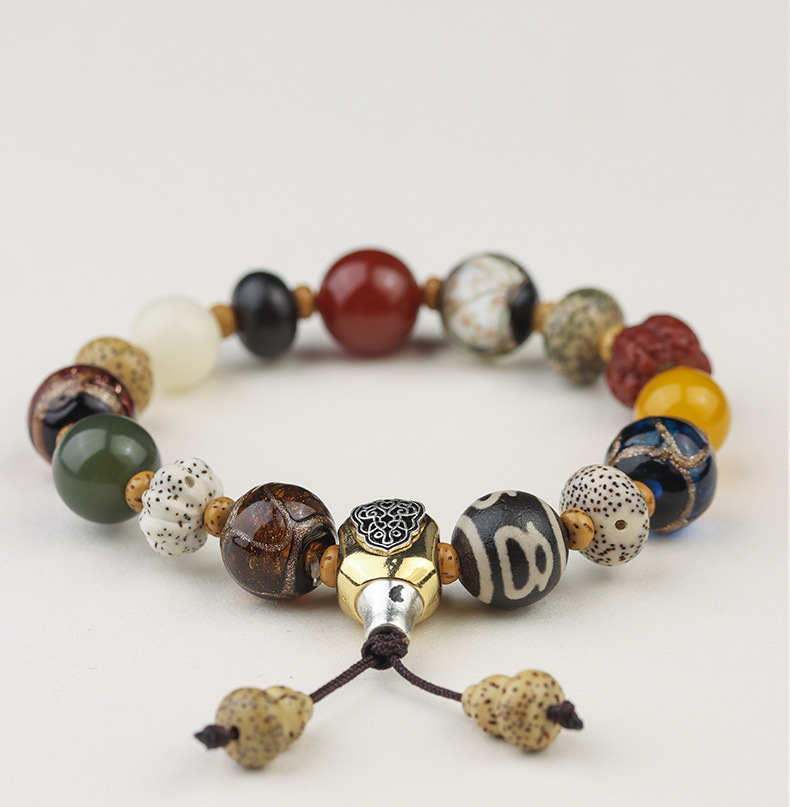 高端寺庙同款星月菩提根香灰琉璃十八籽手串心经南红男女佛珠手链