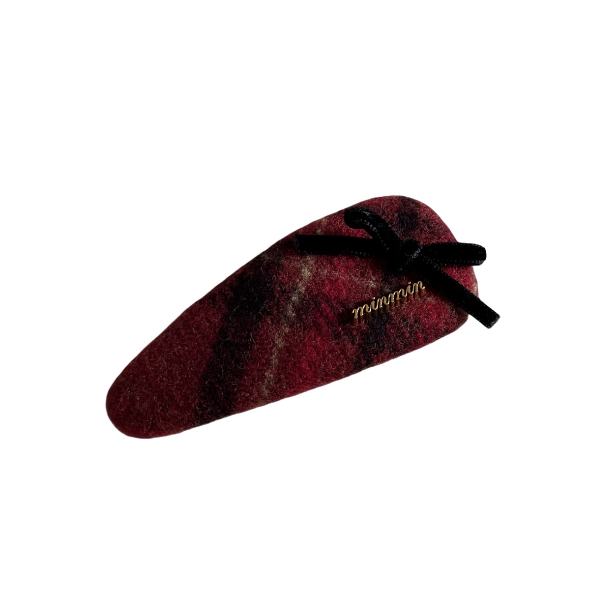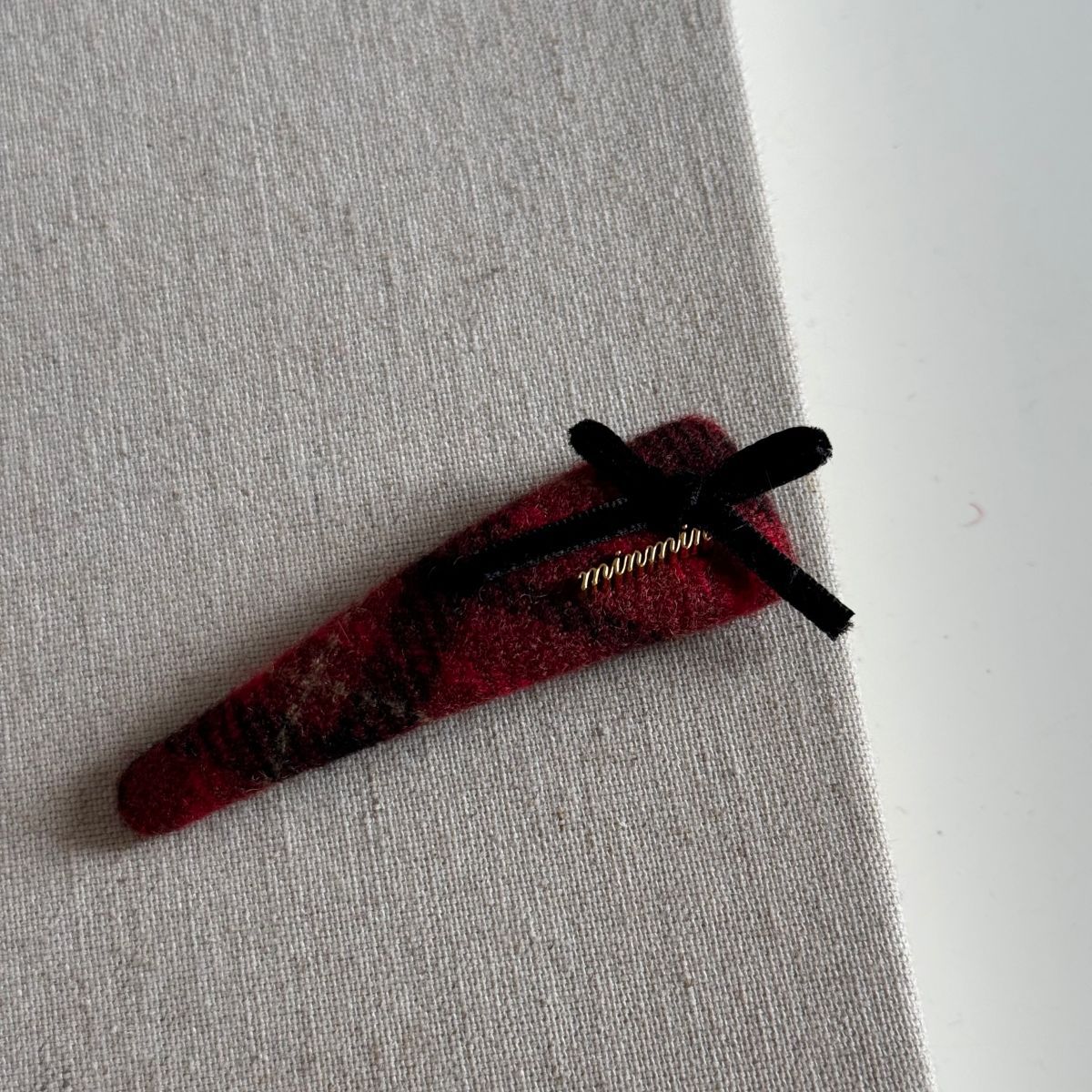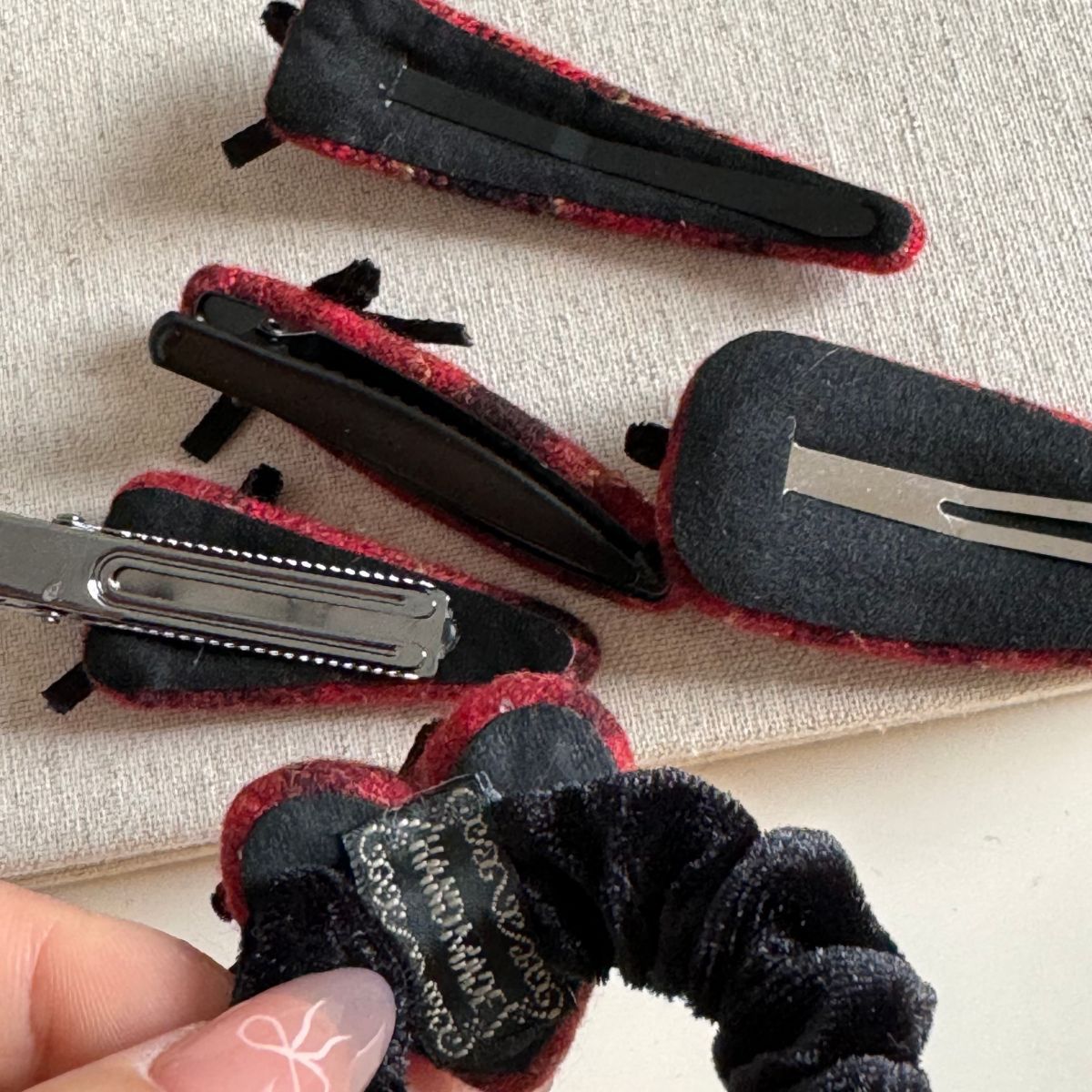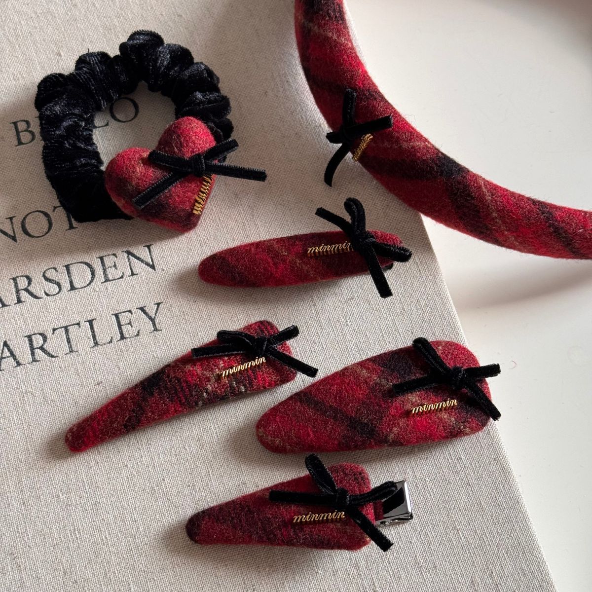 新年红格纹发夹黑丝带小蝴蝶结金色字母标复古鸭嘴夹BB夹刘海夹