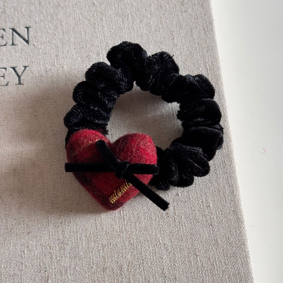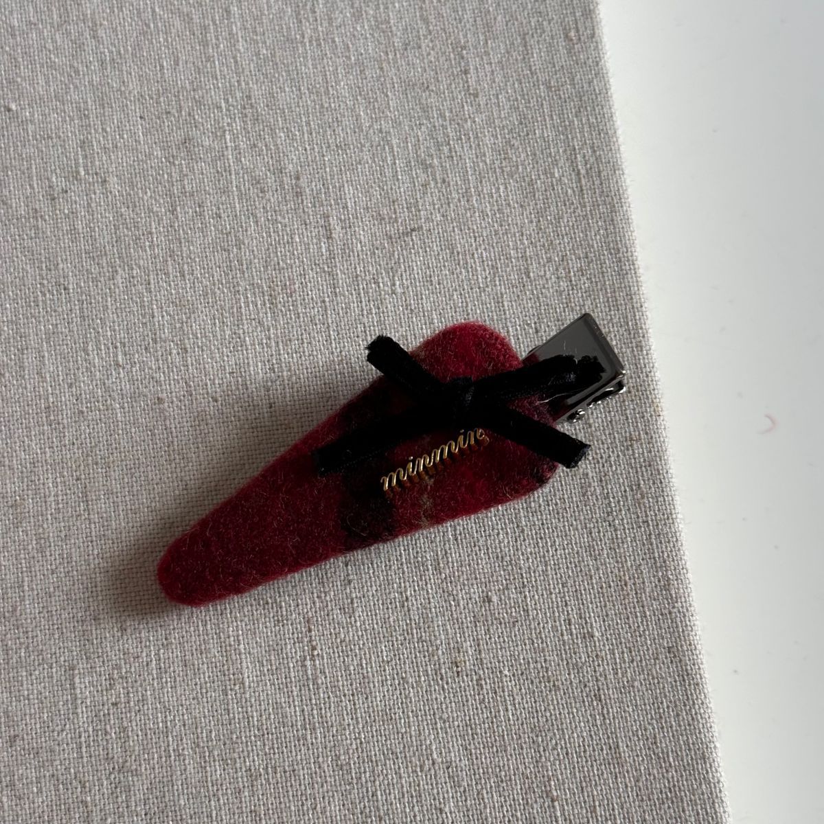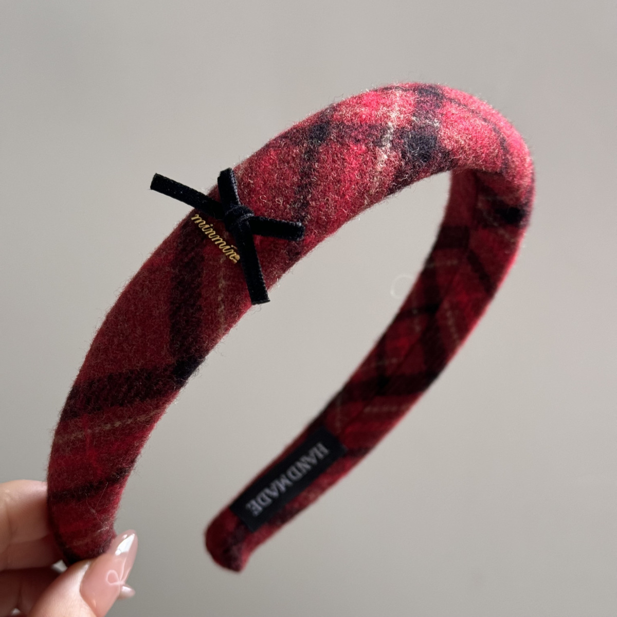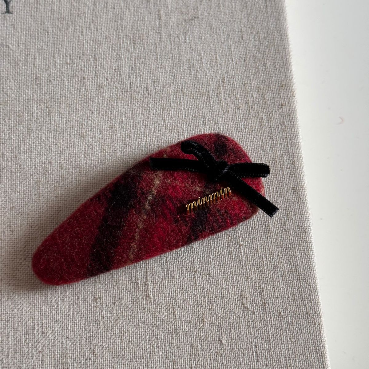 新年红格纹发夹黑丝带小蝴蝶结金色字母标复古鸭嘴夹BB夹刘海夹