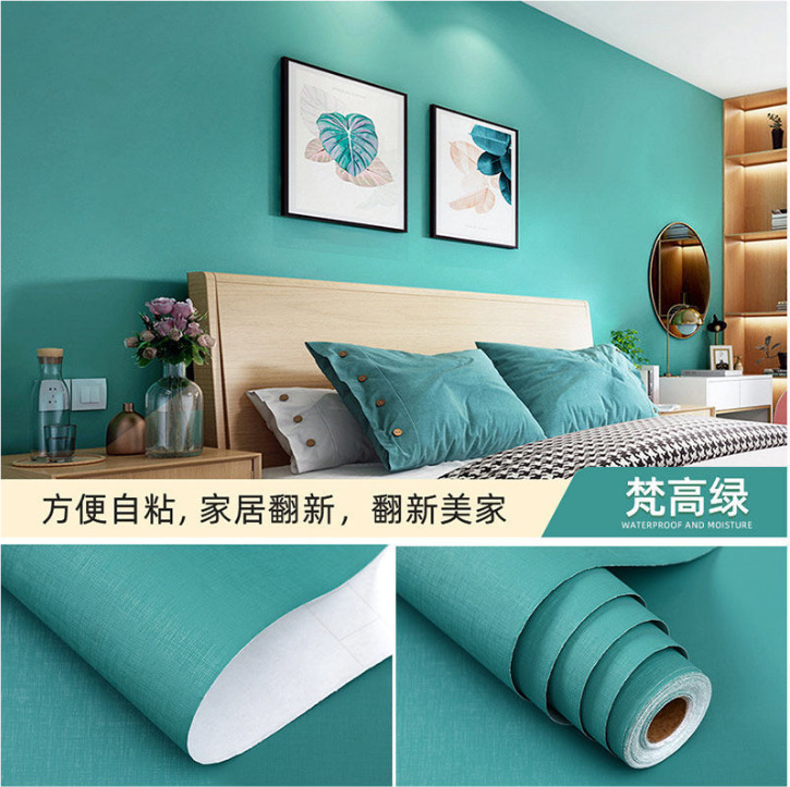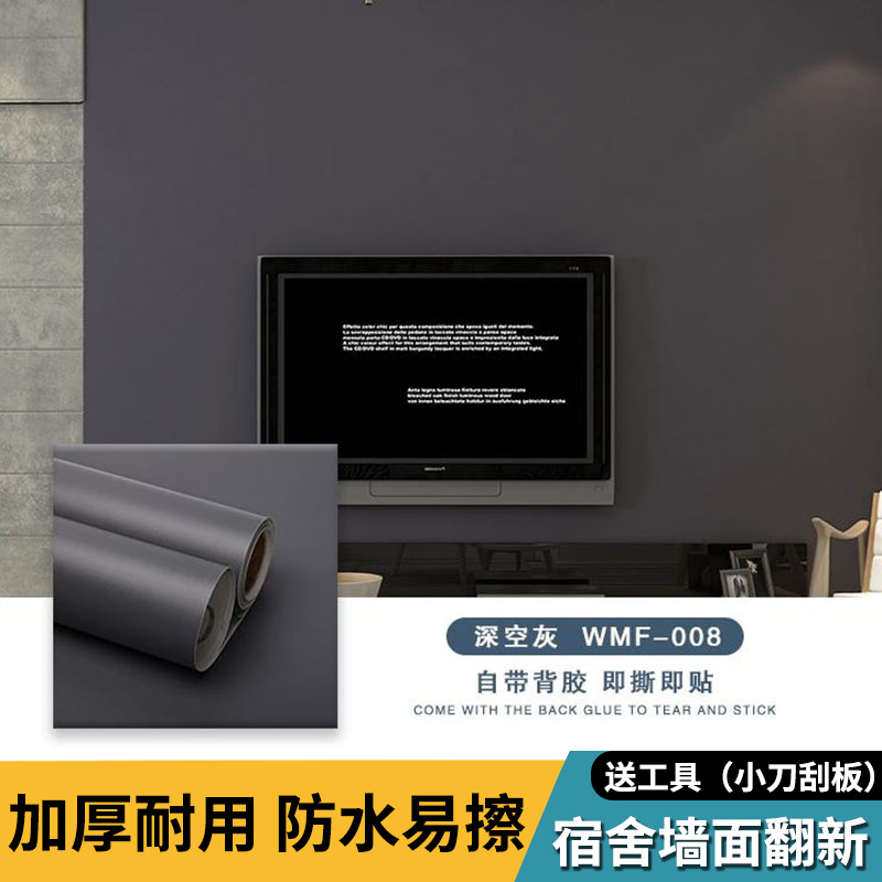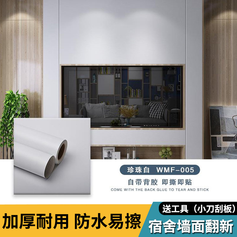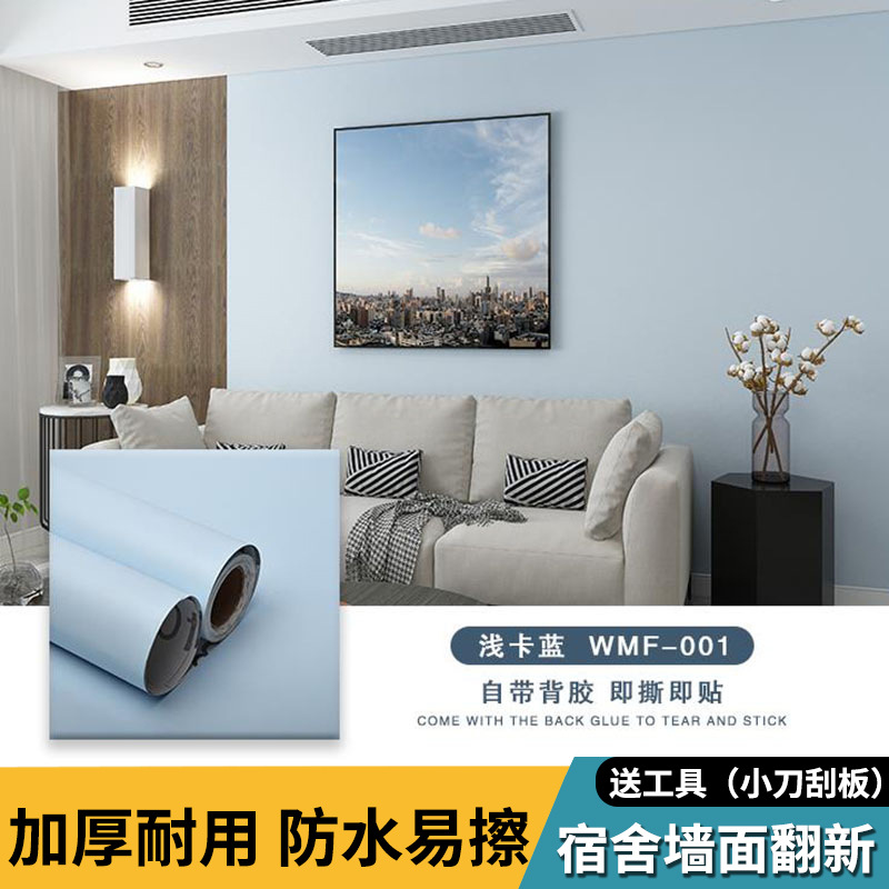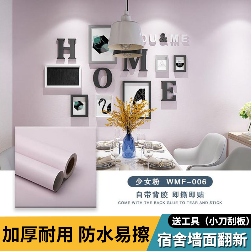 马卡龙墙纸自粘纯色贴纸卧室寝室衣柜门装饰贴防水防潮壁纸纯色翻