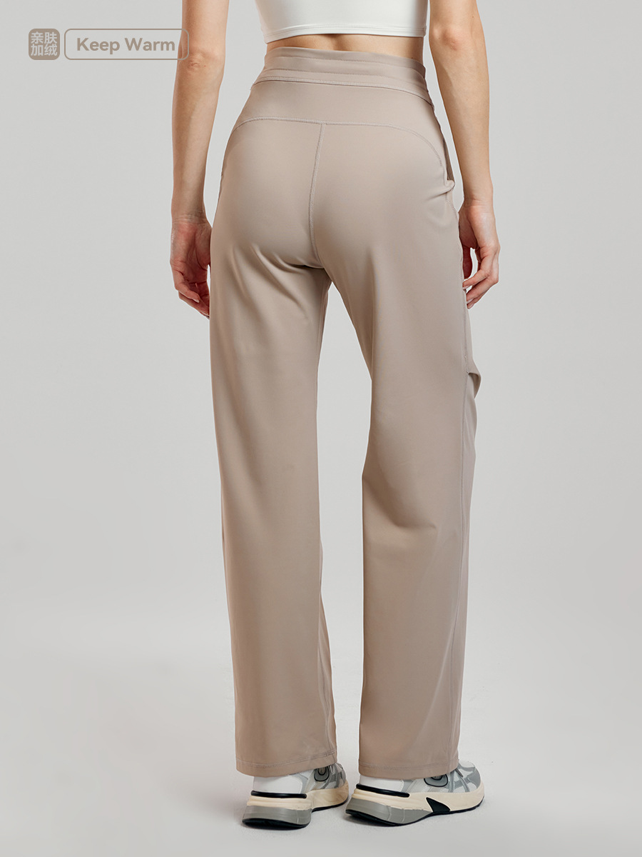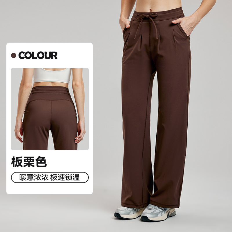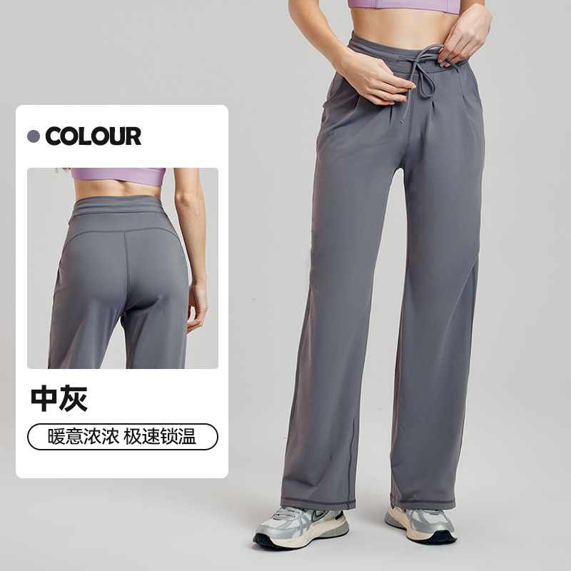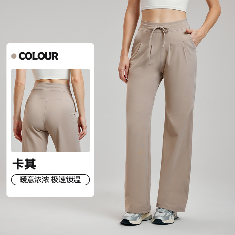直筒加绒运动裤女秋冬高腰抽绳百搭宽松休闲裤阔腿显瘦保暖瑜伽裤