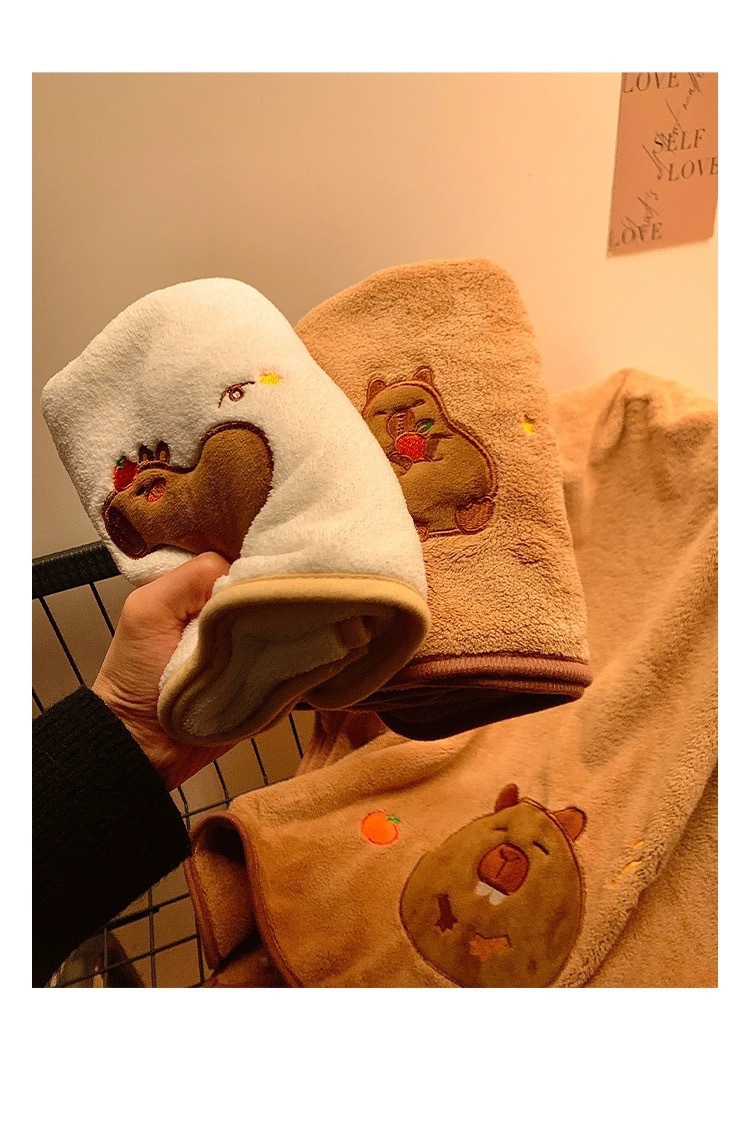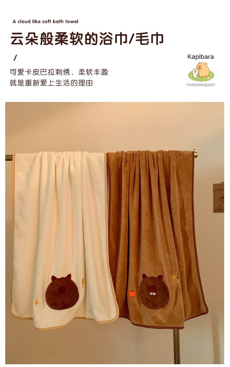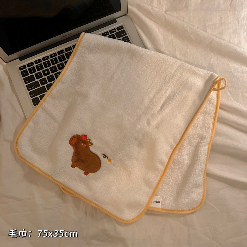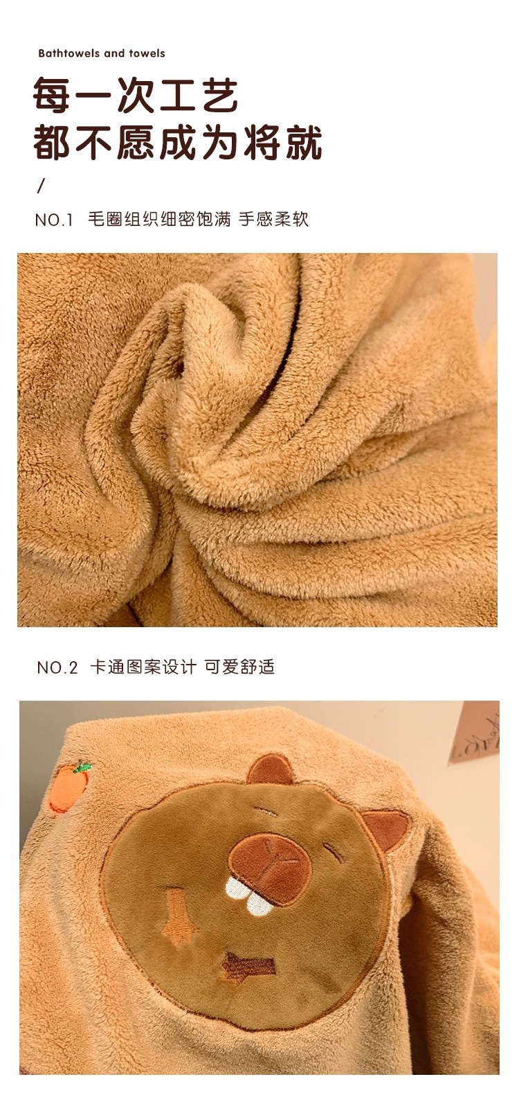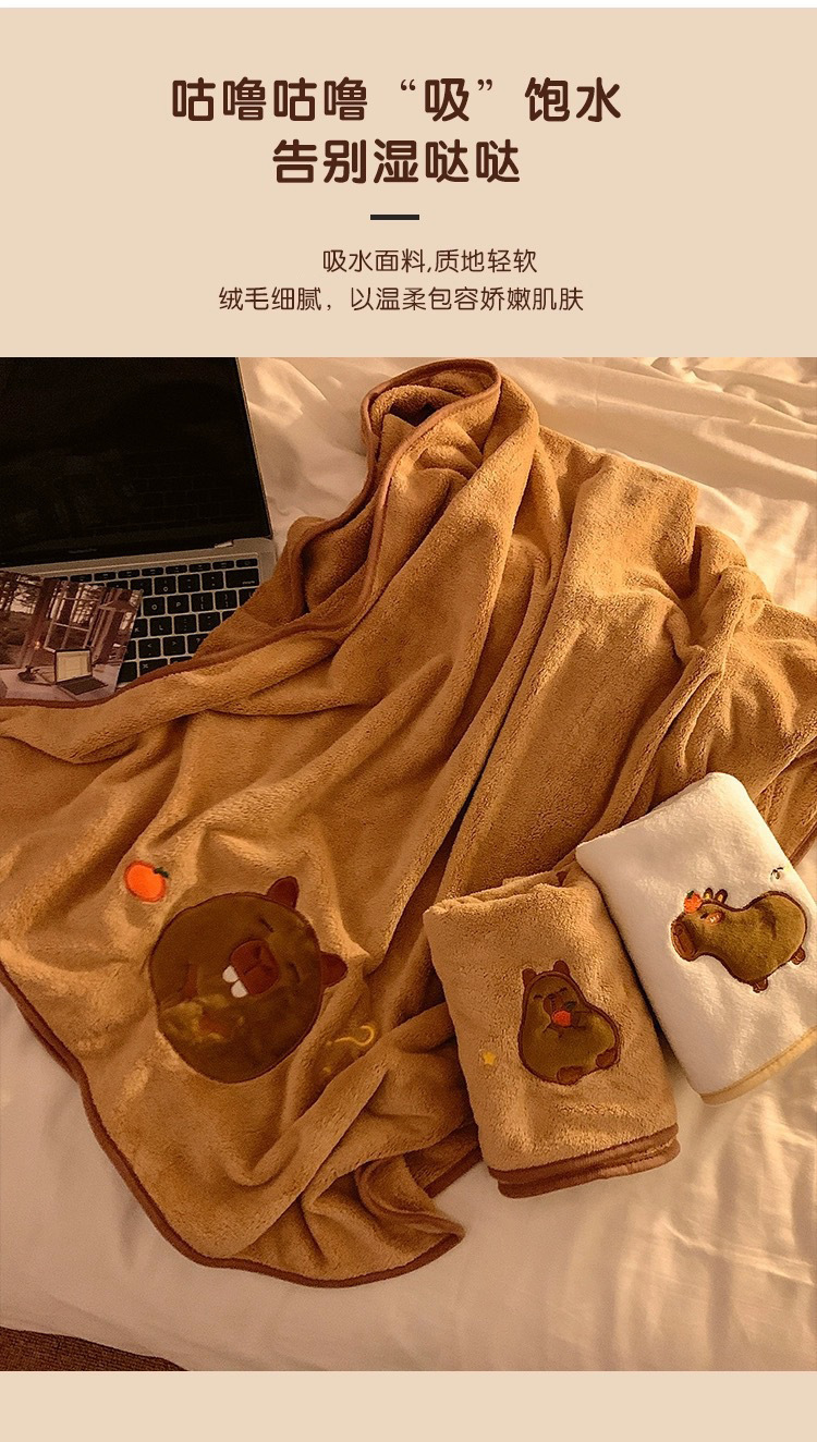 新款豚鼠浴巾毛巾两件套女家用吸水速干洗澡裹巾可爱卡通加厚批发