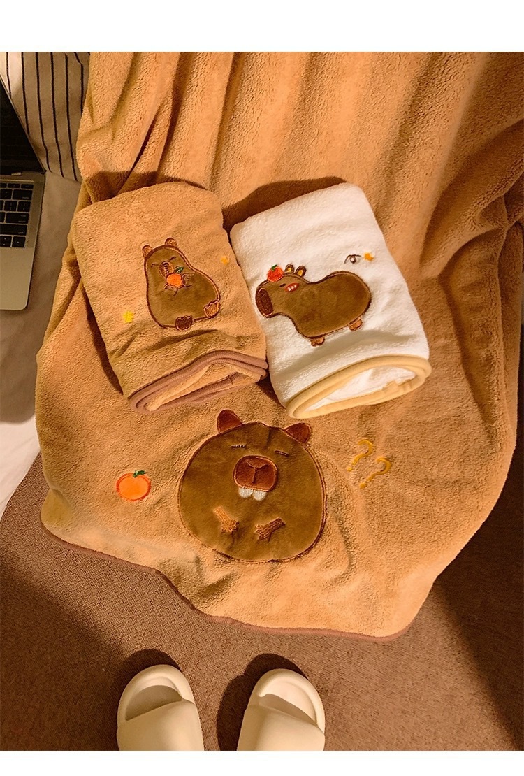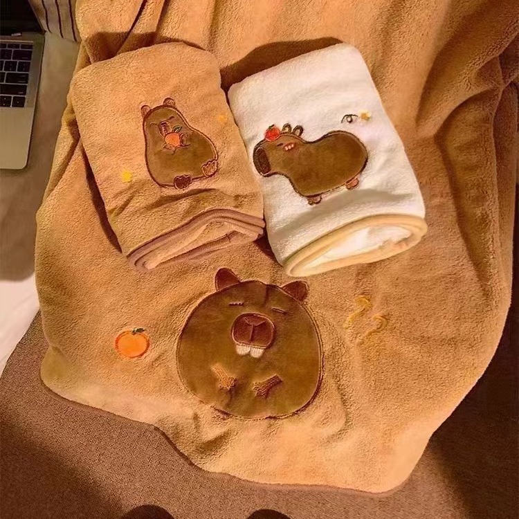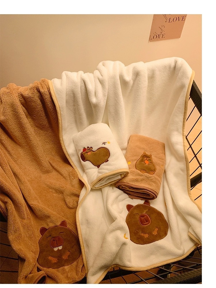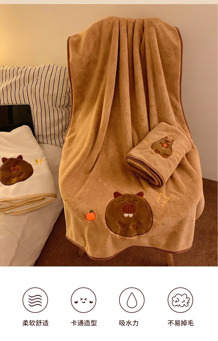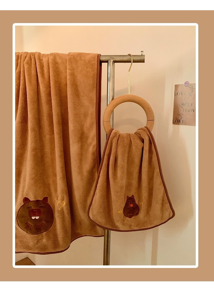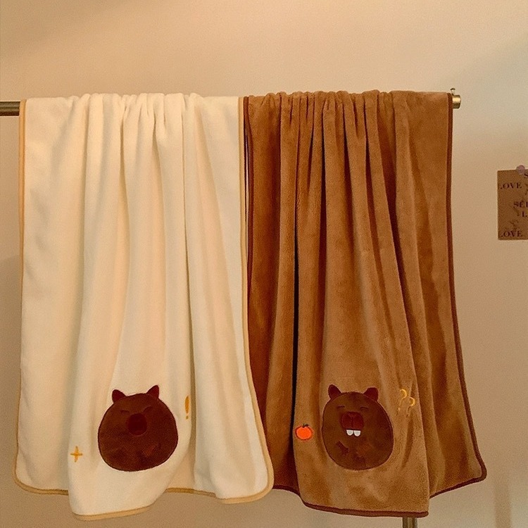 新款豚鼠浴巾毛巾两件套女家用吸水速干洗澡裹巾可爱卡通加厚批发