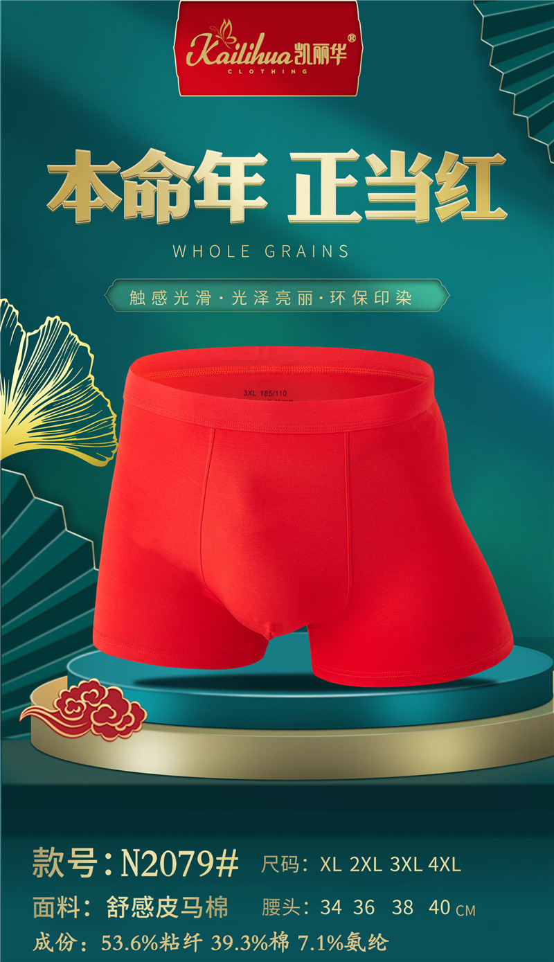 男士大红本命年内裤纯大红平角裤棉透气四角中腰内裤男结婚短裤