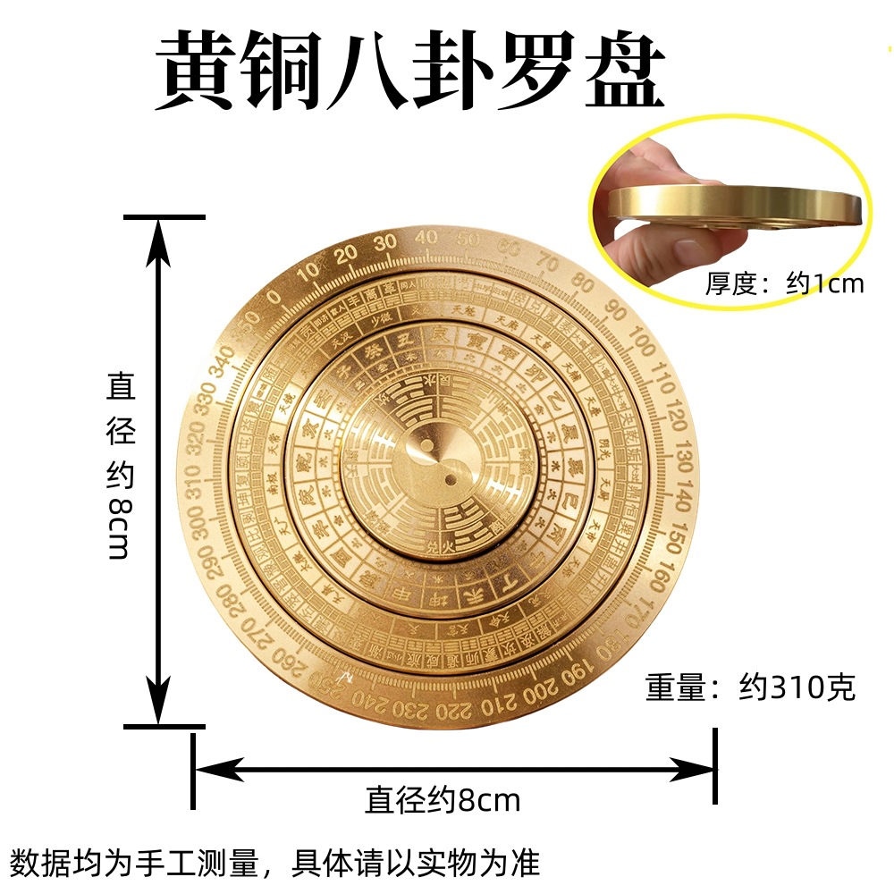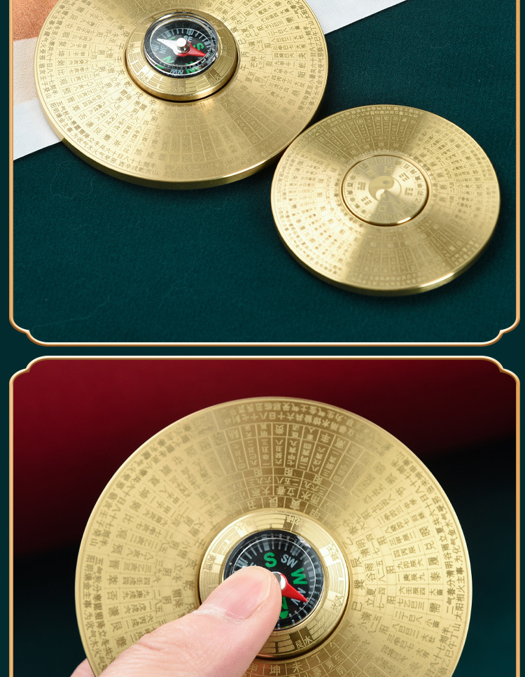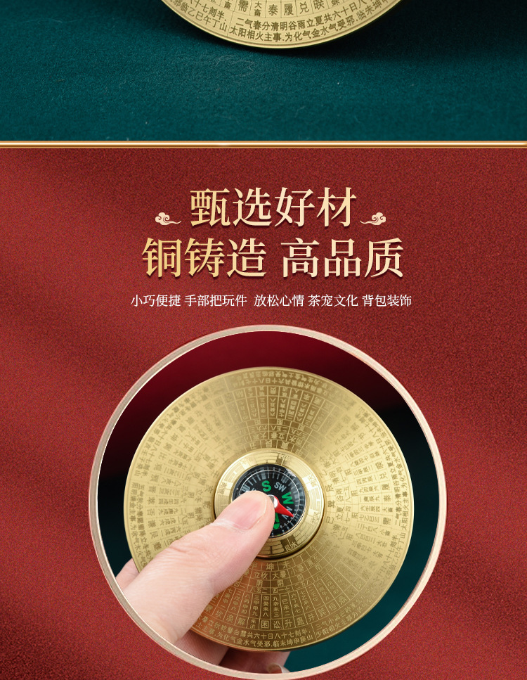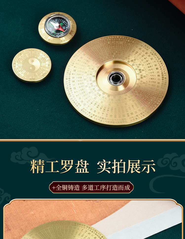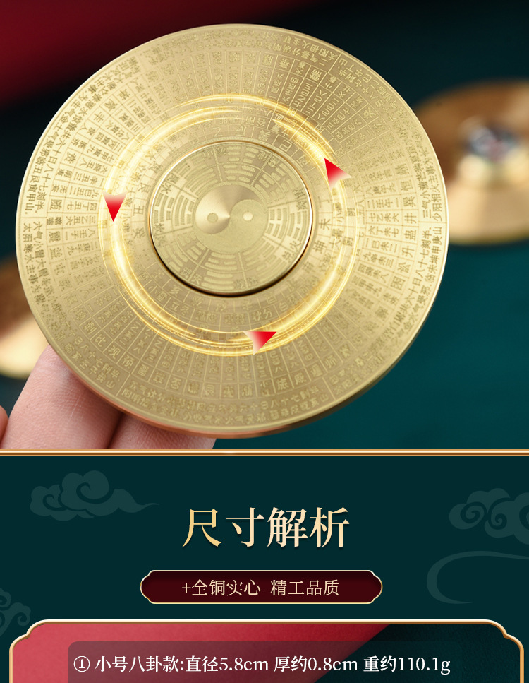 罗盘黄铜罗盘手把件实心随身迷你旋转八卦盘太极八卦指尖陀螺摆件