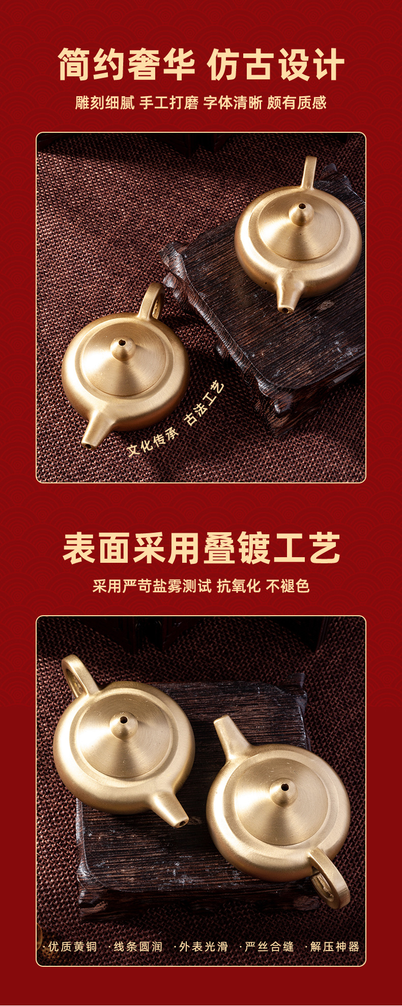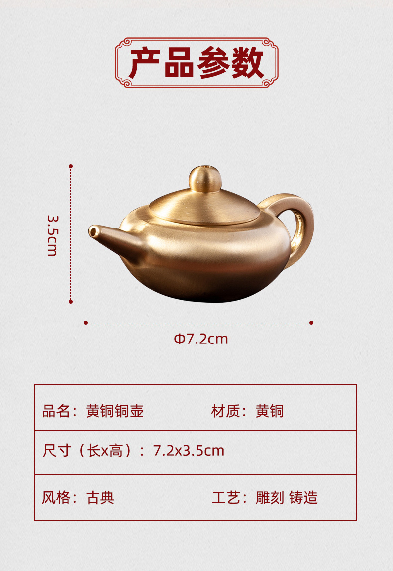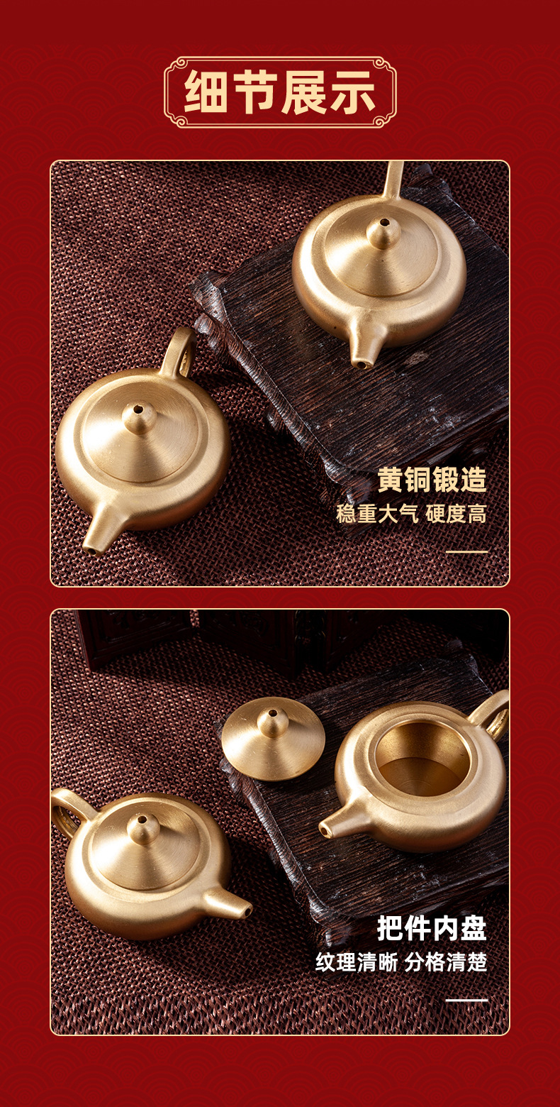 厂家直供黄铜茶壶桌面摆件装饰品把把壶黄铜工艺品水滴壶铜壶批发