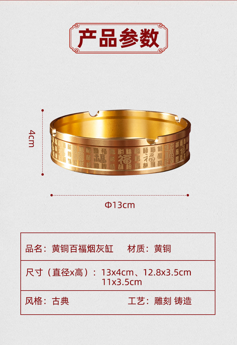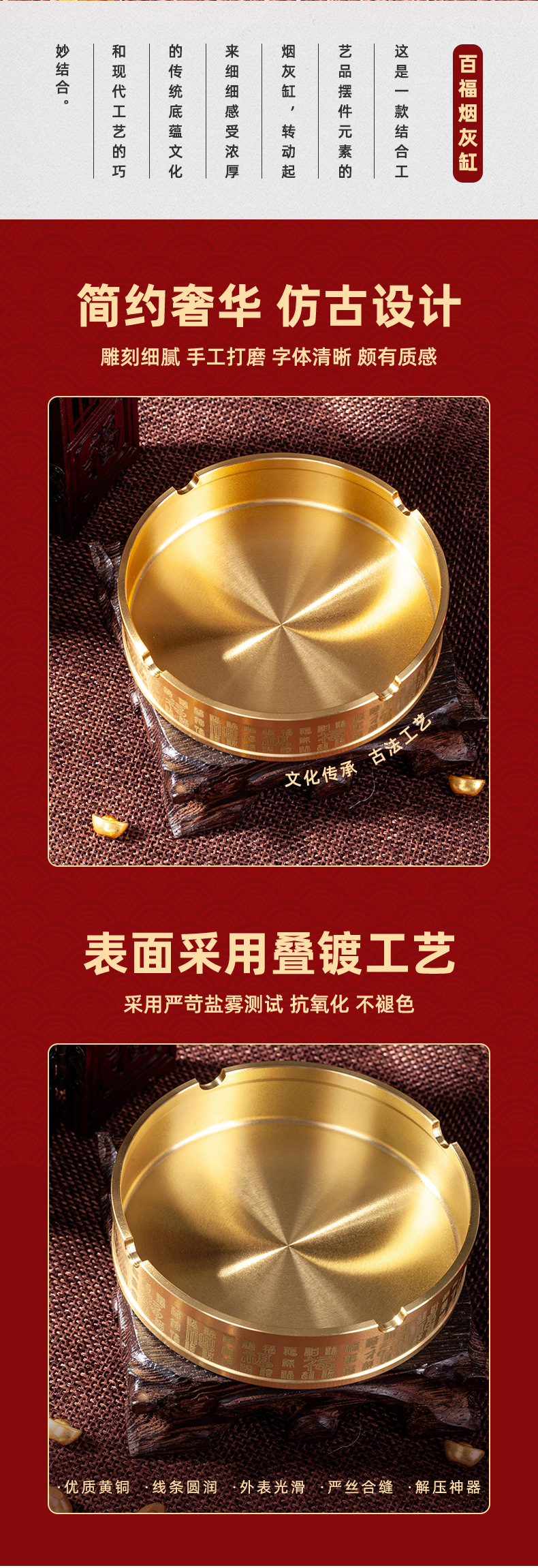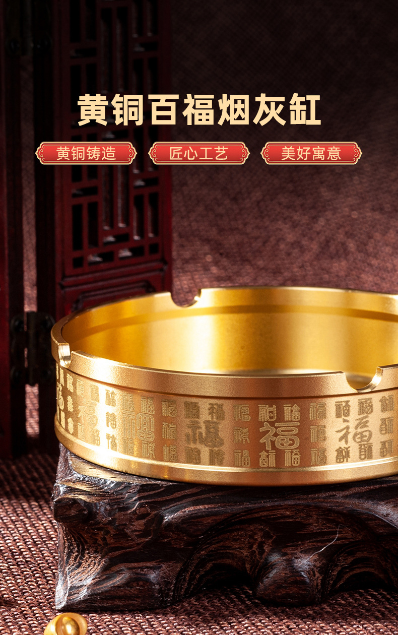 黄铜烟灰缸五虎送福百福烟缸创意摆件家用办公室车载烟缸带盖烟缸
