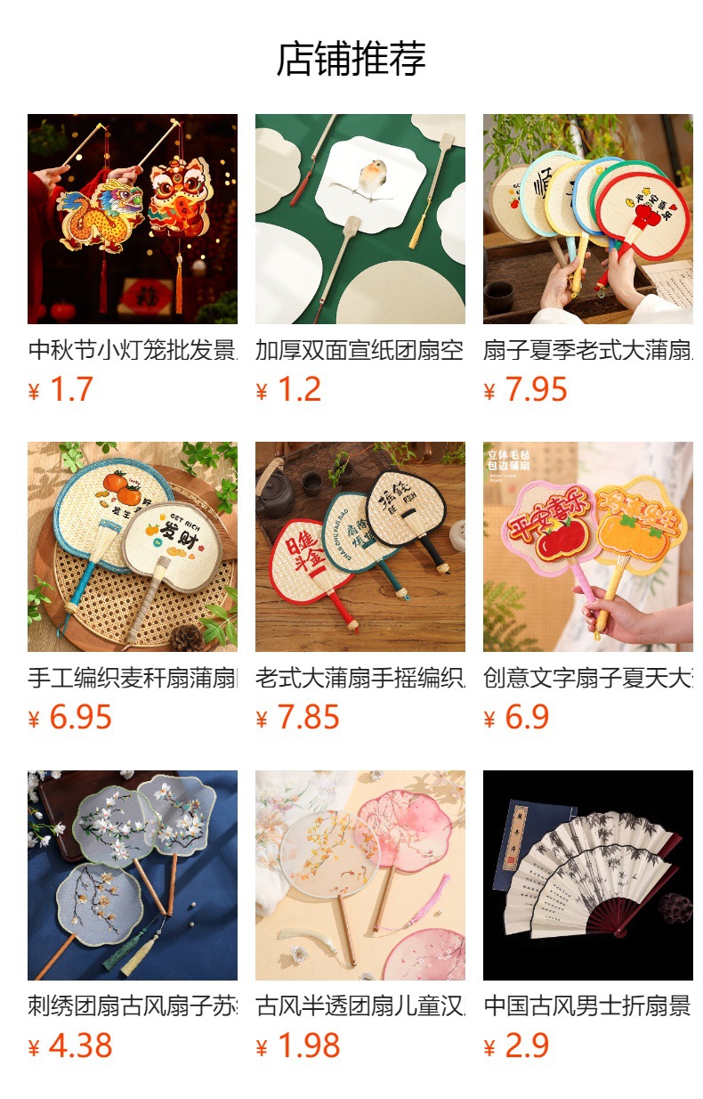 团扇古风扇子儿童夏天国风半透长柄舞蹈扇女童古装汉服旗袍小圆扇