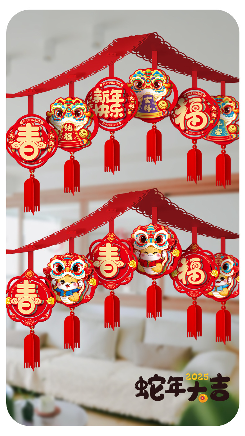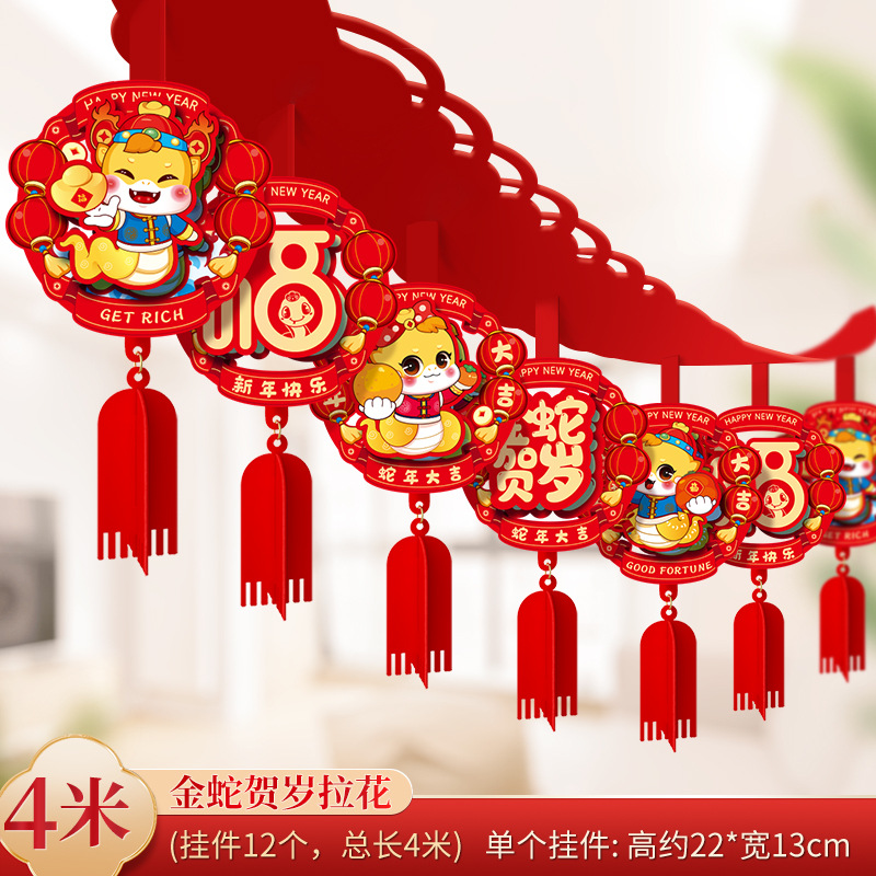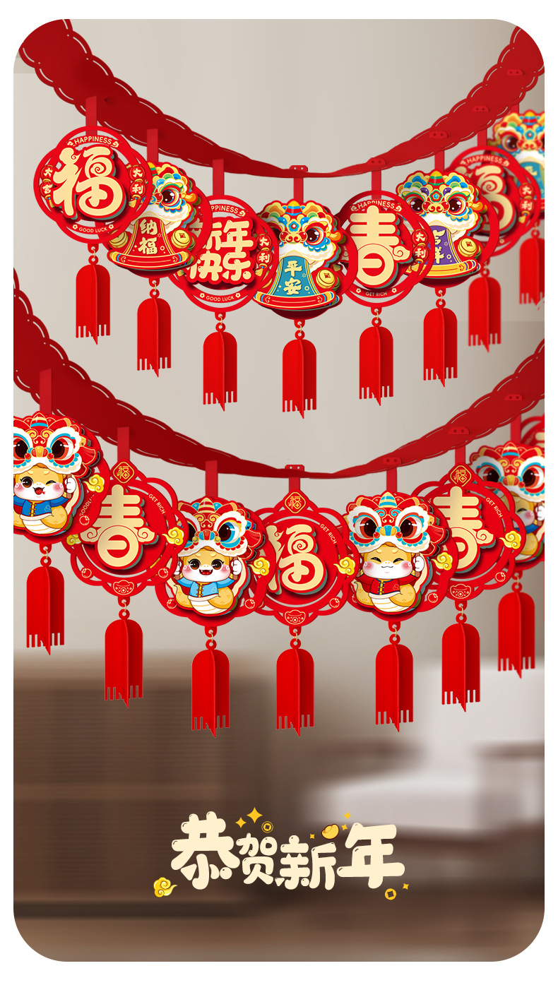 2025过新年元旦拉花教室幼儿园活动装饰氛围布置商场室内场景挂件