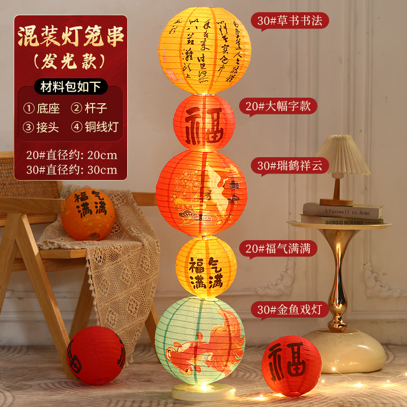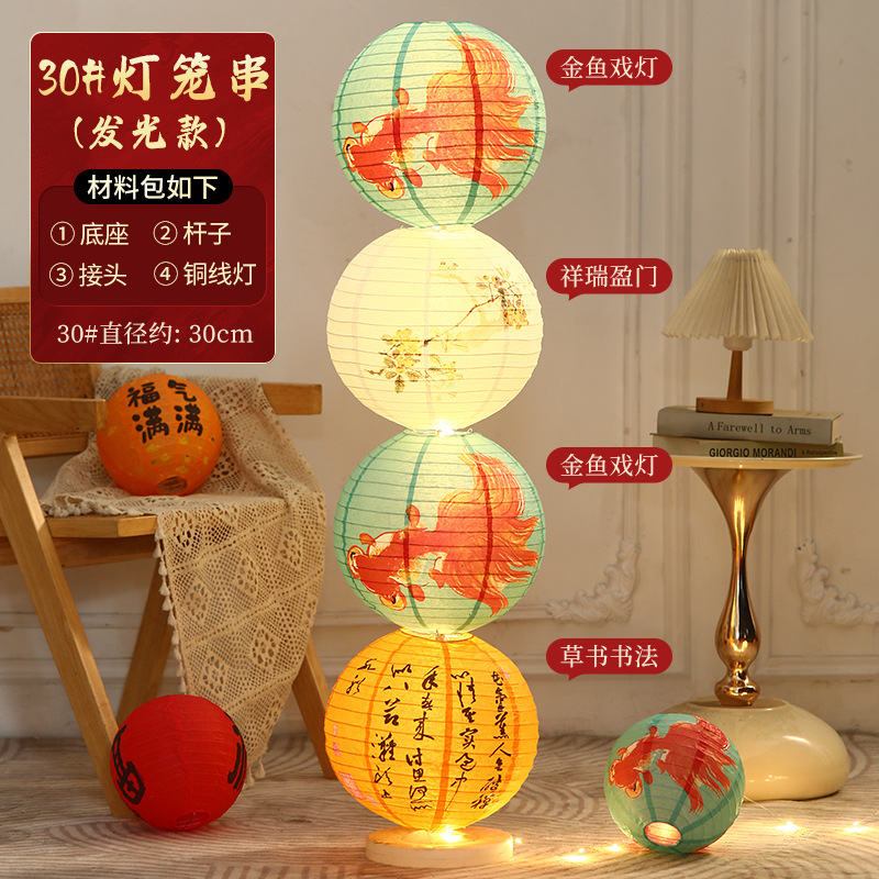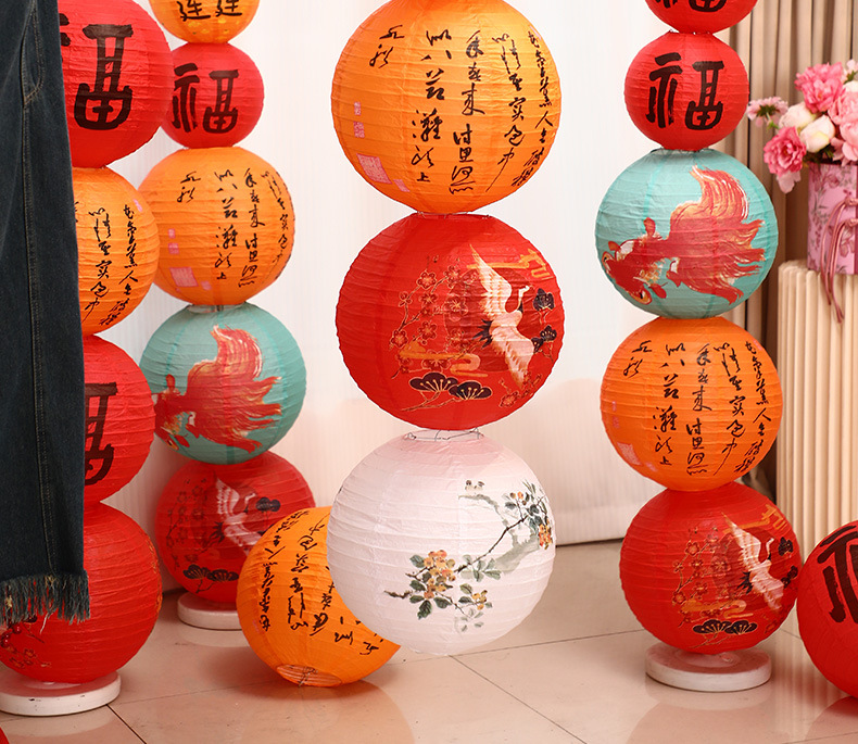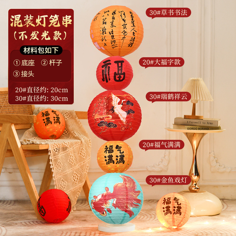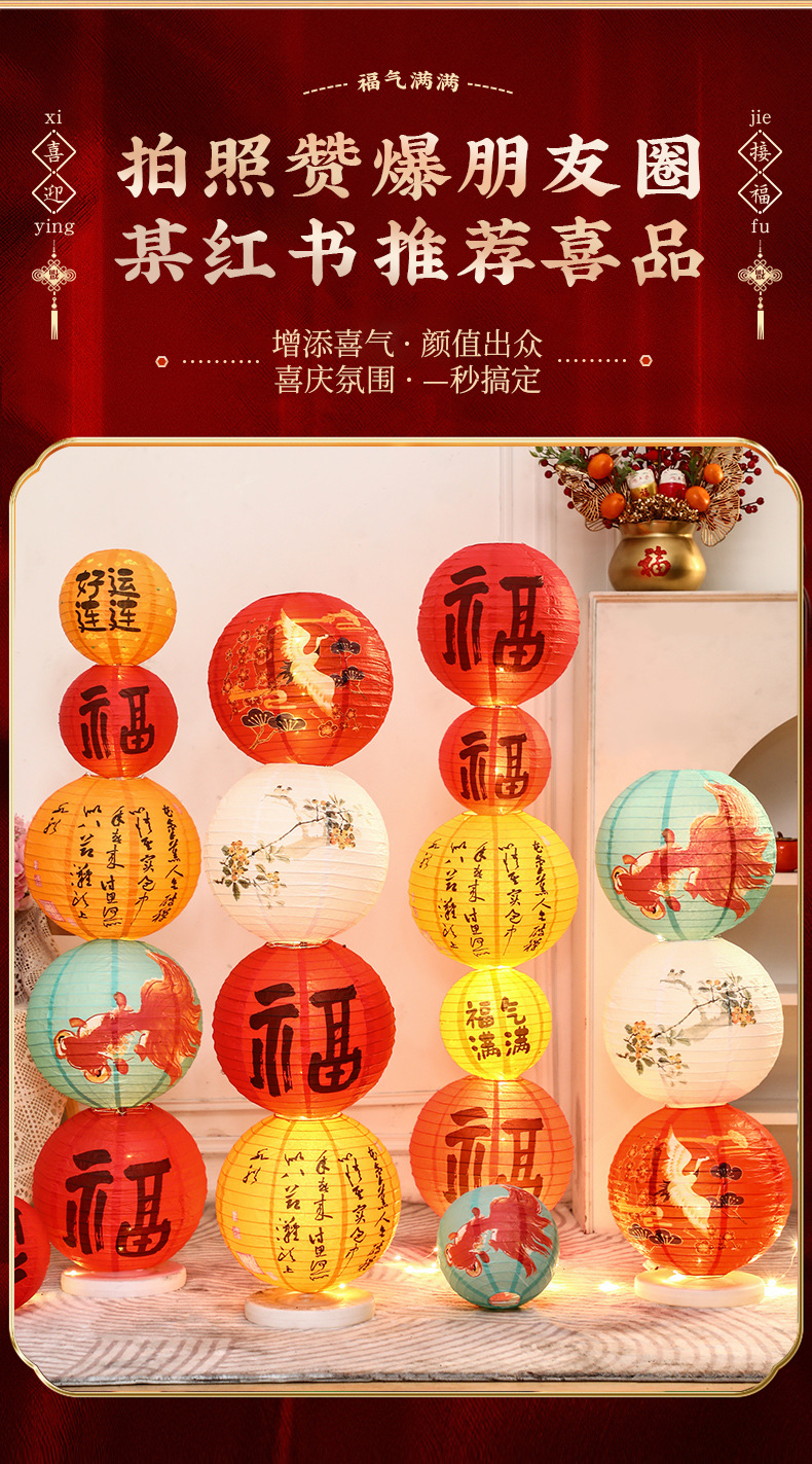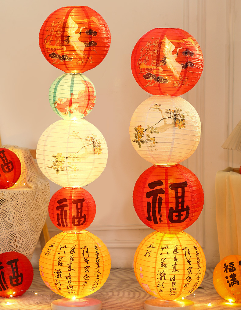 2025新年纸灯笼折叠地摆立柱摆件春节新款花灯挂饰装饰场景布置