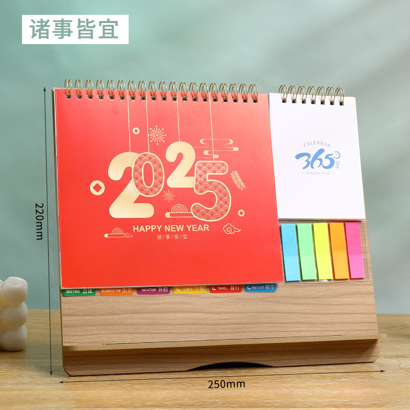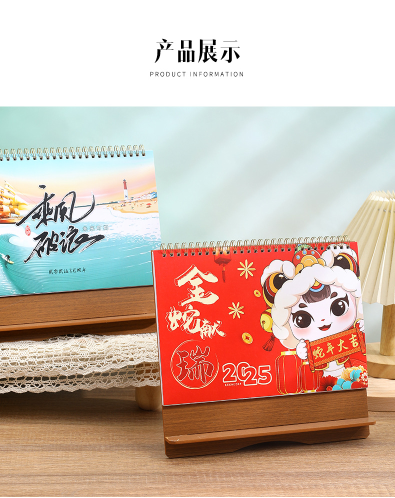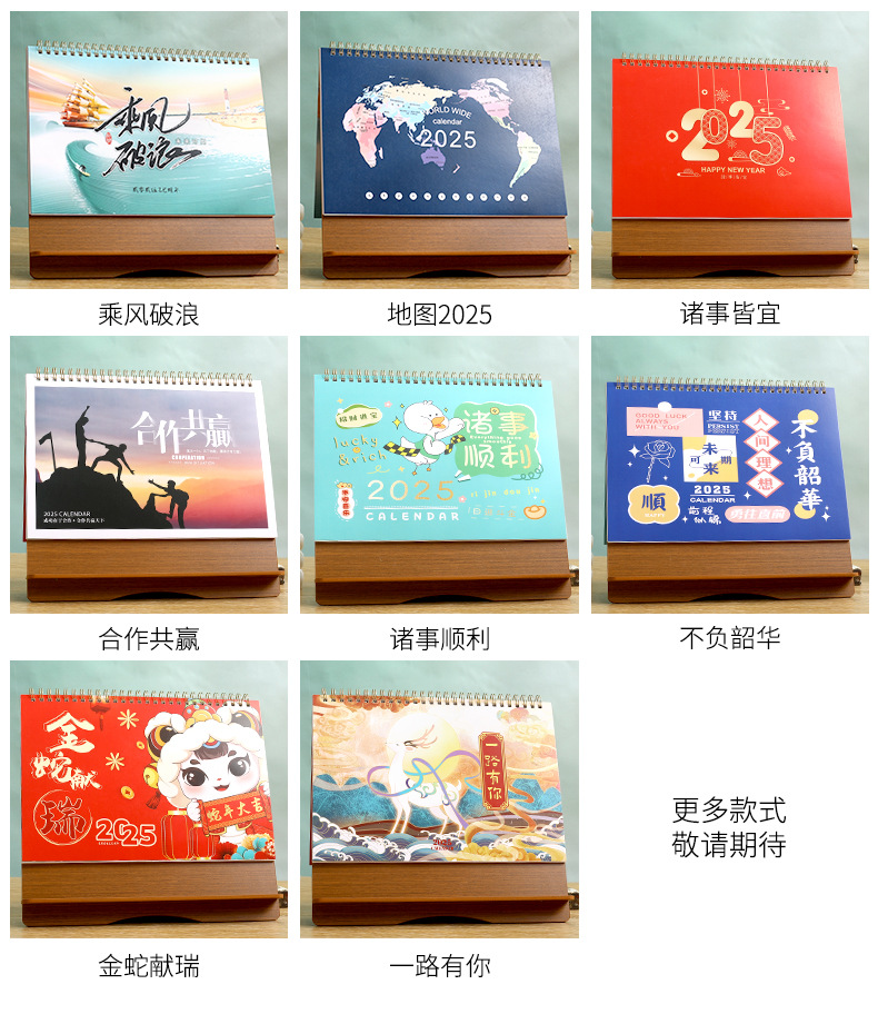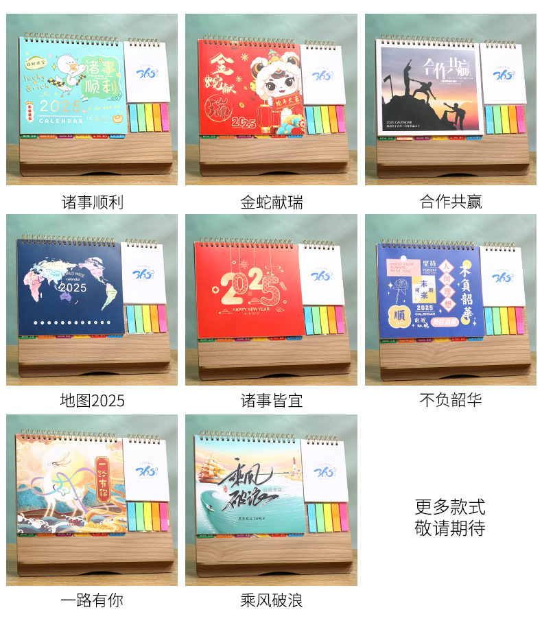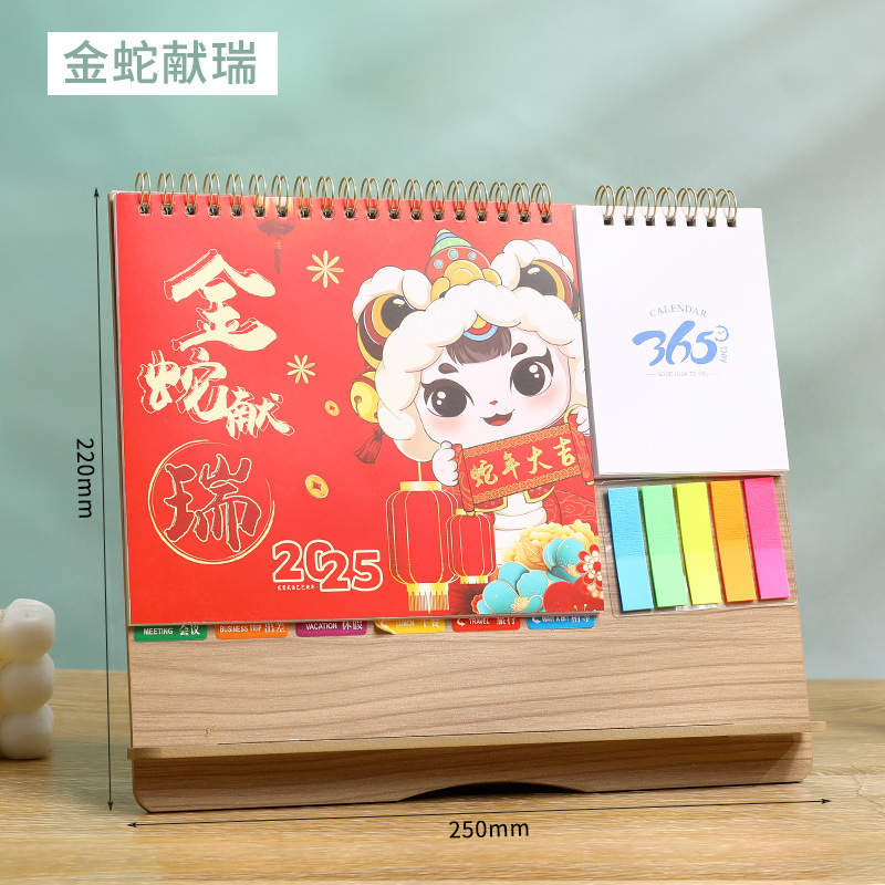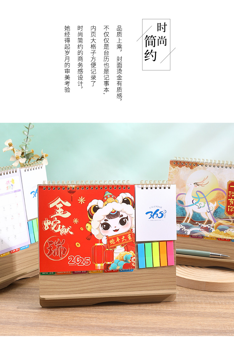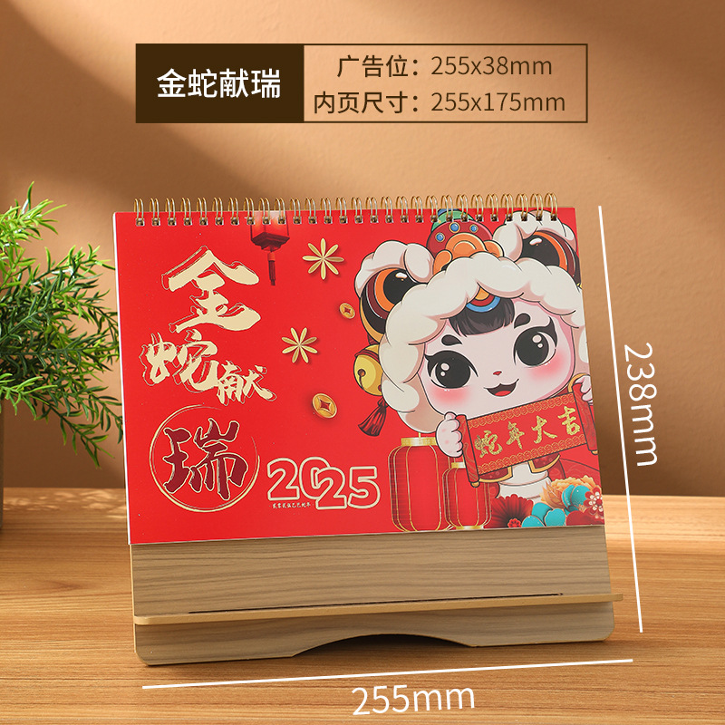 2025台历定制定做新年高端木质架蛇年日历小摆件桌面创意本小批量
