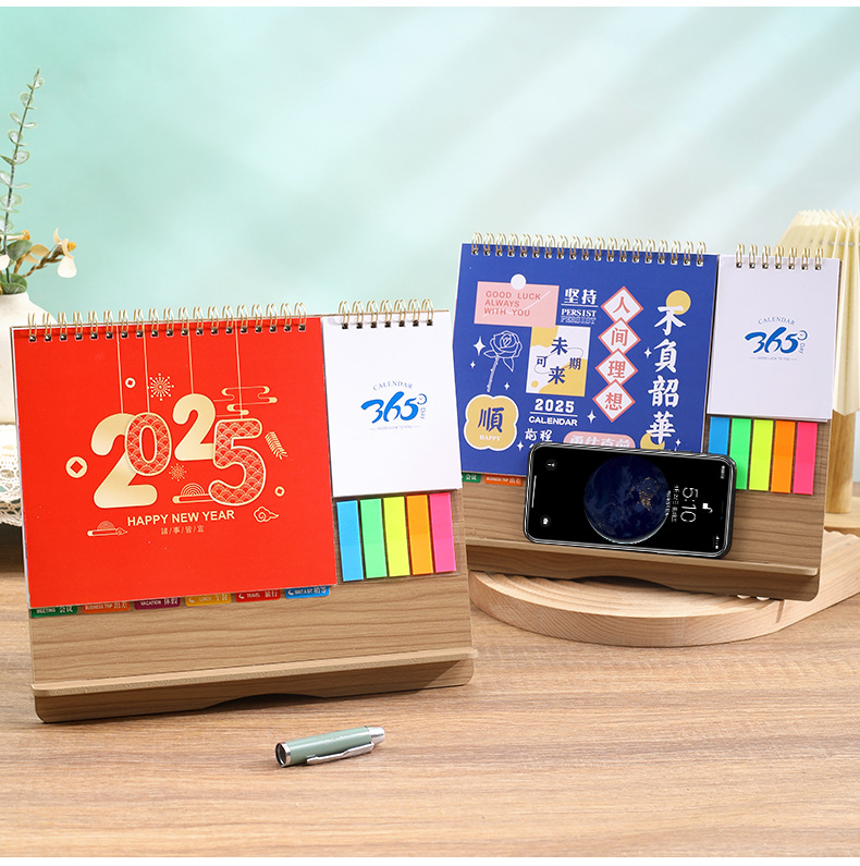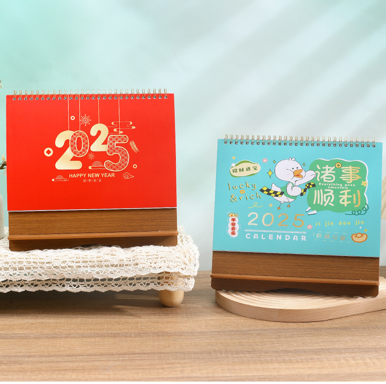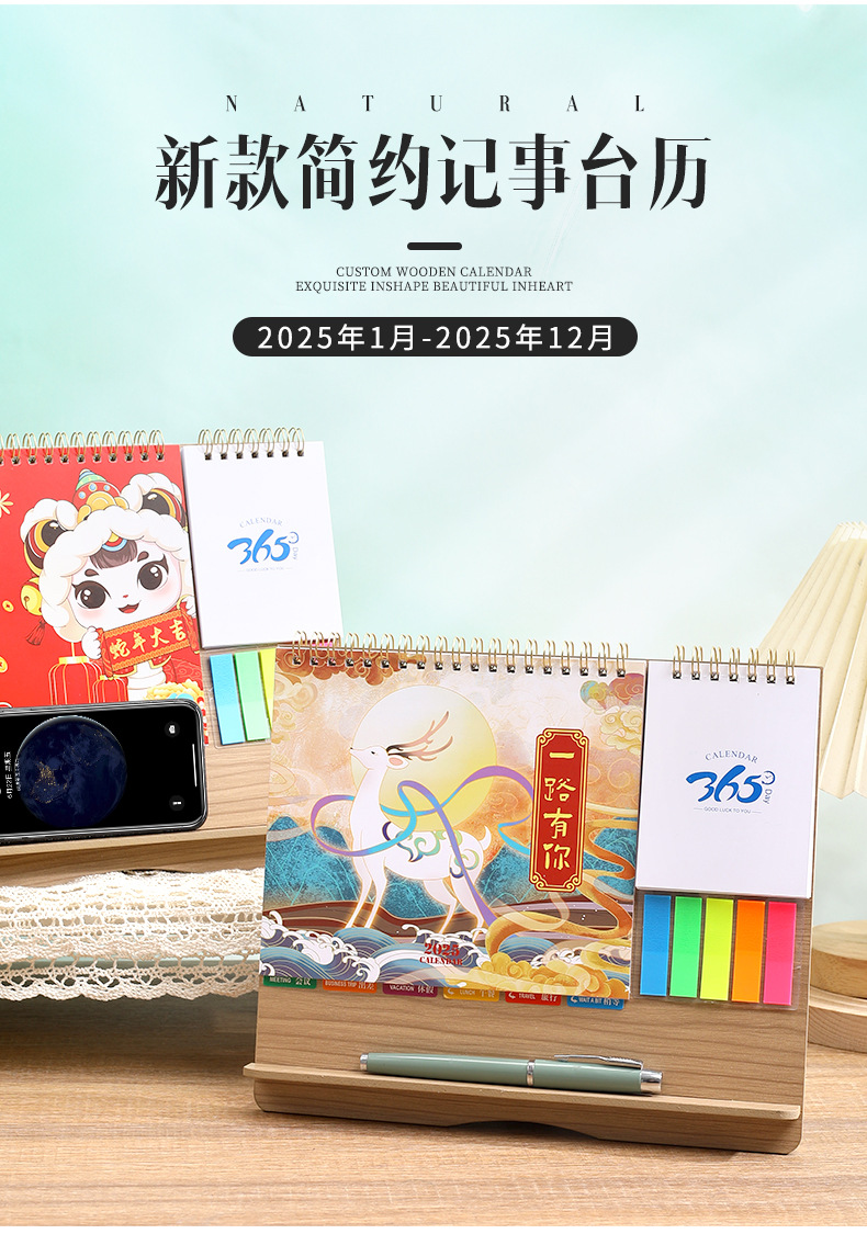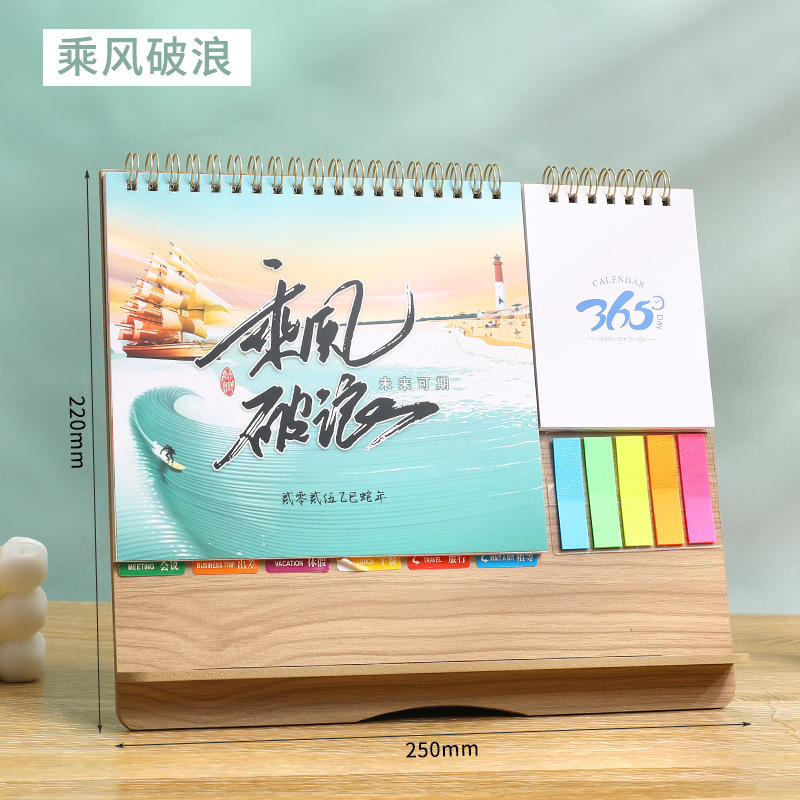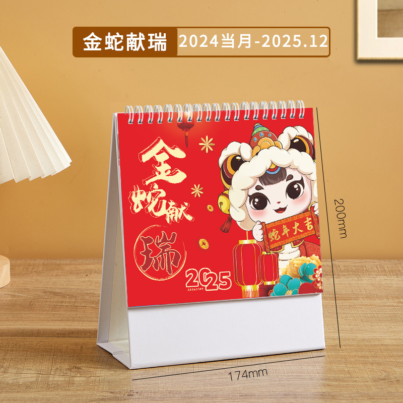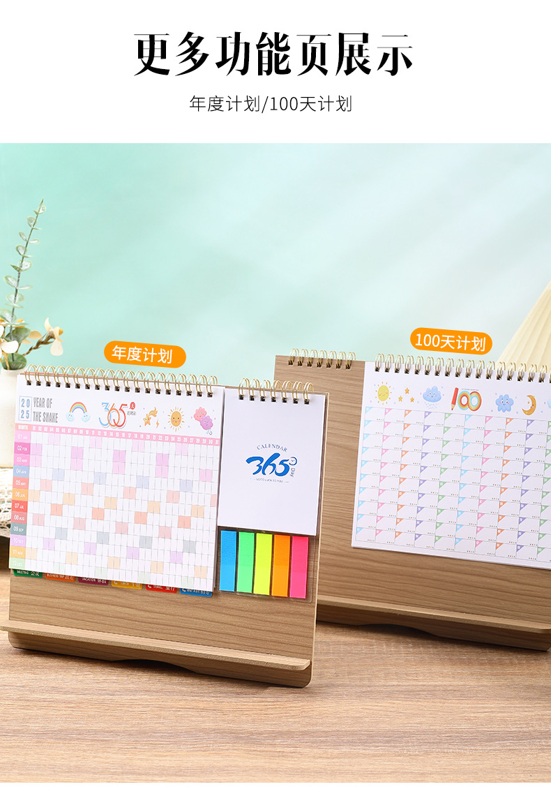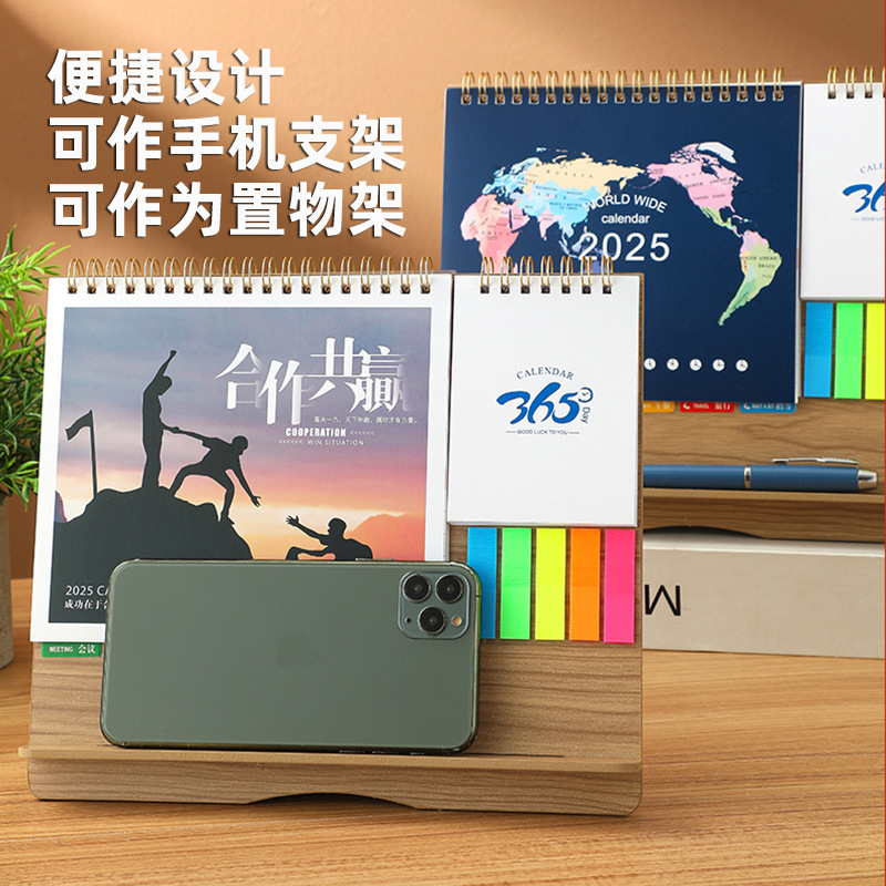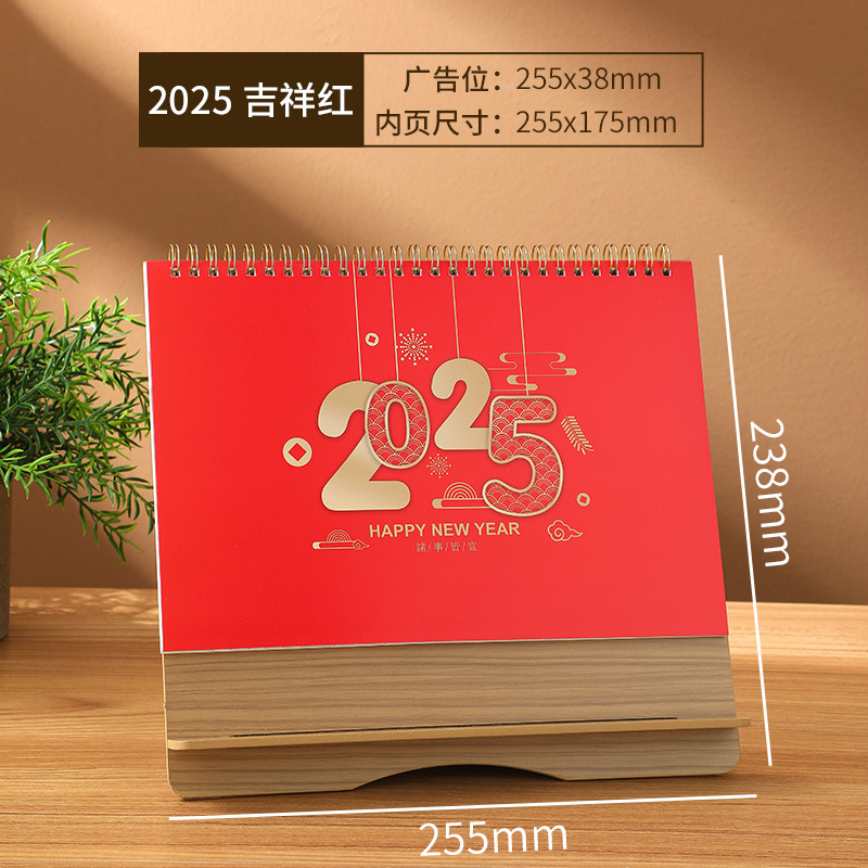 2025台历定制定做新年高端木质架蛇年日历小摆件桌面创意本小批量